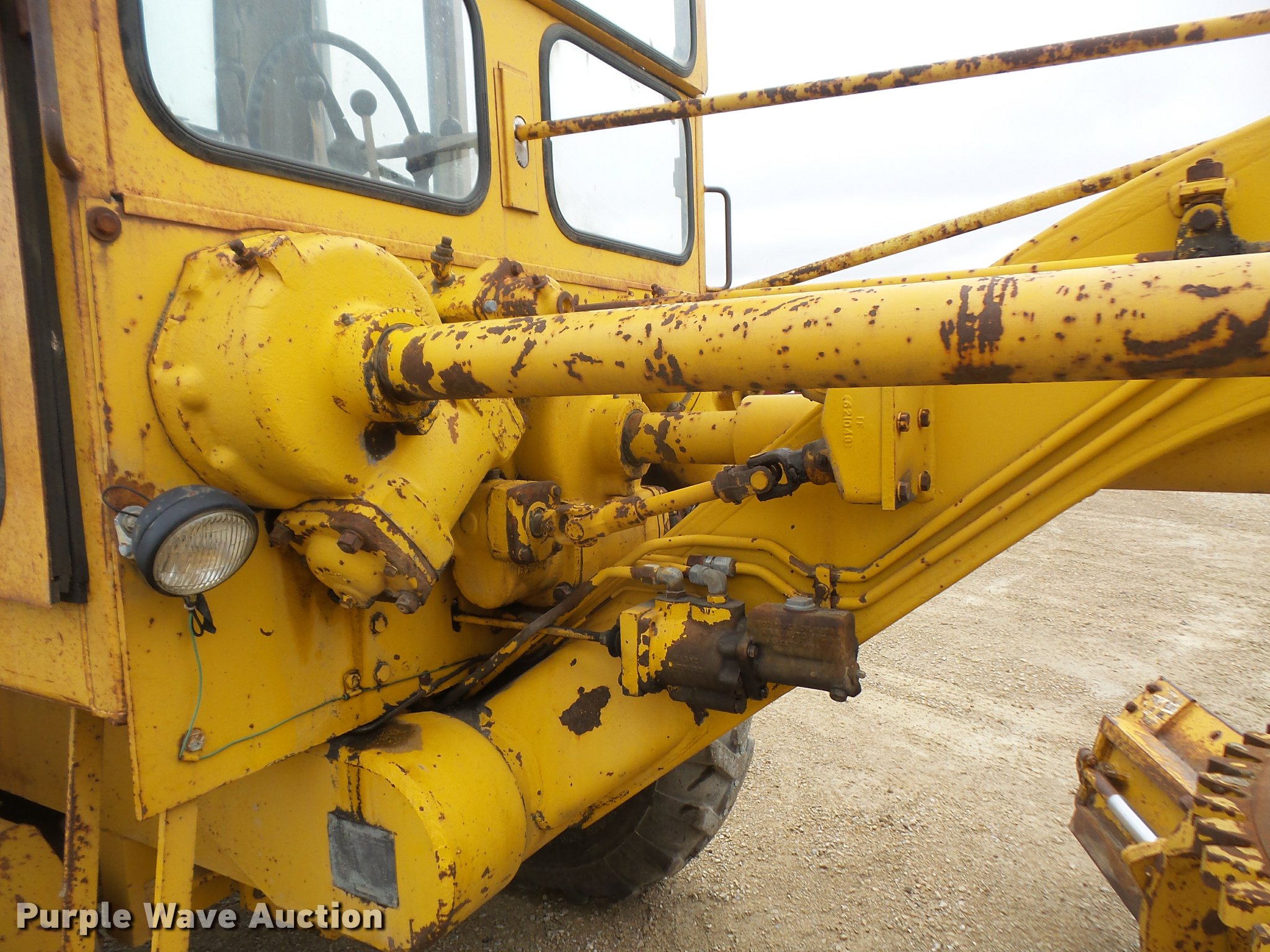 Purple Wave is selling a used Motor Grader in Kansas. This item is a 1968 Allis Chalmers M100B rigid frame motor grader with the following: 4,747 hours on meter, Allis Chalmers six cylinder diesel engine, 130 HP, Direct-drive transmission, 6F-1R gears, EROPS, Heat, Six control valves, 12'W moldboard, Side shift, Mid-mounted scarifier, (5) teeth, 14.00-24 tires, Non-operational brakes, hand brake must be utilized, Serial 2206