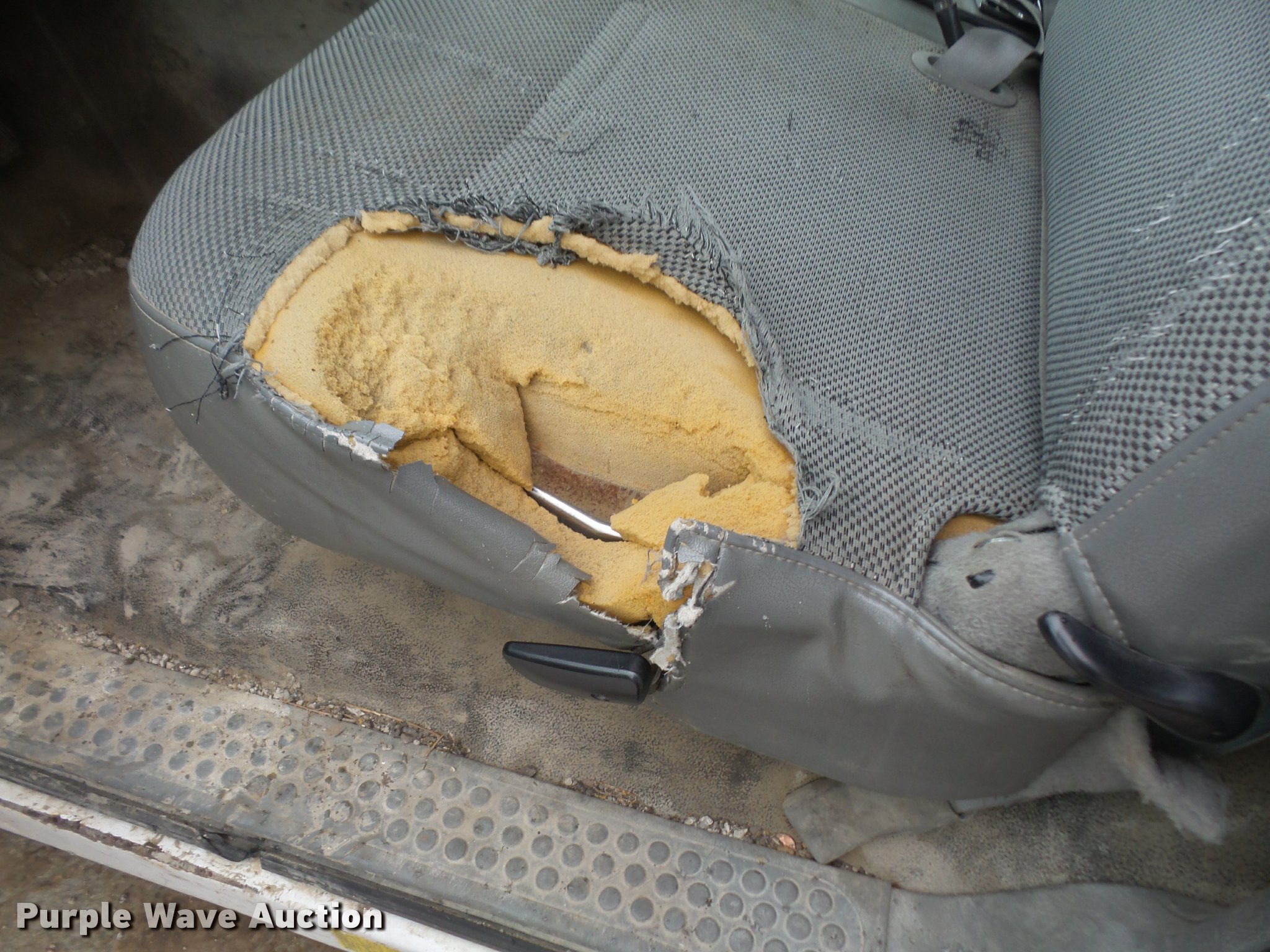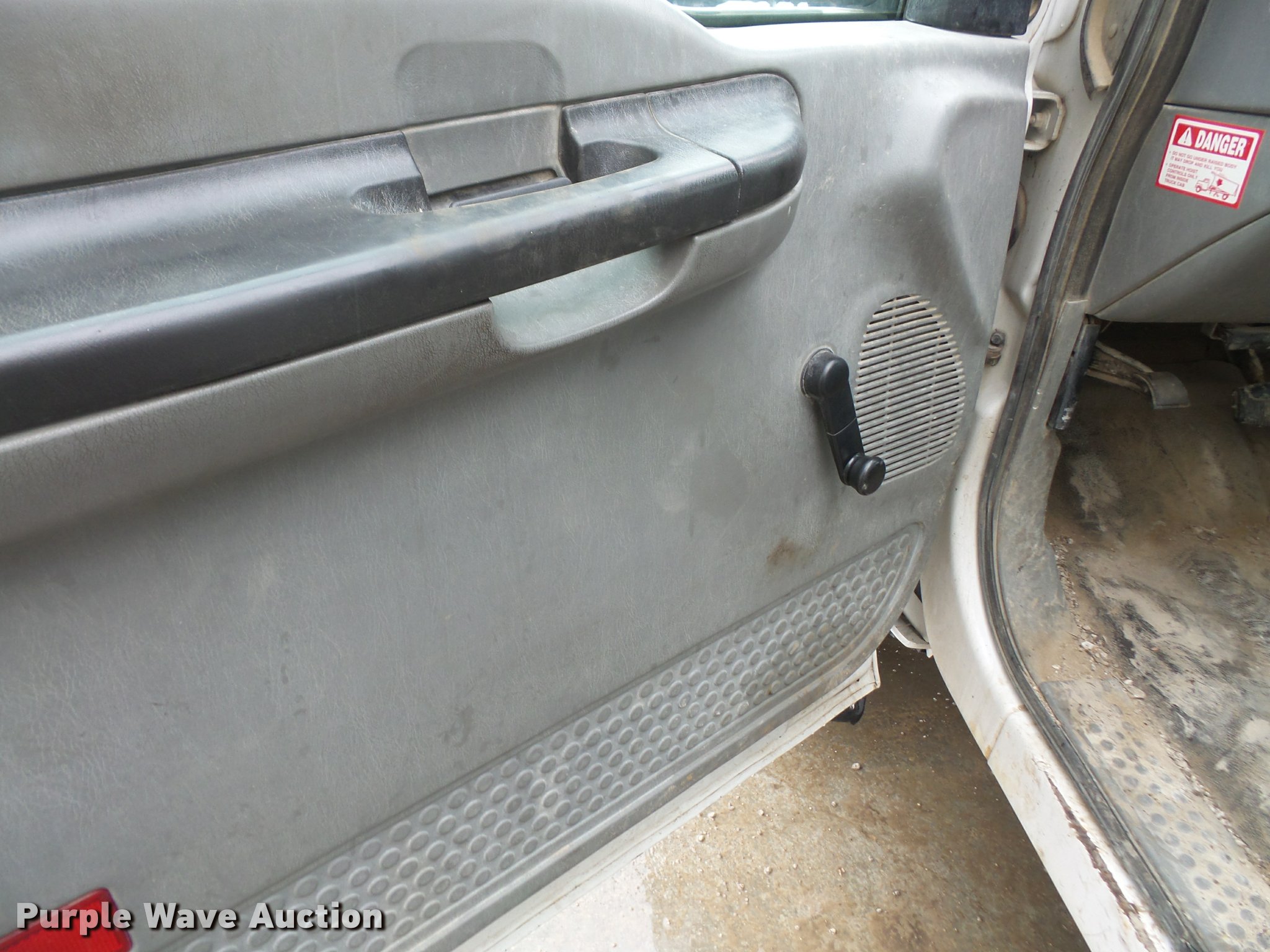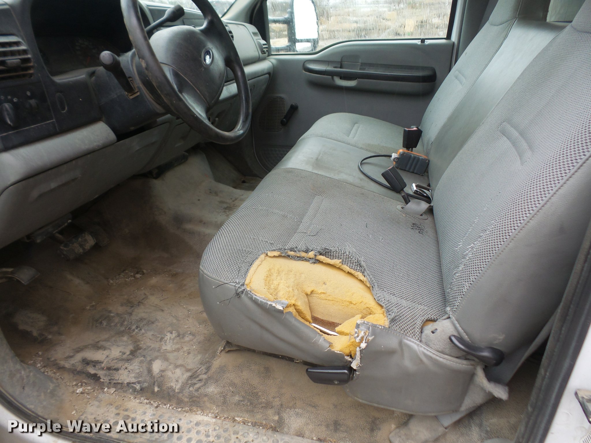 Purple Wave is selling a used Construction Dump Truck in Kansas. This item is a 2005 Ford F450 dump truck with the following: 174,347 miles on odometer, Navstar 6.0L V8 turbo diesel engine, Automatic transmission, Single axle, AC and heat, AM/FM, Steel dump bed, 11'L x 96"W, 13" side height, 23" side board height, Single ram hoist, Electric over hydraulic dump, Manual operated end gate, Roll tarp, Spring suspension, Hydraulic brakes, 225/70R19.5 tires, GVWR 16,000 lbs, Engine issues, Windshield cracked, Seat torn, Decals will be removed prior to auction