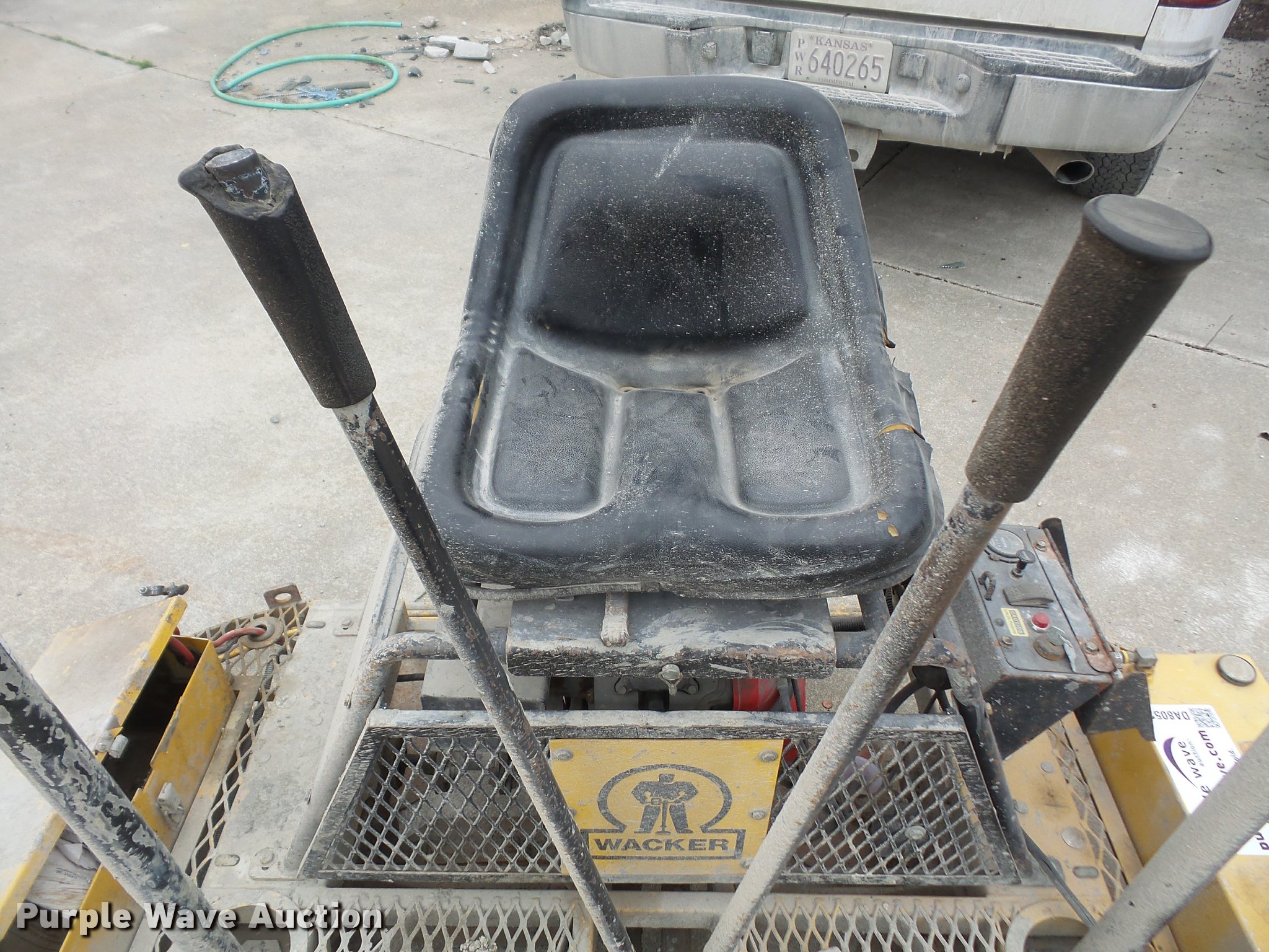 Purple Wave is selling a used Concrete Equip. or Acces. in Kansas. This item is a Wacker ride-on power trowel with the following: 610 hours on meter, Honda gas engine, 20 HP, 6' working width, Work lights, Non-operational unit, No battery