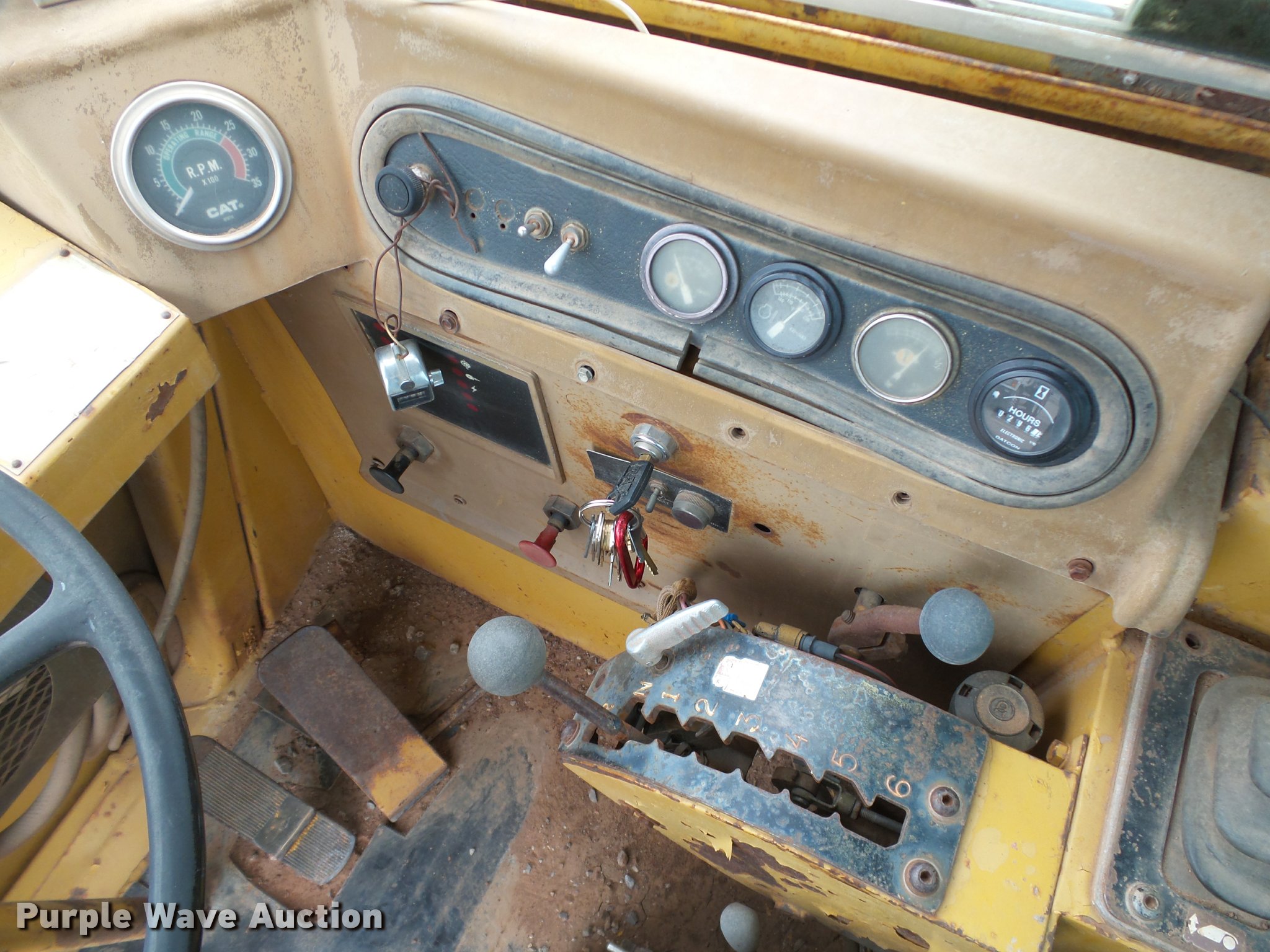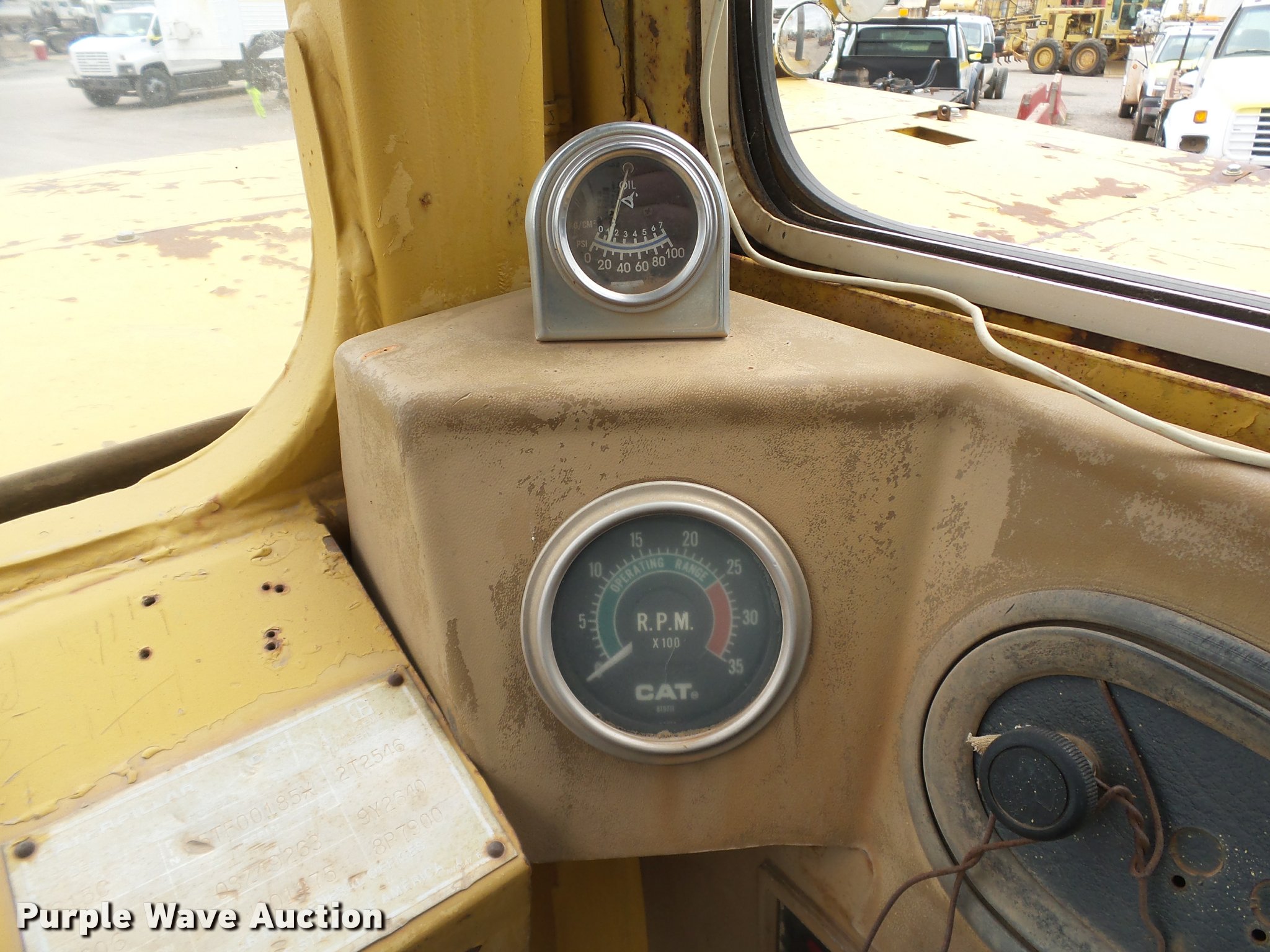 Purple Wave is selling a used Elevating Scraper in Oklahoma. This item is a 1989 Caterpillar 615C elevating scraper with the following: 295 hours on meter, Caterpillar 3306 10.5L six cylinder turbo diesel engine, 265 HP, Serial 08Z49263, Powershift transmission, 6F-1R gears, Differential lock, Enclosed cab, 16 cu.yd. bowl capacity, Hydraulic lift, (3) lever controls, Rear push block, Rear pin hitch, Air brakes, 26.5R25 tires, Serial 5TF00185, Unit# 6-112
