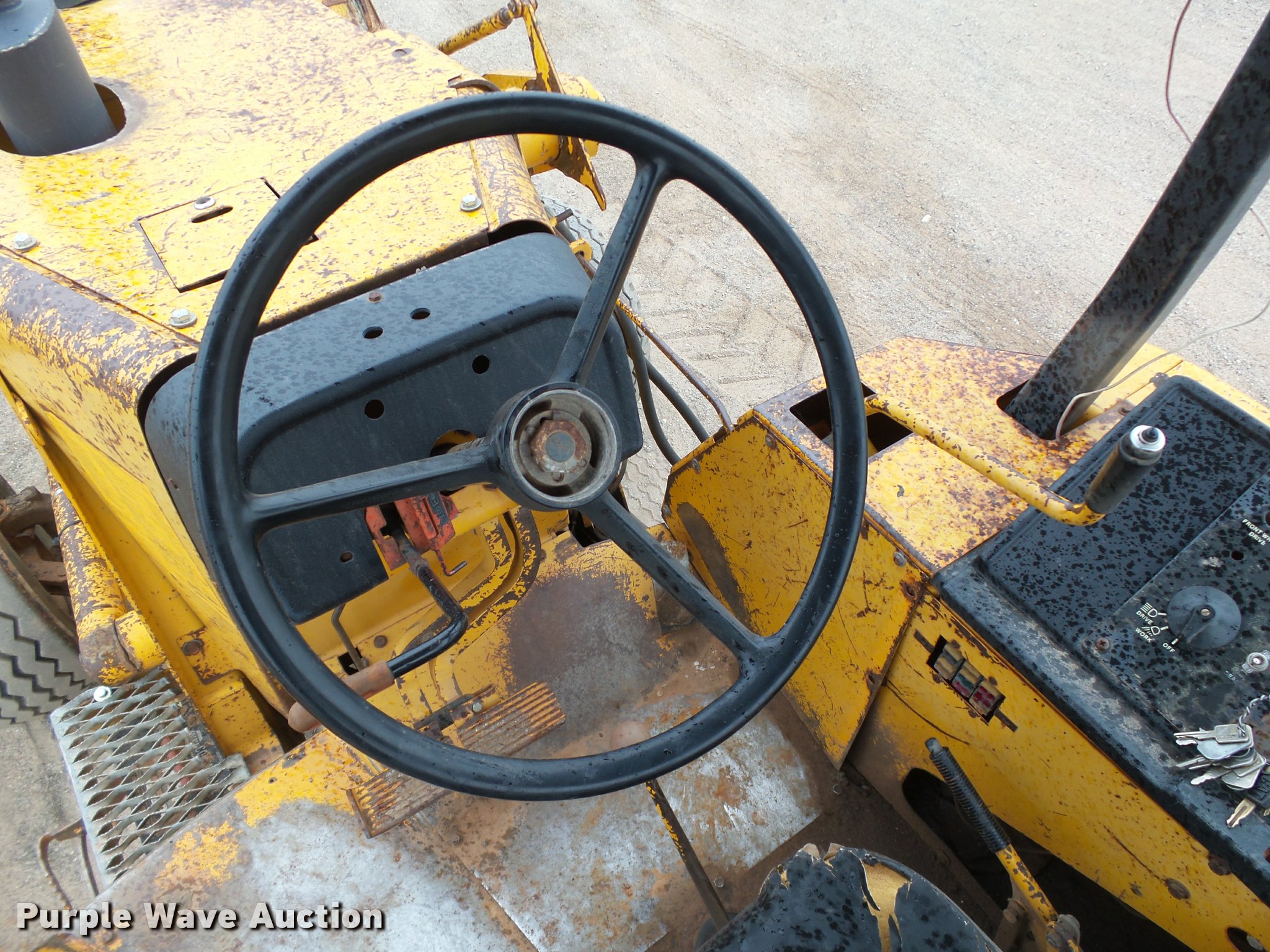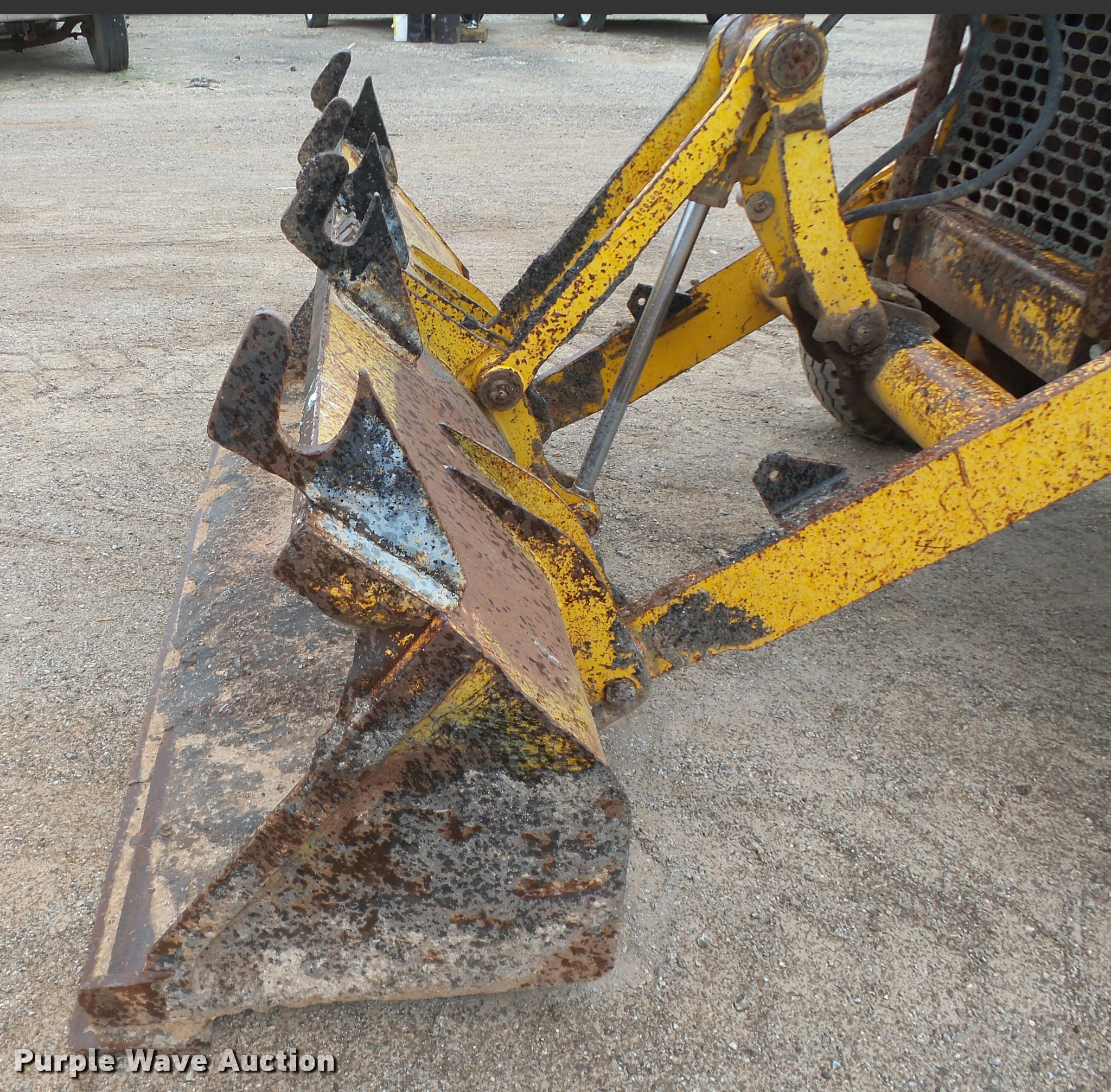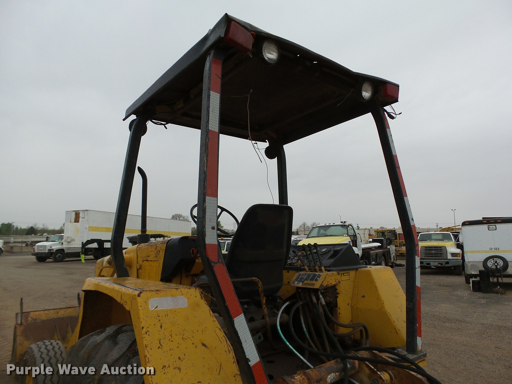Purple Wave is selling a used Industrial Loader Tractor in Oklahoma. This item is a 1986 John Deere 210C landscape tractor with the following: 3,762 hours on meter, John Deere 4239DT002 3.9L four cylinder diesel engine, Serial T04239D138692, Shuttle shift transmission, 4F-4R gears, EROPS, Four stick blade controls, Front and rear work lights, 79"W loader bucket, Bolt-on cutting edge, Auxiliary hydraulics, Gannon box blade, 77"W, Front and rear cutting edges, 11L-15 front tires, 16.9-24 rear tires, Serial T0210C0726545, Unit# 6-94