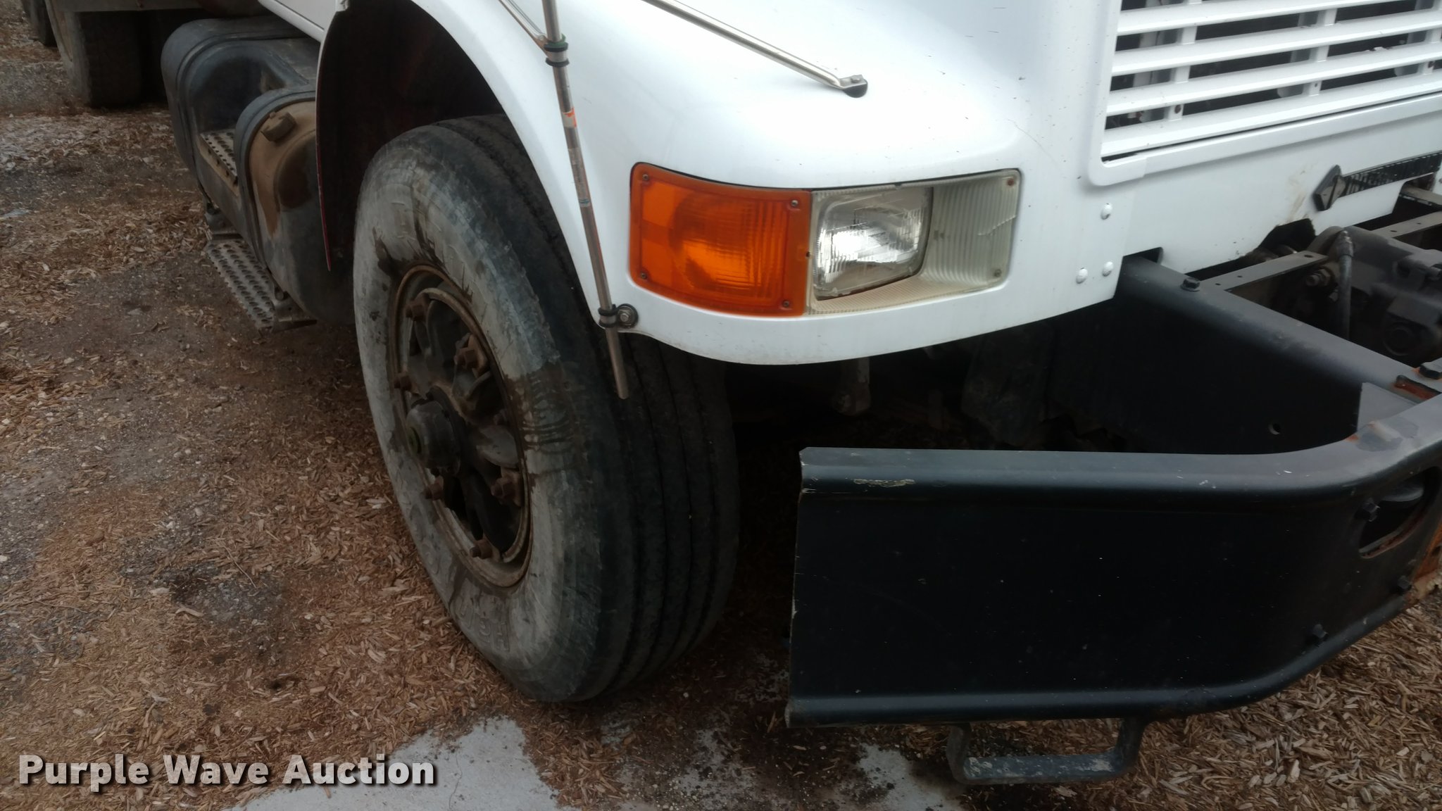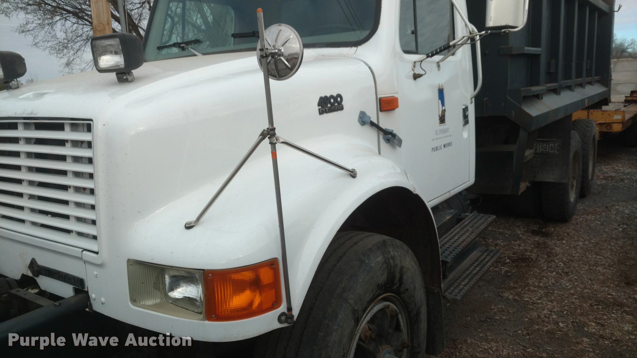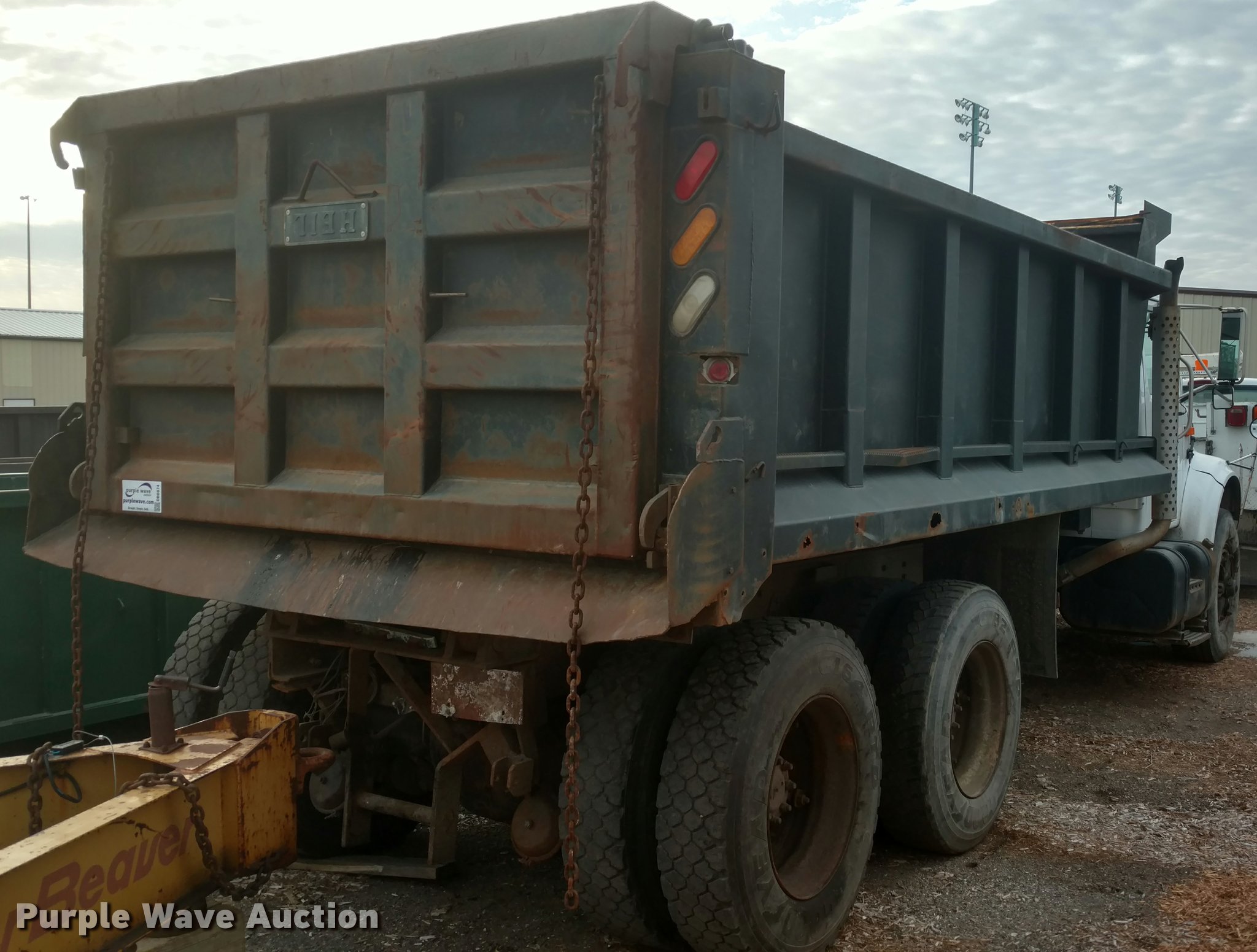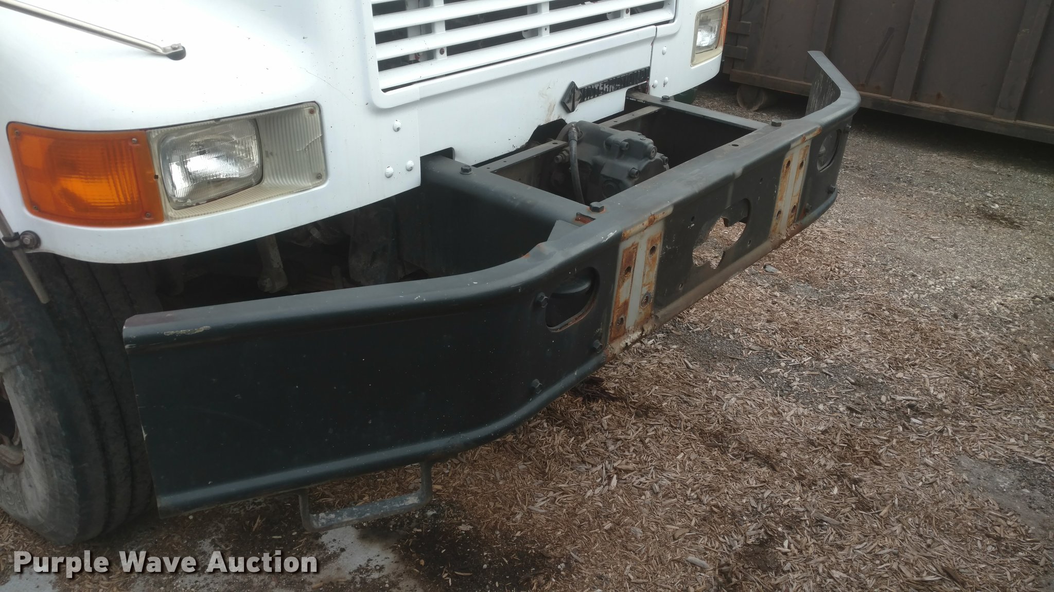 Purple Wave is selling a used Construction Dump Truck in Kansas. This item is a 1997 International 4900 dump truck with the following: 65,185 miles on odometer, Actual mileage unknown, 13,681 hours on meter, Interntaional DT466 7.6L L6 diesel engine, Automatic transmission, Tandem axle, Heat, AM/FM, Spring suspension seat, Front mounted PTO, 15'L steel dump bed, Single ram hoist, Air operated end gate, Spring suspension, Air brakes, 385/80R22.5 front tires, 11R22.5 rear tires, Frame rusted through between the tandem axles