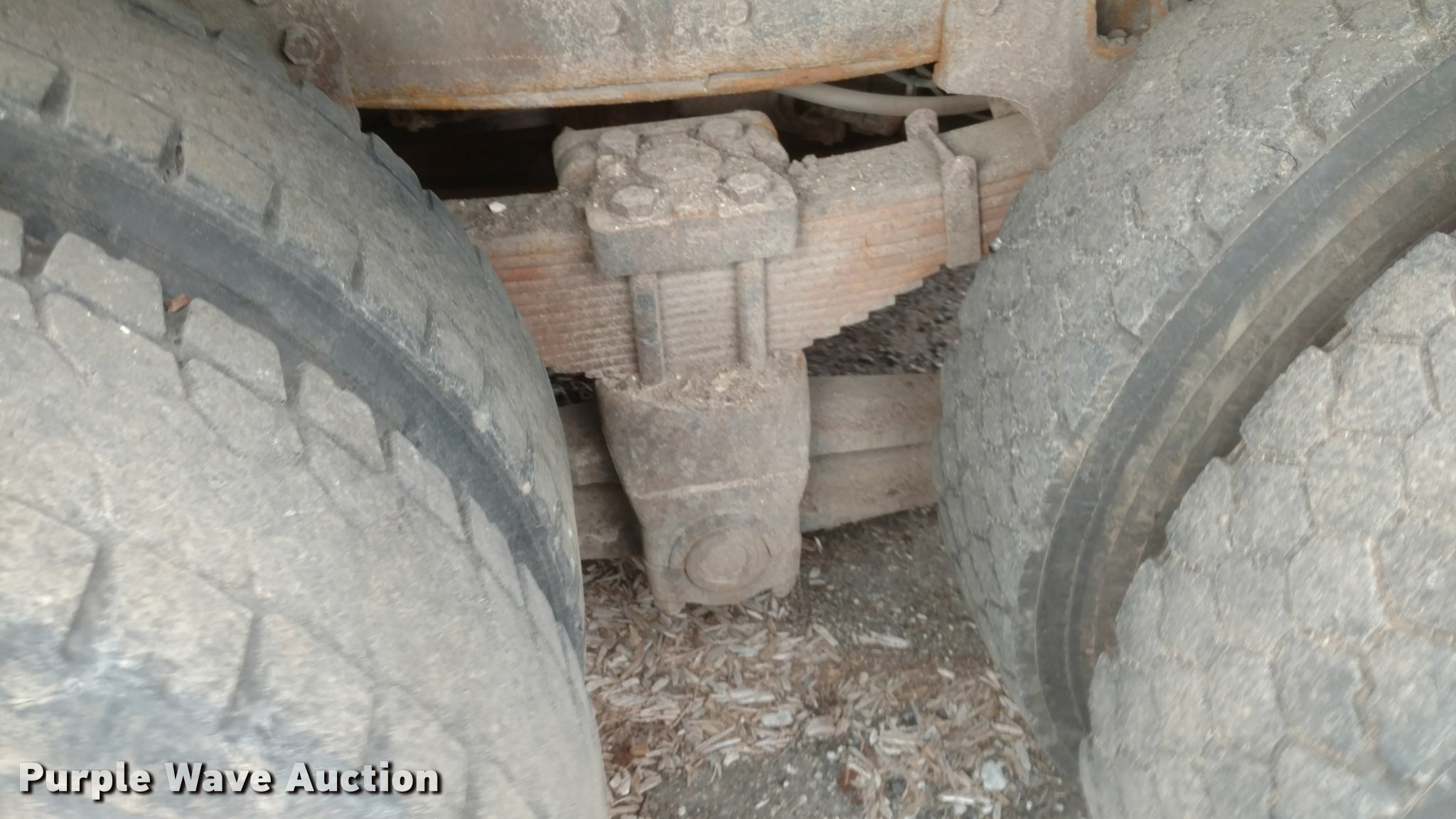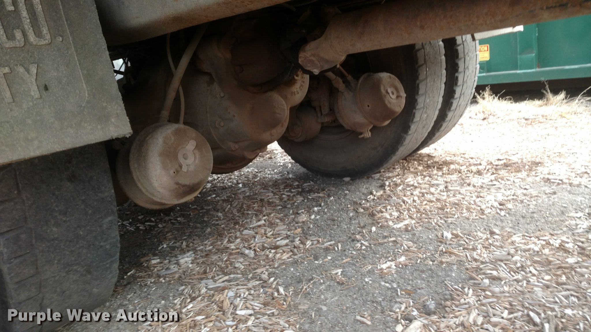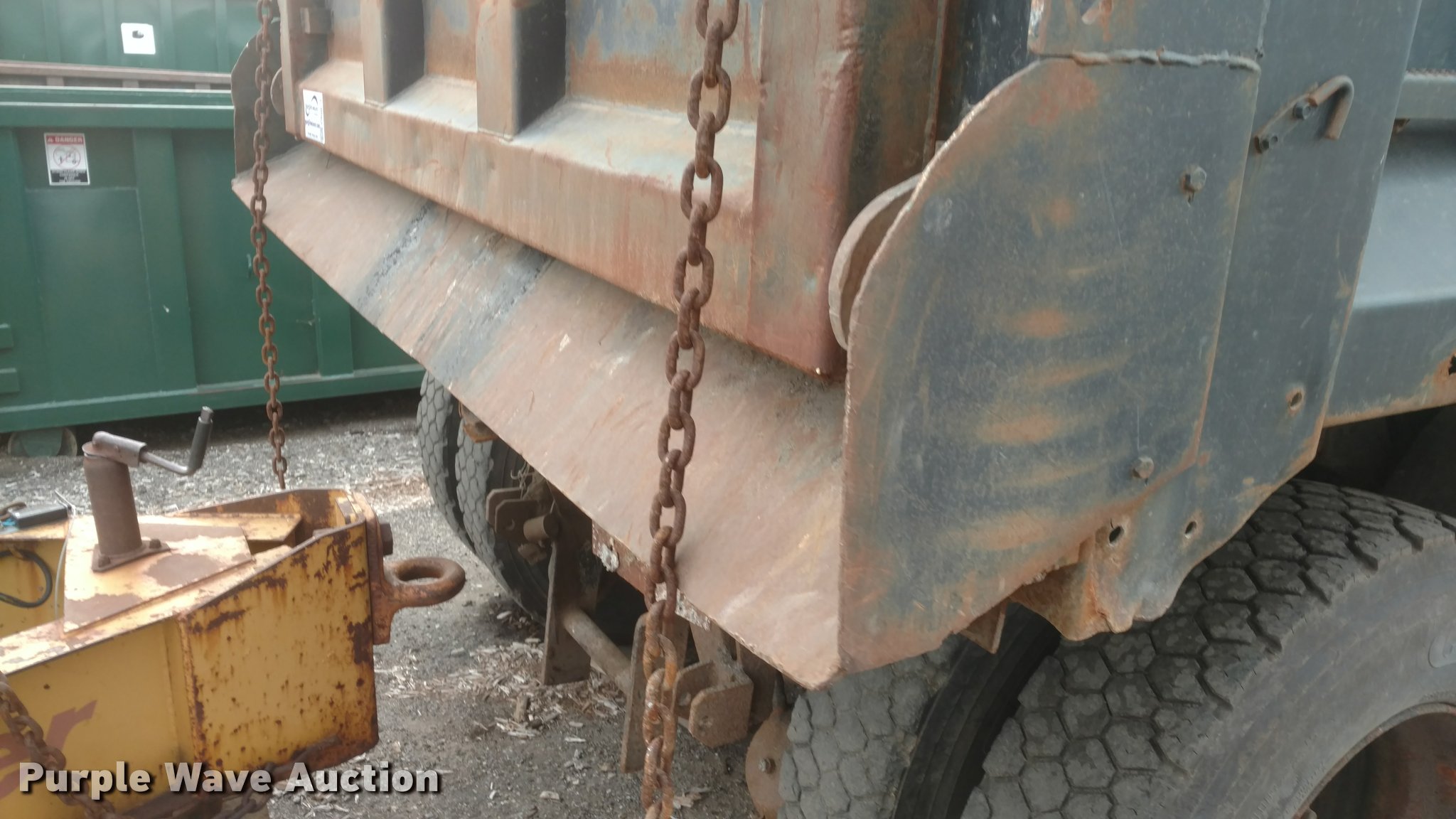 Purple Wave is selling a used Construction Dump Truck in Kansas. This item is a 1997 International 4900 dump truck with the following: 65,185 miles on odometer, Actual mileage unknown, 13,681 hours on meter, Interntaional DT466 7.6L L6 diesel engine, Automatic transmission, Tandem axle, Heat, AM/FM, Spring suspension seat, Front mounted PTO, 15'L steel dump bed, Single ram hoist, Air operated end gate, Spring suspension, Air brakes, 385/80R22.5 front tires, 11R22.5 rear tires, Frame rusted through between the tandem axles