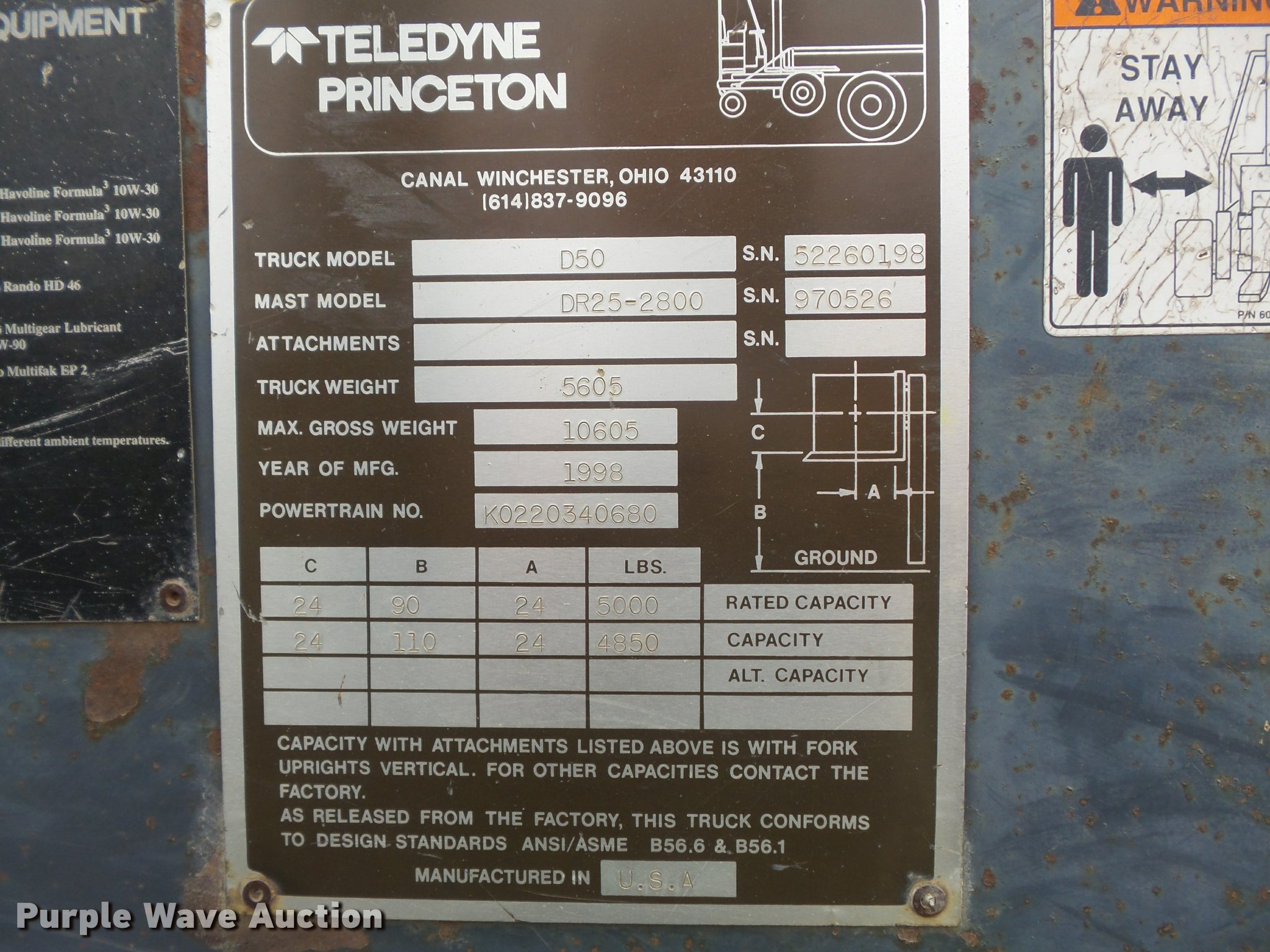 1998 Teledyne Princeton D50 piggyback forklift has sold in Saint Charles, Missouri for $6710. Item K7684 sold on April 27th, 2017.