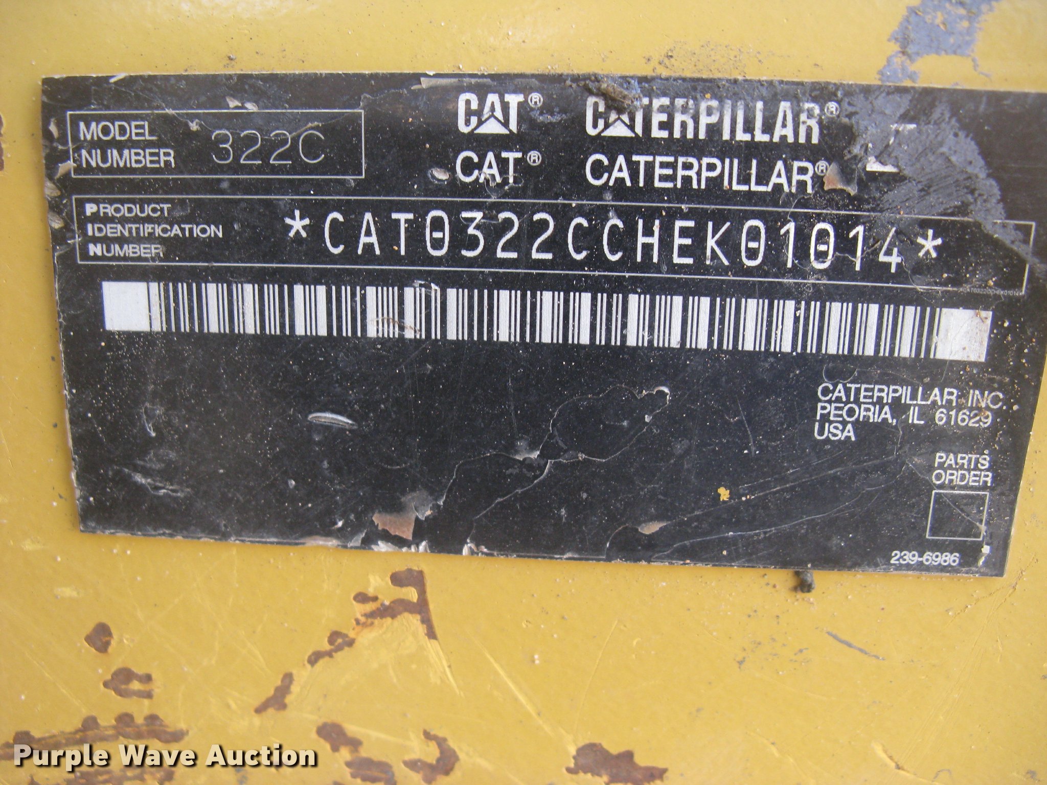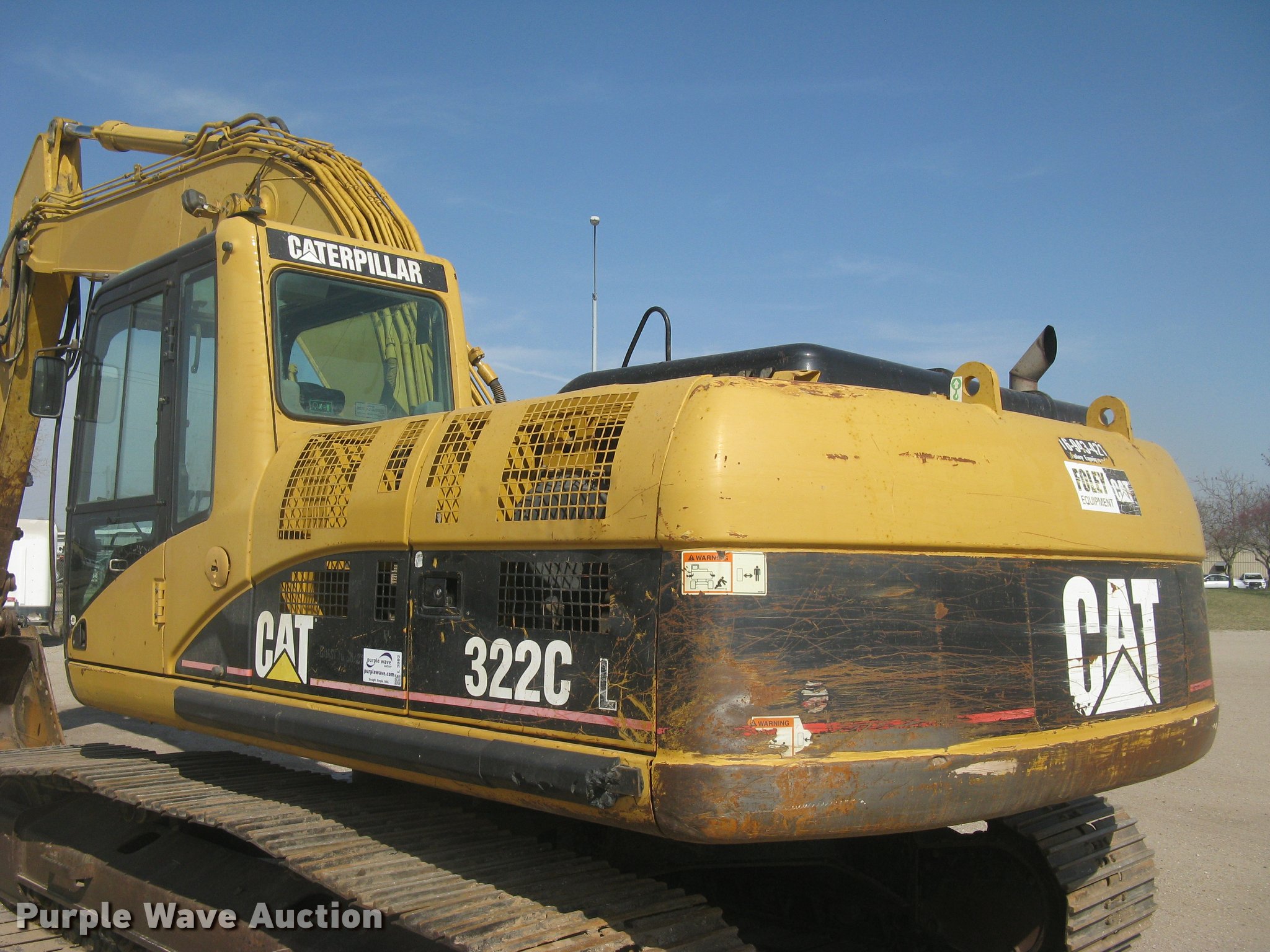 Purple Wave is selling a used Hydraulic Excavator in Kansas. This item is a 2005 Caterpillar 322C L excavator with the following: 9,063 hours on meter, Caterpillar 3126 six cylinder turbo diesel engine, Hydrostatic transmission, EROPS, Suspension seat, Front work lights, Standard boom, 9.5' stick length, Caterpillar 41"W bucket, Weld-on cutting edge, (5) weld-on teeth, Caterpillar hydraulic quick coupler, Plumbed for auxiliary hydraulics, 31.5"W steel triple grouser track pads, Weld repair to stick, Serial CAT0322CCHEK01014, Unit# 20.129L