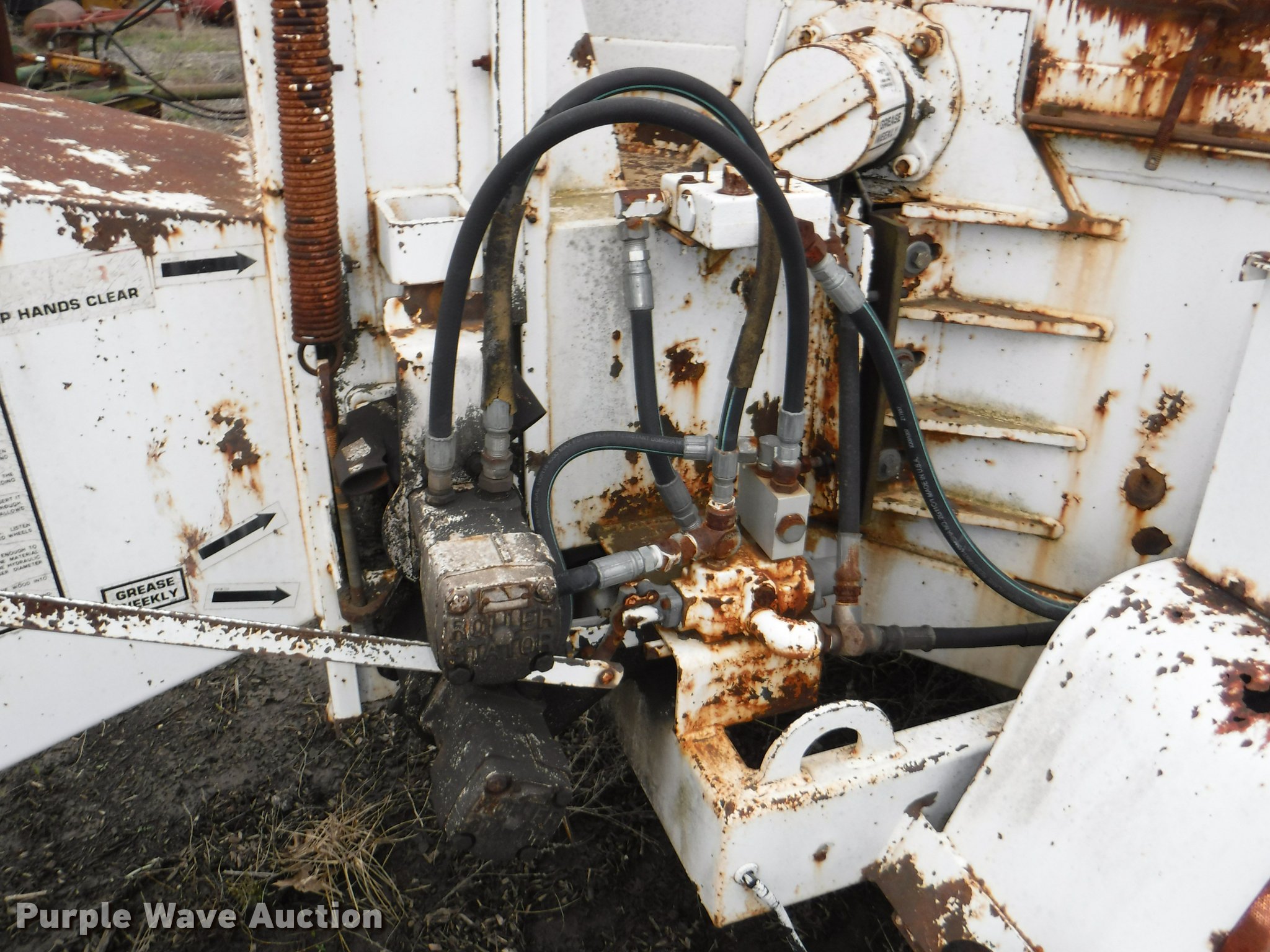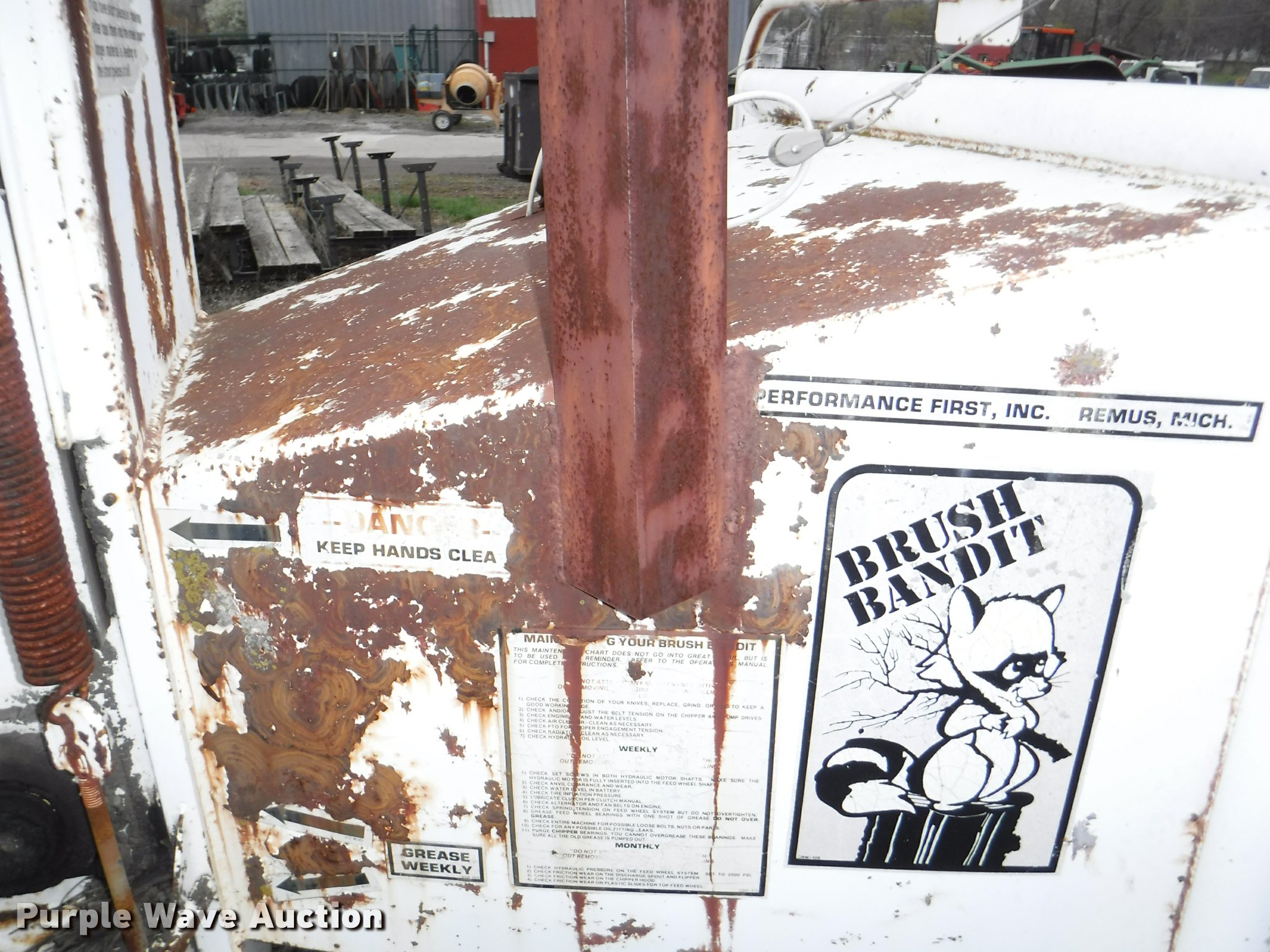 Purple Wave is selling a used Wood Chipper or Stump Grinder in Kansas. This item is a Brush Bandit 200 wood chipper with the following: 5,279 hours on meter, Six cylinder gas engine, 17" opening, 2 5/16" ball hitch, Safety chains, Lights, 9.50-16.5LT tires, Rust, Choke cable and oil pan gasket needs to be replaced