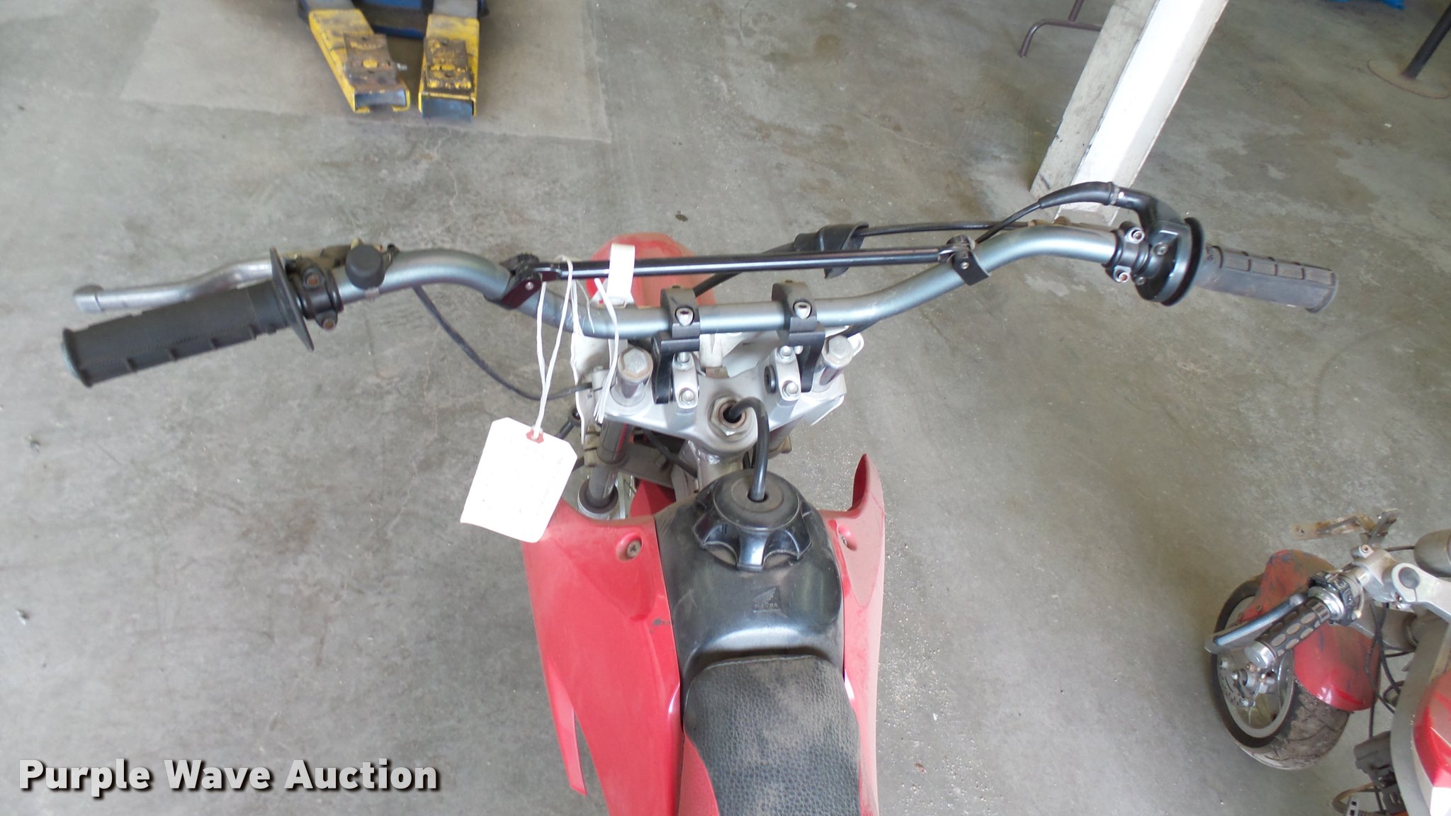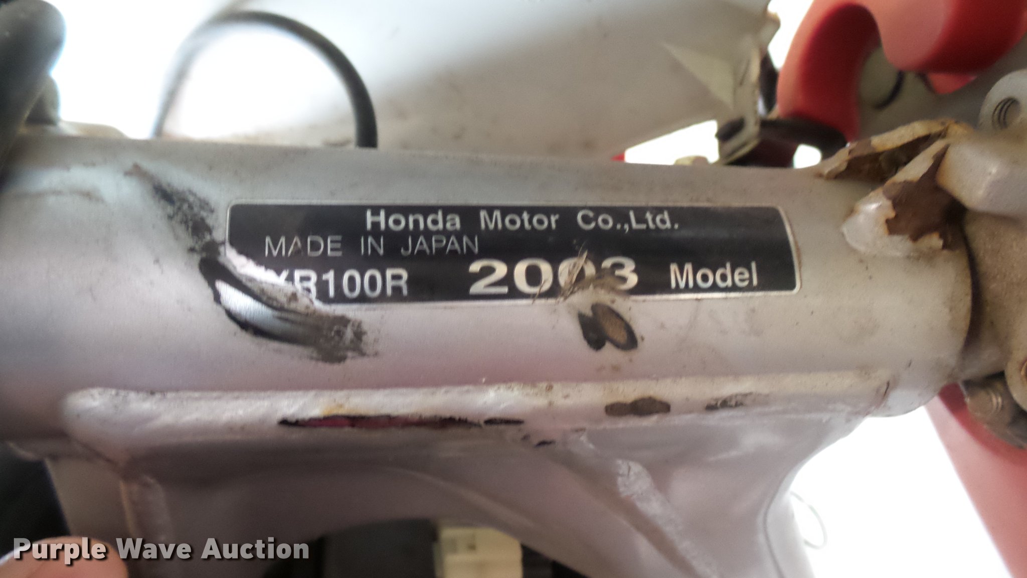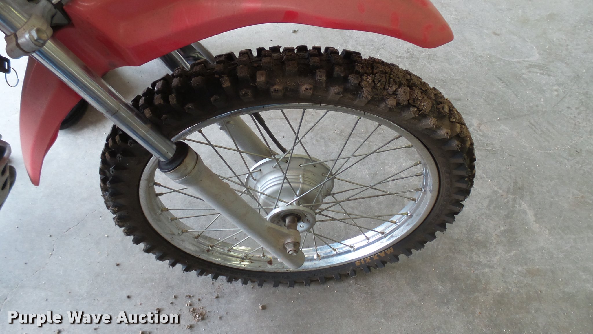 Purple Wave is selling a used Motorcycle in Kansas. This item is a 2003 Honda XR100R dirt bike with the following: 100cc gas engine, Manual transmission, Chain driven, 70/1.00-19 front tire