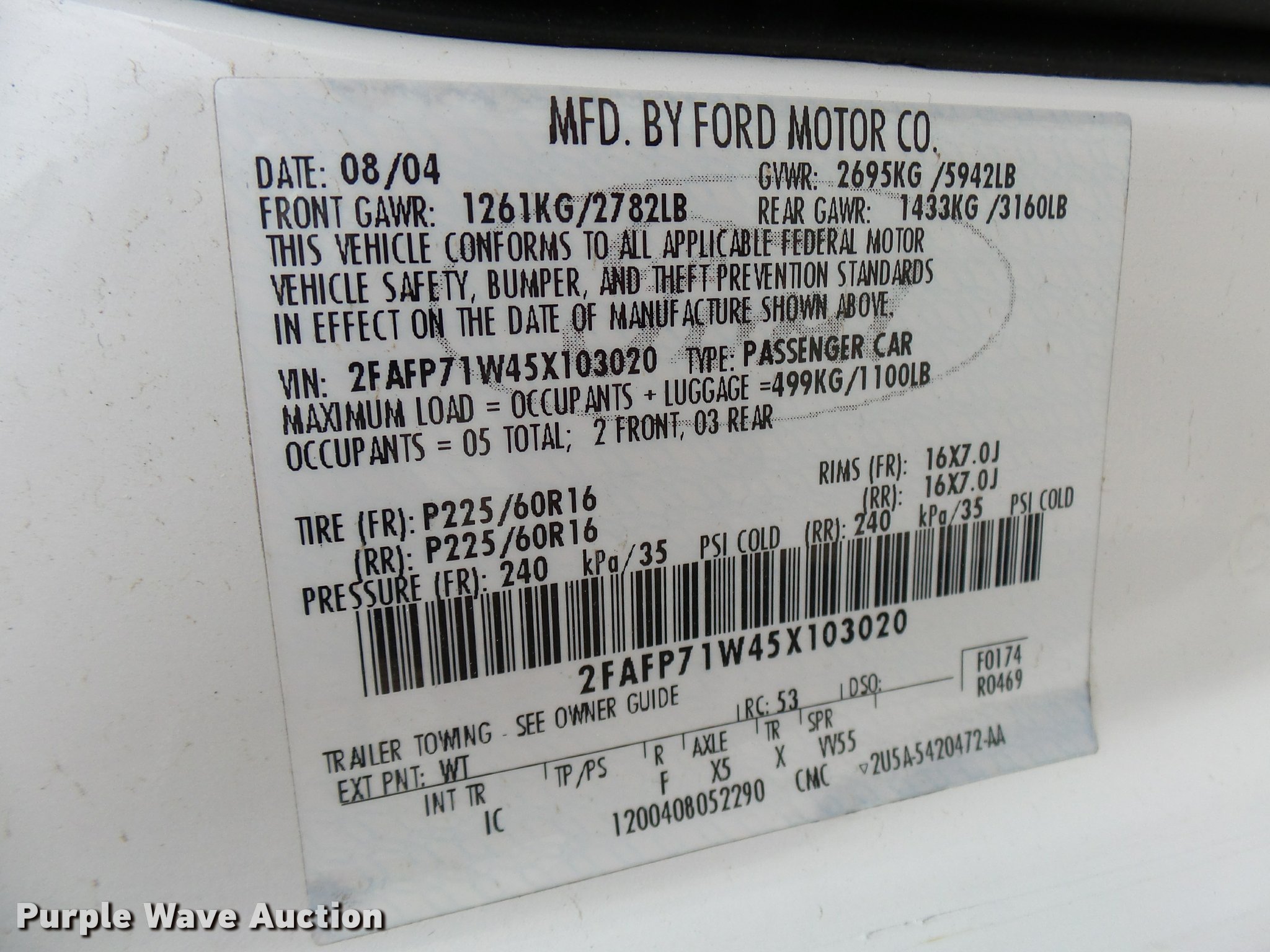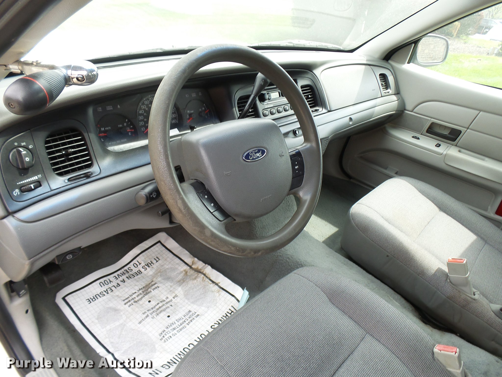 Purple Wave is selling a used Passenger Vehicle in Missouri. This item is a 2005 Ford Crown Victoria Police Interceptor with the following: 91,565 miles on odometer, 4.6L V8 SOHC 16V gas engine, Automatic transmission, AC and heat, Tilt, Cruise, AM/FM, Manual windows, Power locks and mirrors, Cloth interior, Spotlight, 225/60R16 tires