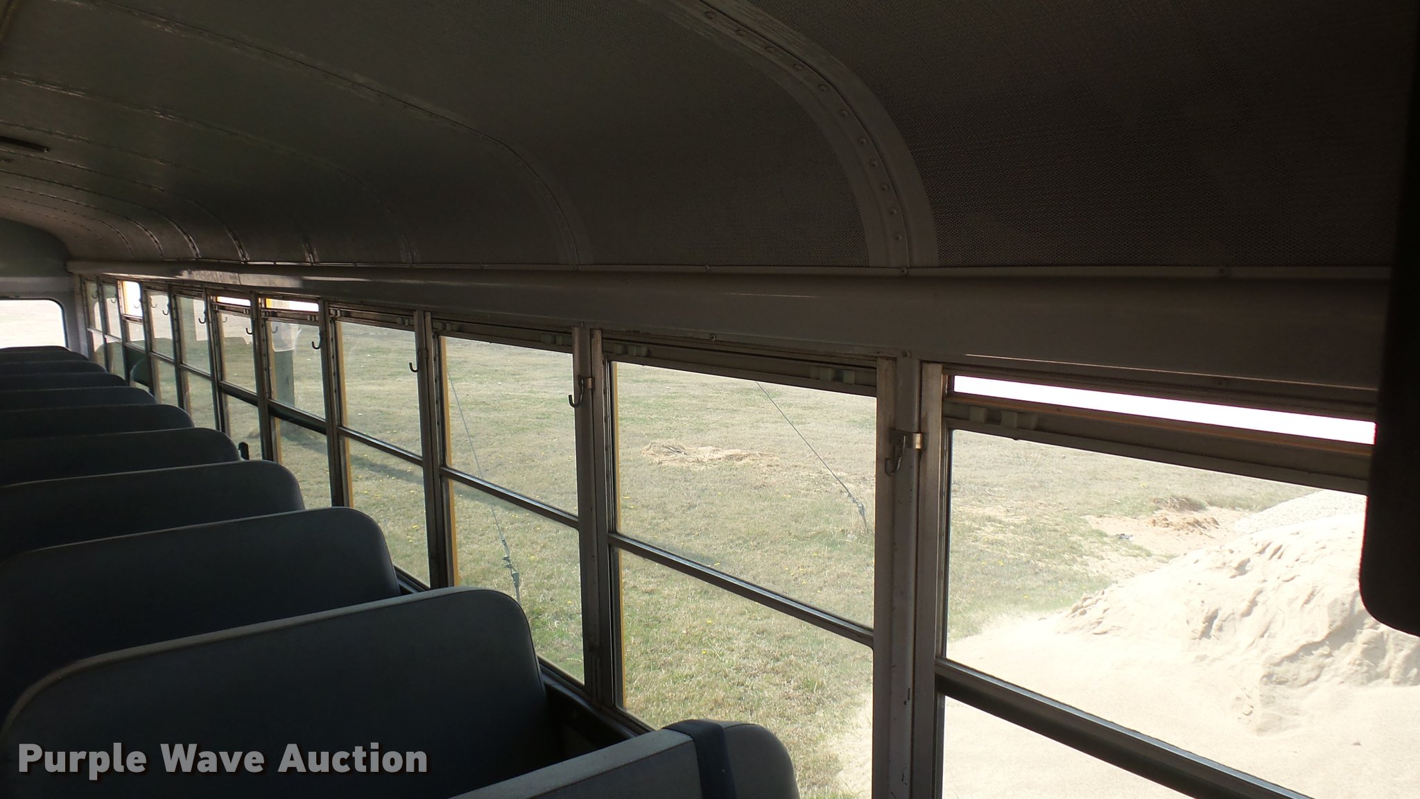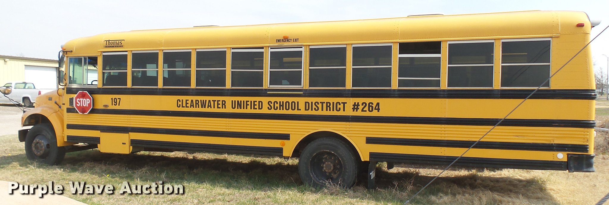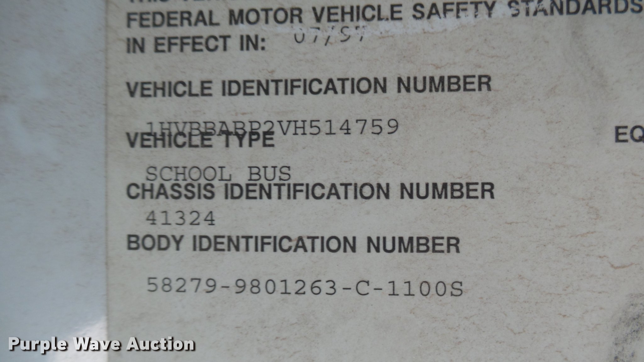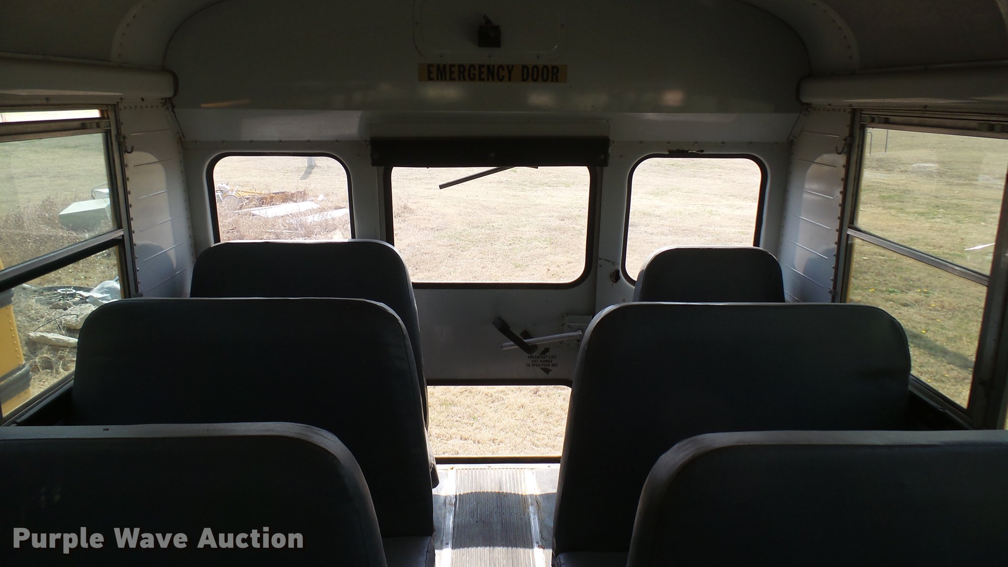 Purple Wave is selling a used Bus in Kansas. This item is a 1997 International 3800 school bus with the following: 142,806 miles on odometer, International T444 7.3L V8 diesel engine, Spicer five speed manual transmission, Heat, AM/FM/cassette, Manual windows and locks, Vinyl interior, 65 passenger capacity, Full light package, Front tow hooks, Hydraulic brakes, 10R22.5 tires, Paint faded/peeling, Weak battery, Unit# 197