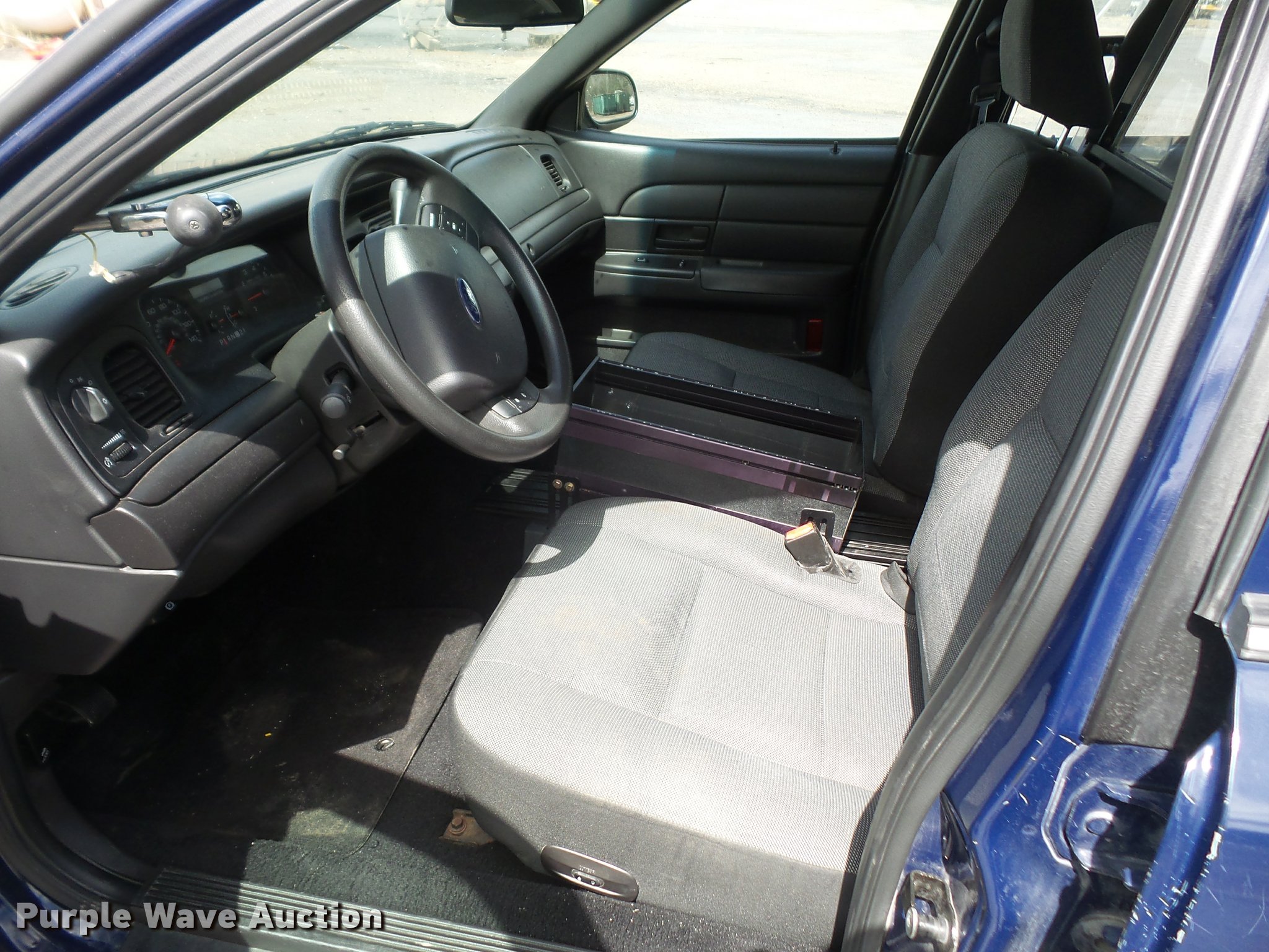 Purple Wave is selling a used Passenger Vehicle in Kansas. This item is a 2007 Ford Crown Victoria Police Interceptor with the following: 112,237 miles on odometer, 4.6L V8 SOHC 16V gas engine, Automatic transmission, AC and heat, Tilt, Cruise, AM/FM, Power windows, locks, mirrors, and seats, Cloth interior, Spotlight, Divider cage, 235/55R17 tires