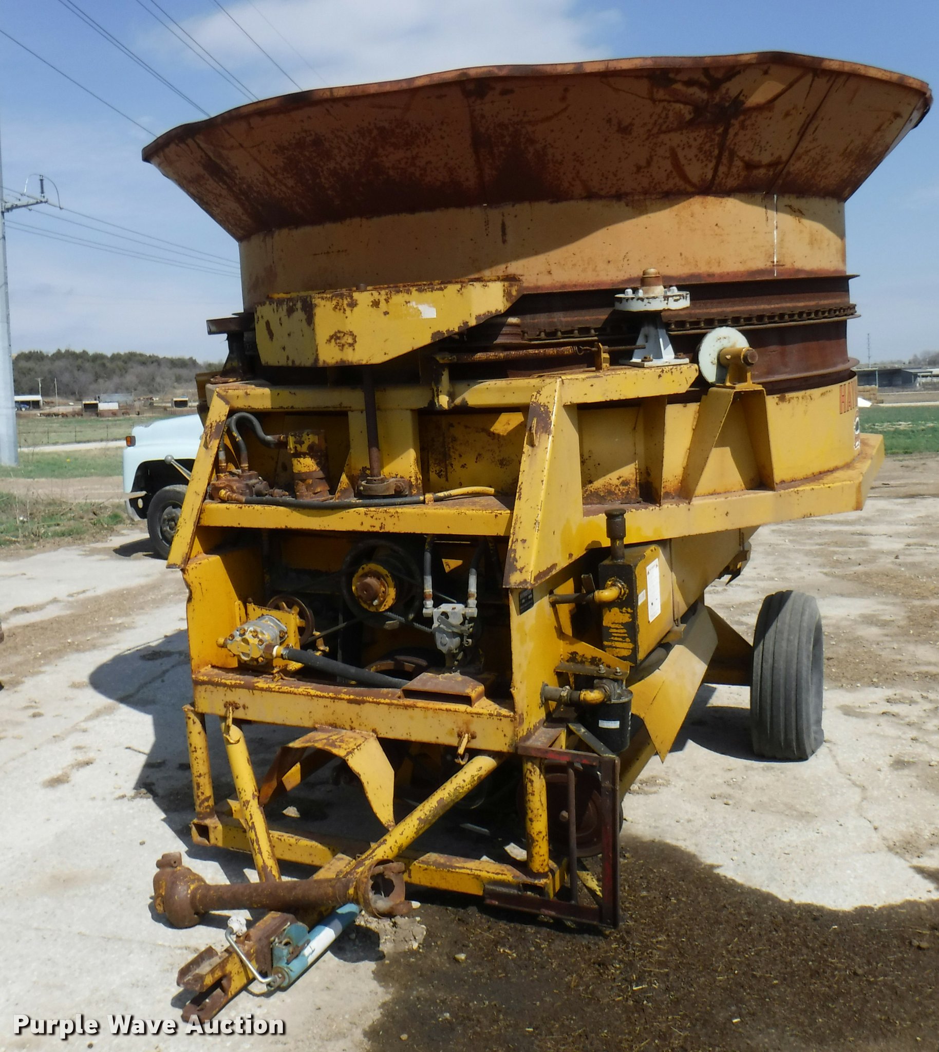 Purple Wave is selling a used Feed Mixer or Bale Processor in Kansas. This item is a HayBuster Big Bite H1000 bale processor with the following: 18'L x 19"W conveyor, 1000 PTO, Pin hitch, 9.5L-15 tires, PTO damaged, Unknown operating condition, Serial 791326