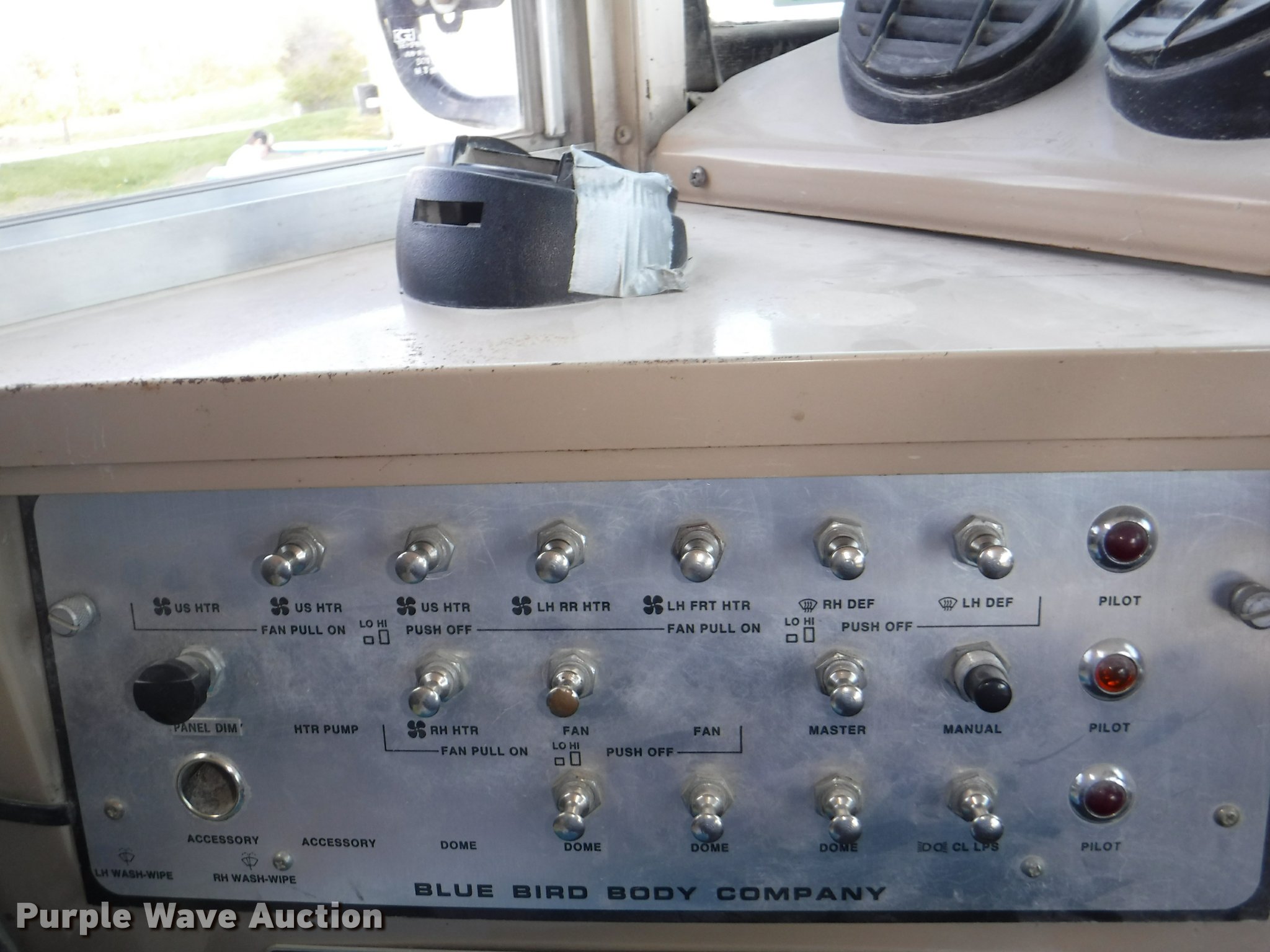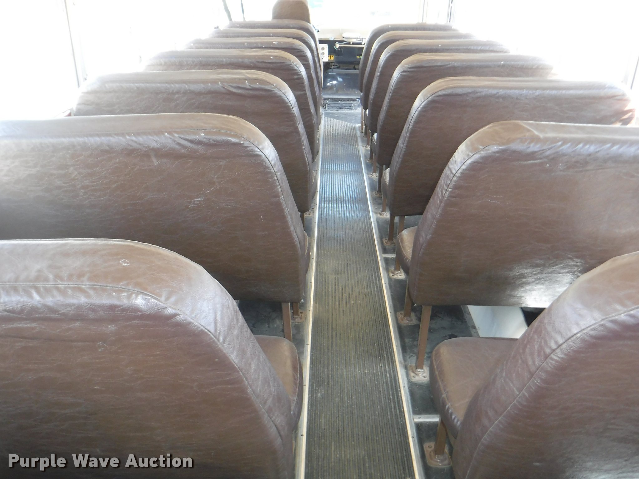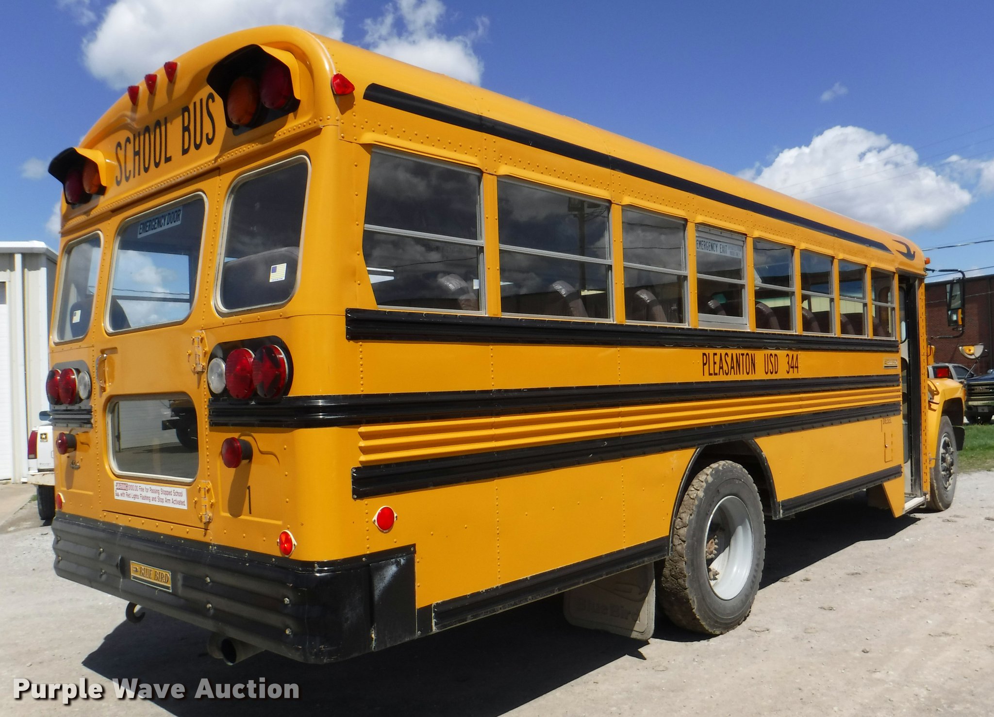 1993 Ford B700 schoolbus. 126,109 miles on odometer, Cummins ISB 5.9L L6 turbo diesel engine Serial 44772972, Automatic transmission, Single axle, Heat, AM/FM, Heated mirrors, Suspension seat, Vinyl interior, 47 passenger capacity, Ceiling, rear, and side emergency egress, Lighted stop sign, Block heater, Front and rear tow hooks, 172" wheelbase, Spring suspension, Hydraulic brakes, 10R22.5 tires, Decals will be painted over prior to auction. Kansas title. 1FDPJ75C5PVA01600. Pleasanton, KS 66075