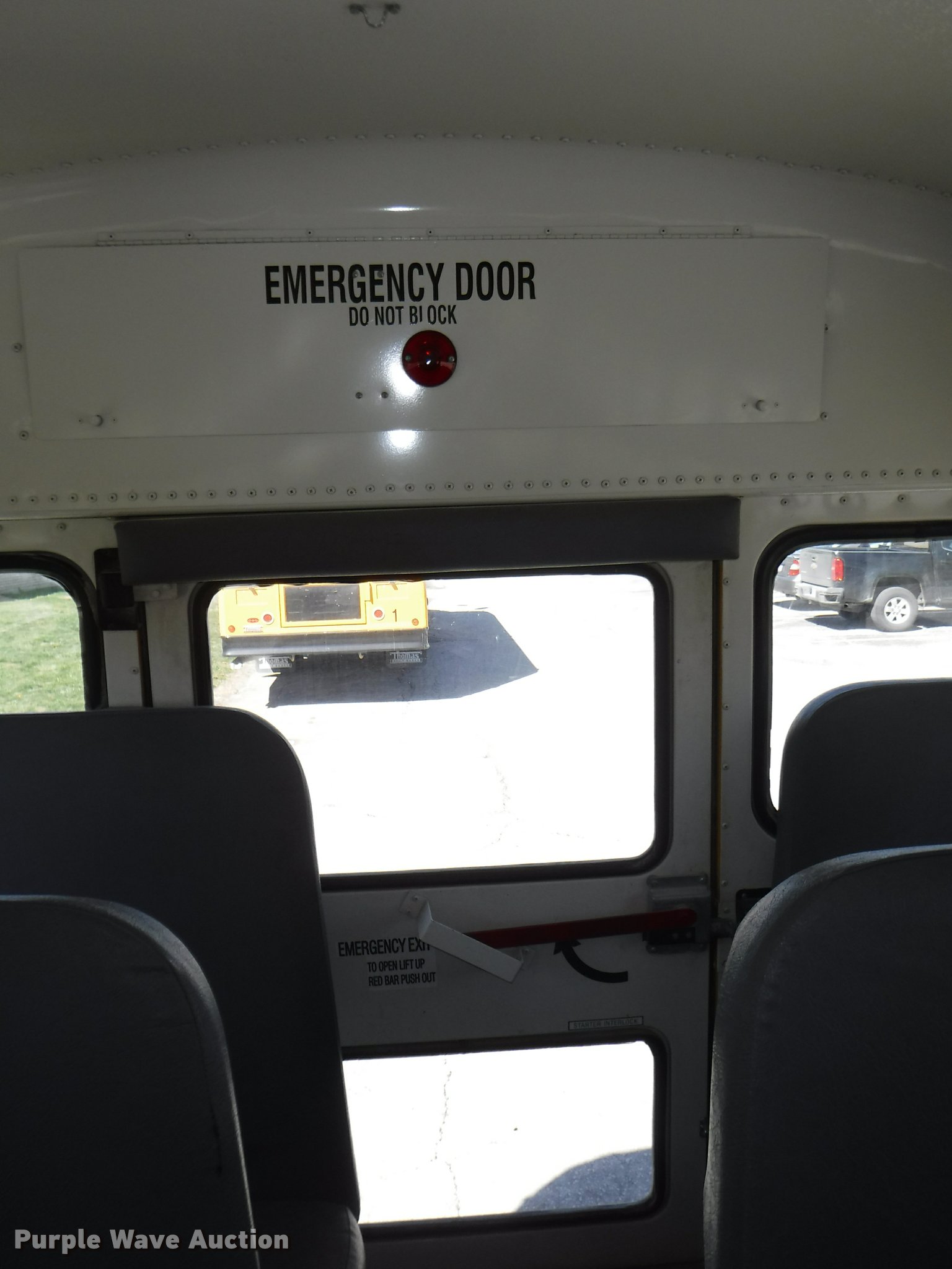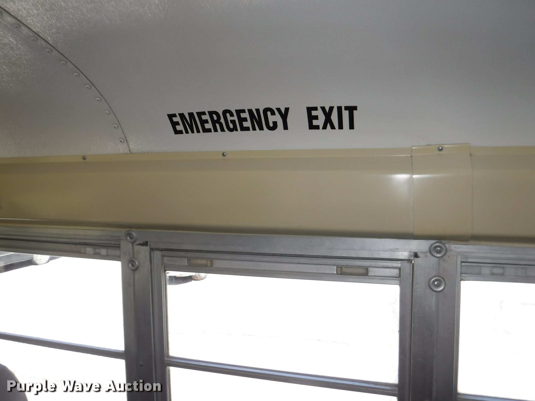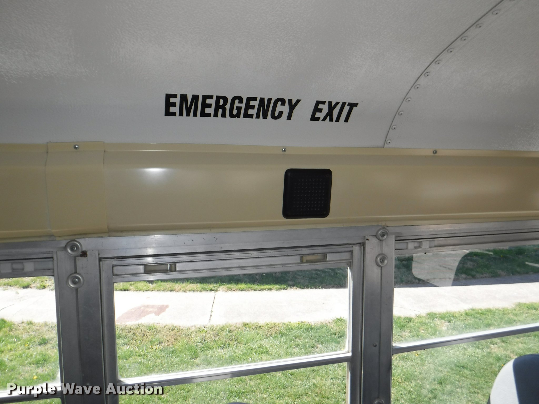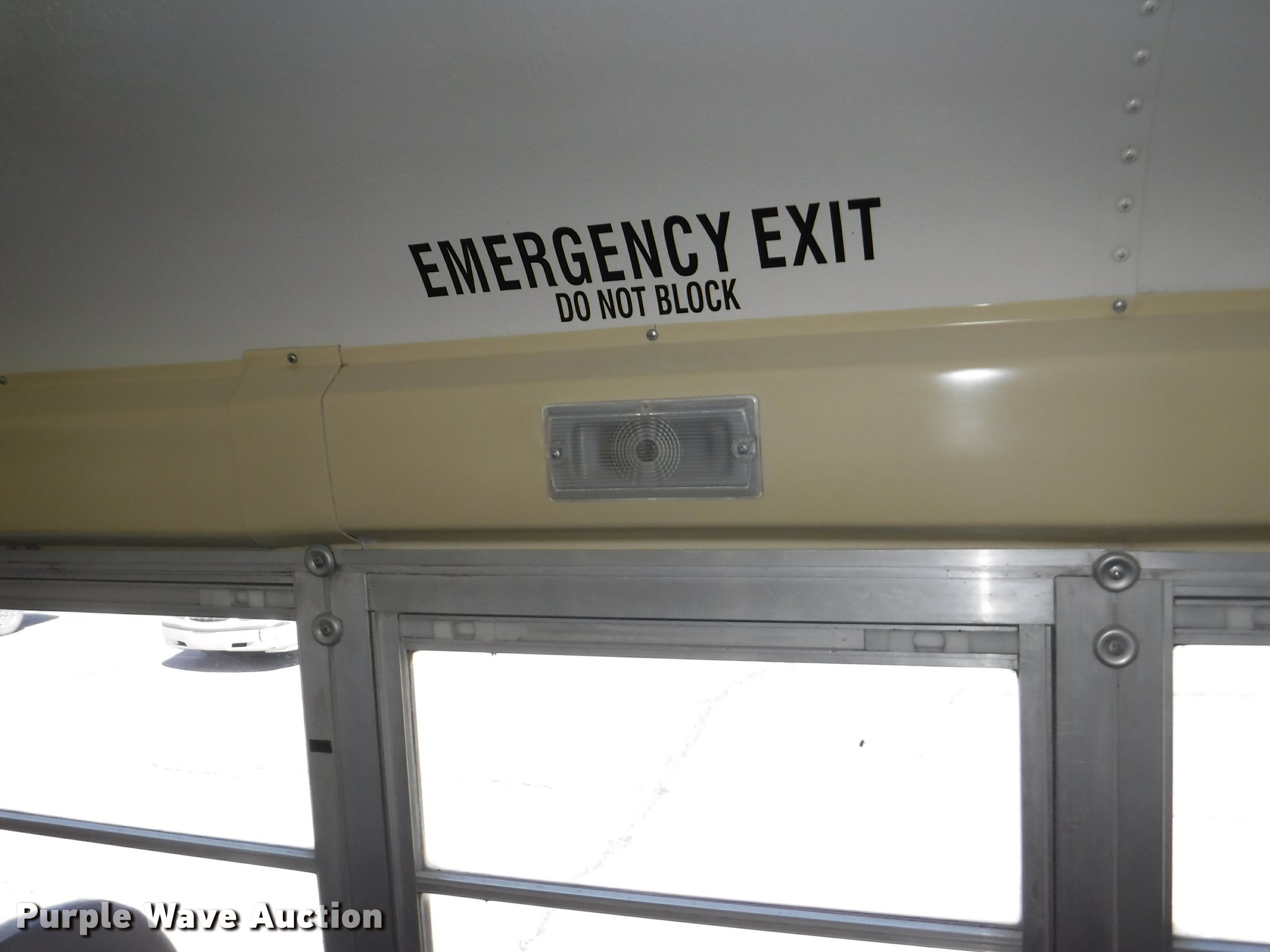 Purple Wave is selling a used Bus in Kansas. This item is a 2004 International CE200 school bus with the following: 85,617 miles on odometer, 3,834 hours on meter, Odometer and hour meter inoperable, International T444E 7.3L V8 turbo diesel engine, 175 HP, Automatic transmission, Single axle, Heat, AM/FM, Heated mirrors, Suspension seat, Cloth drivers interior, Vinyl passenger interior, 53 passenger capacity, Ceiling, rear, and side emergency exits, Lighted stop sign, Crossing bar, Backup alarm, Block heater, Front and rear tow hooks, Spring suspension, Hydraulic brakes, 219" wheelbase, Bridgestone 265/75R22.5 tires, GVWR 25,500 lbs, Emergency exit alarm buzzes intermittently, Gauges inoperable, Unit# 6
