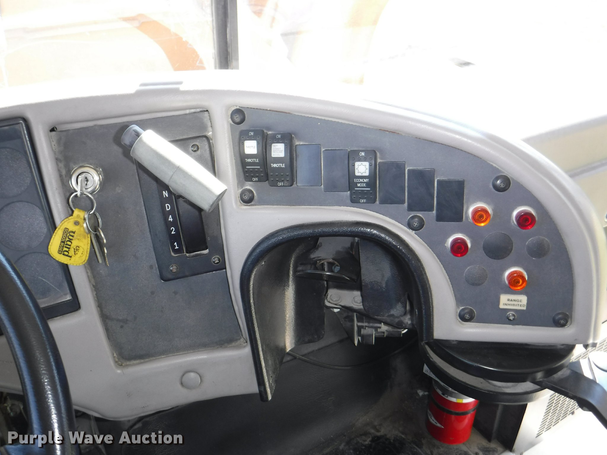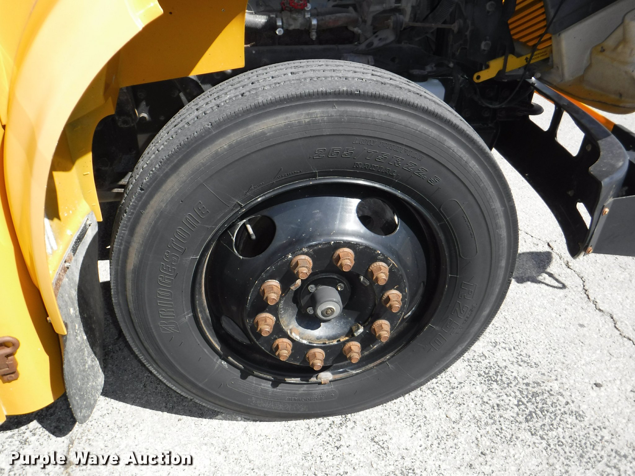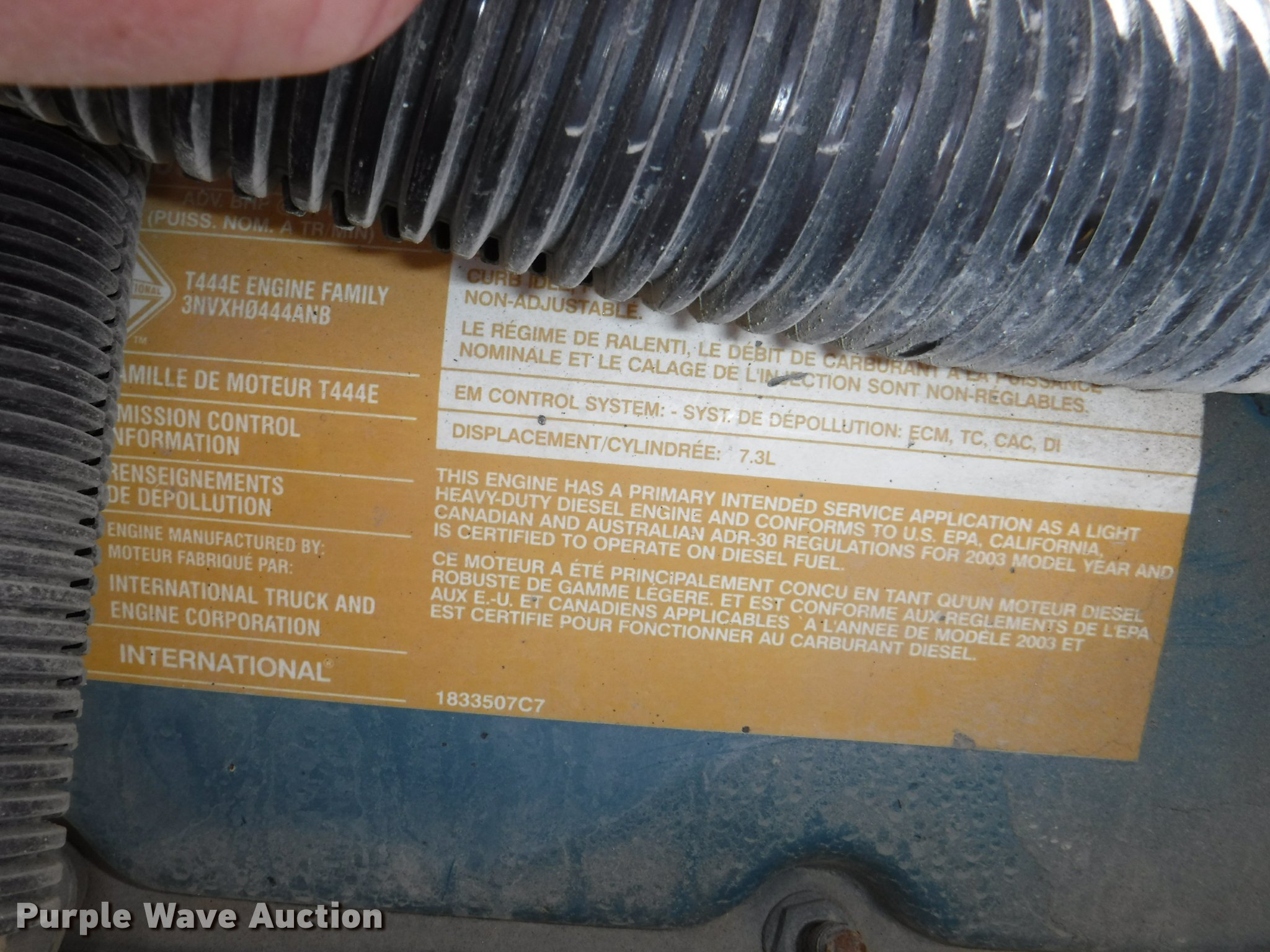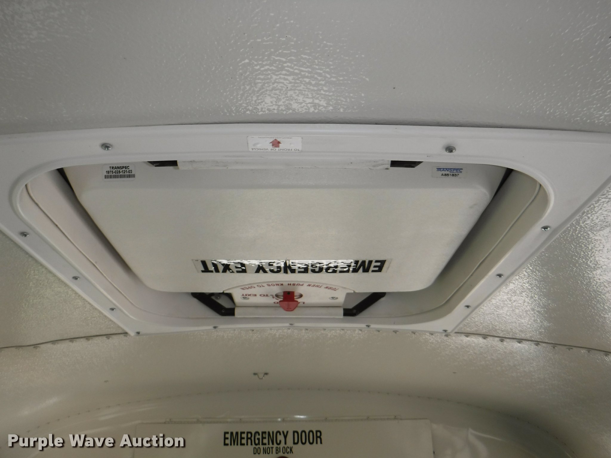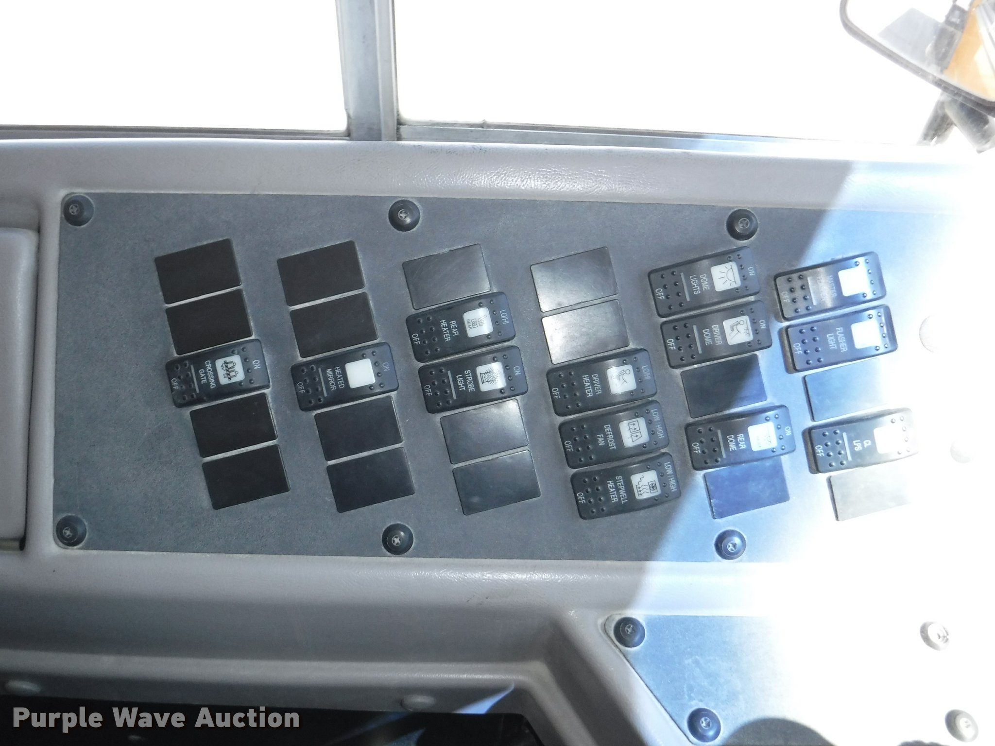 Purple Wave is selling a used Bus in Kansas. This item is a 2004 International CE200 school bus with the following: 85,617 miles on odometer, 3,834 hours on meter, Odometer and hour meter inoperable, International T444E 7.3L V8 turbo diesel engine, 175 HP, Automatic transmission, Single axle, Heat, AM/FM, Heated mirrors, Suspension seat, Cloth drivers interior, Vinyl passenger interior, 53 passenger capacity, Ceiling, rear, and side emergency exits, Lighted stop sign, Crossing bar, Backup alarm, Block heater, Front and rear tow hooks, Spring suspension, Hydraulic brakes, 219" wheelbase, Bridgestone 265/75R22.5 tires, GVWR 25,500 lbs, Emergency exit alarm buzzes intermittently, Gauges inoperable, Unit# 6