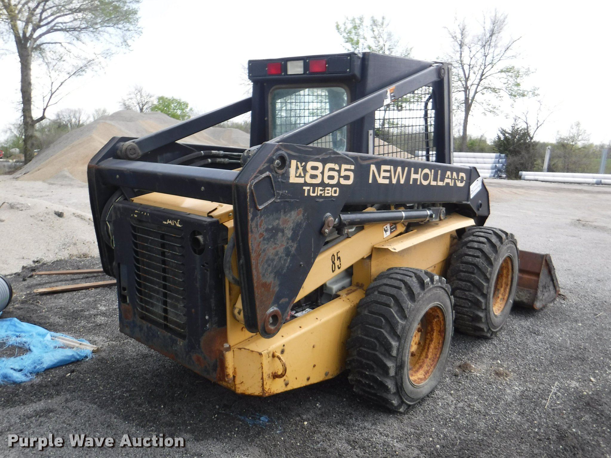 Purple Wave is selling a used Skid Steer Loader in Kansas. This item is a 1998 New Holland LX865 skid steer with the following: 2,734 hours on meter, New Holland 332T/JF 3.2L three cylinder turbo diesel engine, Serial 797169, Hydrostatic transmission, Open station/canopy, High flow auxiliary hydraulics, Manual quick coupler, 77"W bucket, Weld-on cutting edge, Forks, 45" x 4" x 1", Brush guard, Galaxy 12x16.5 tires, Electrical issues, Bucket will not raise, Seat torn, Serial 100679, Unit# 85