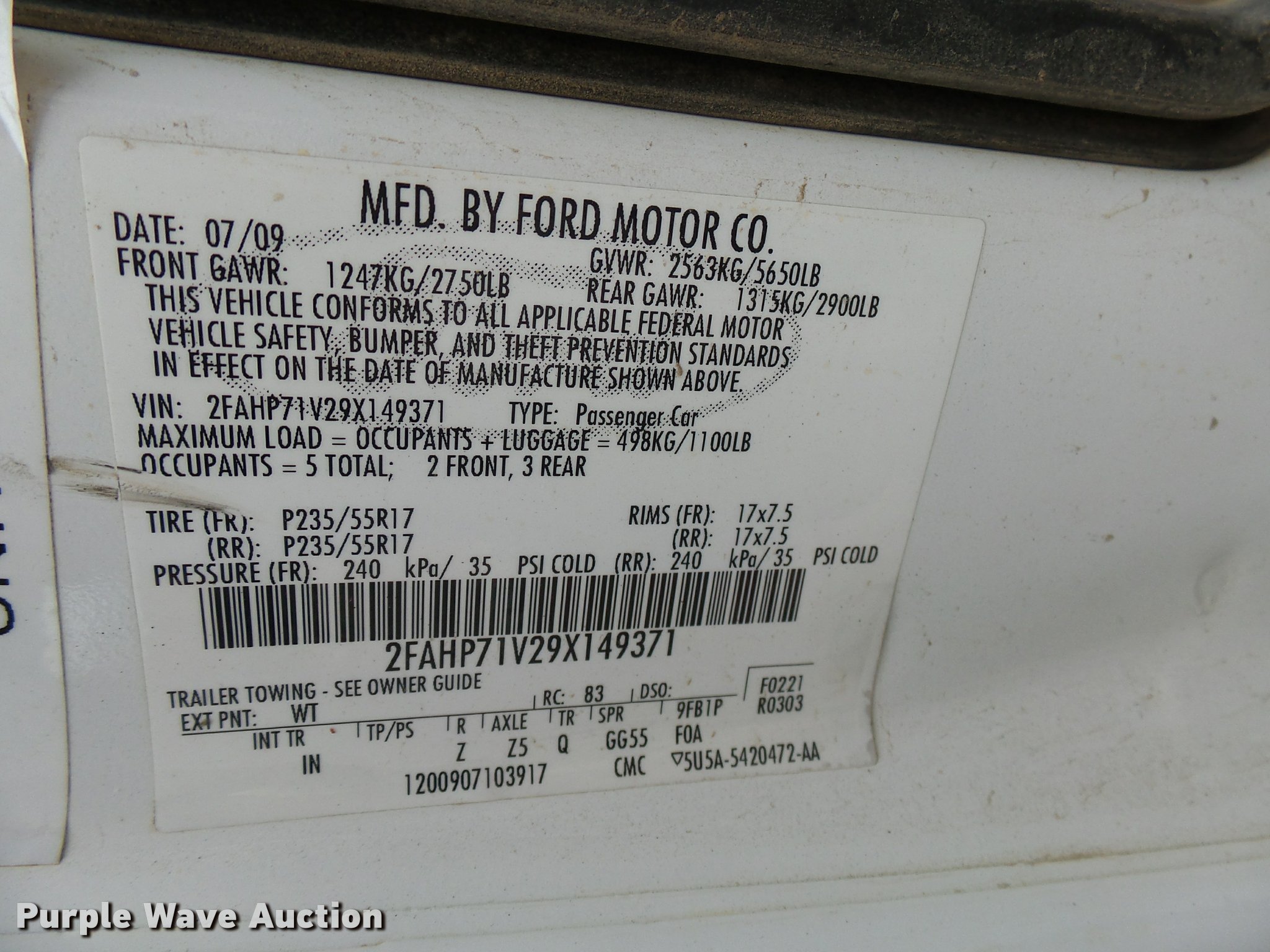 Purple Wave is selling a used Passenger Vehicle in South Dakota. This item is a 2009 Ford Crown Victoria Police Interceptor with the following: Unknown miles on odometer, 4.6L V8 SOHC 16V FFV gas engine, Automatic transmission, AC and heat, Tilt, Cruise, AM/FM/CD, Power windows and locks, Cloth interior, Exterior electrical plug-in, P235/55R17 tires