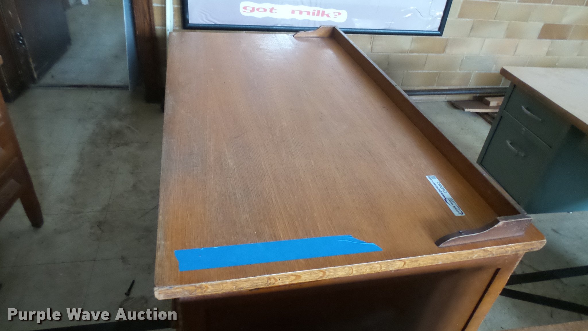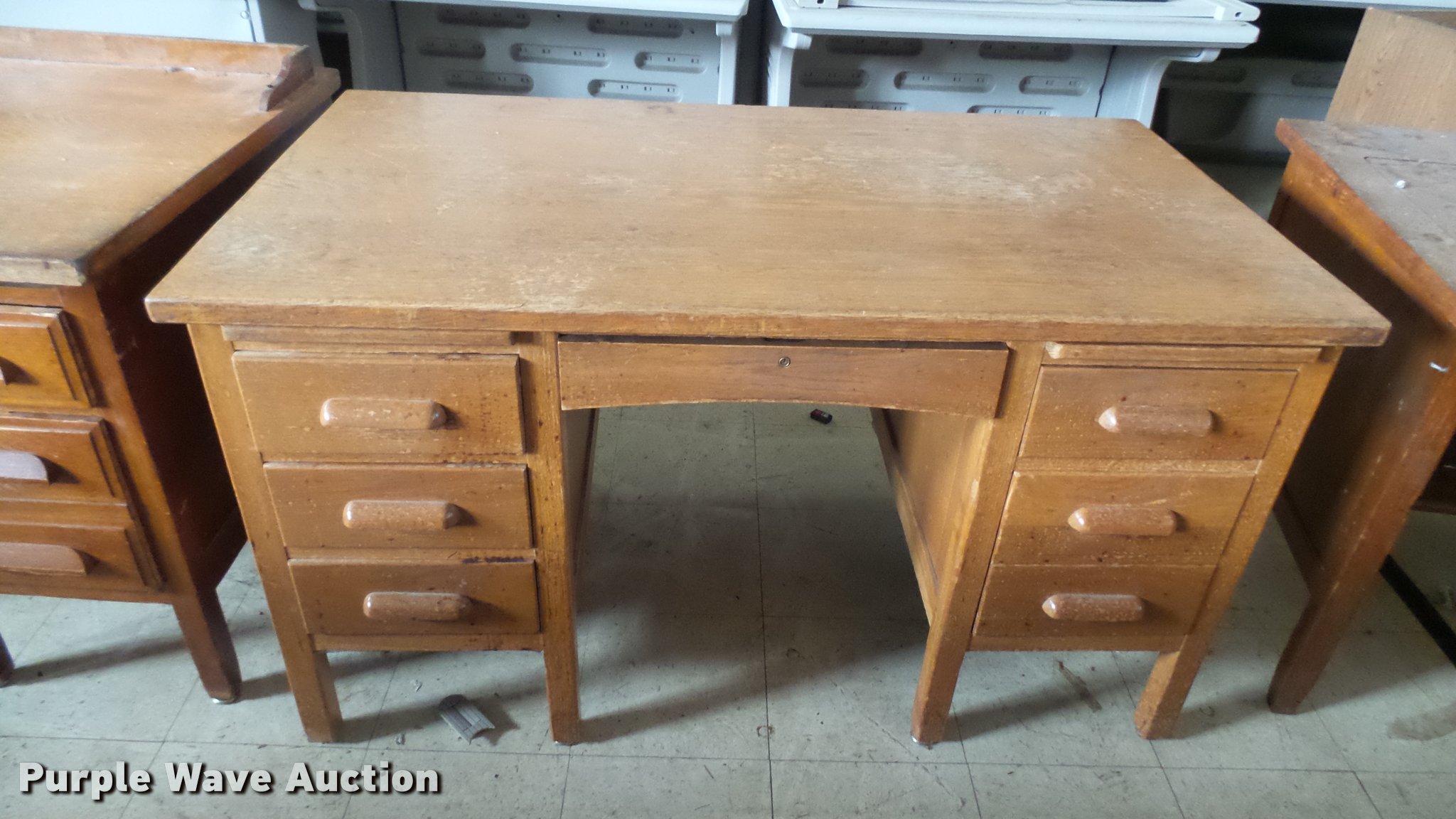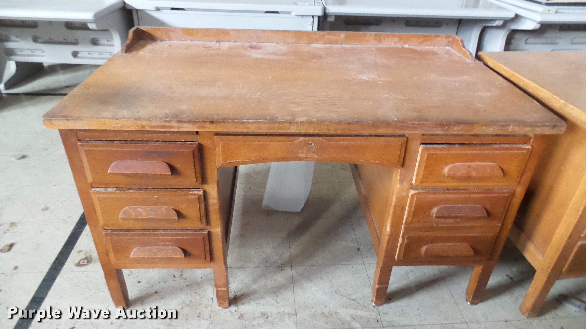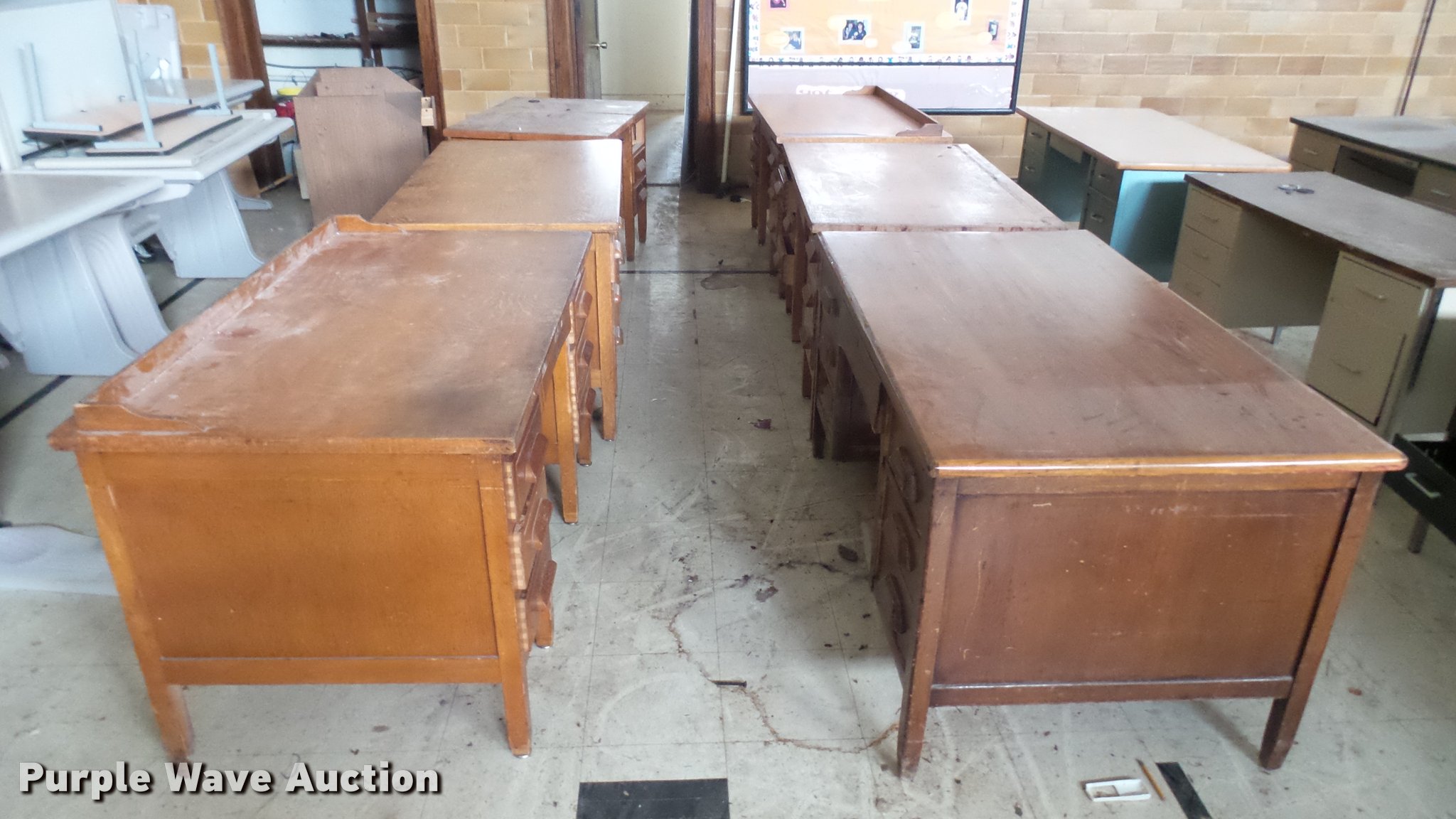 Purple Wave is selling a used Furniture in Kansas. This item is a (6) wood desks with the following: Assorted styles and sizes, Various conditions