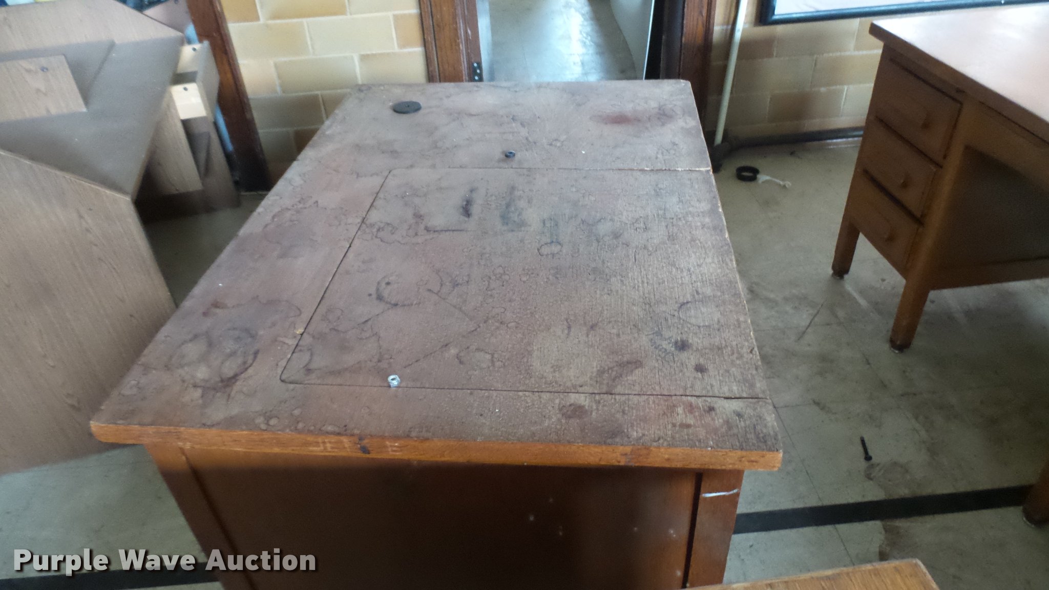 (6) wood desks. Assorted styles and sizes, Various conditions. USD 358 Oxford. Oxford, KS 67119