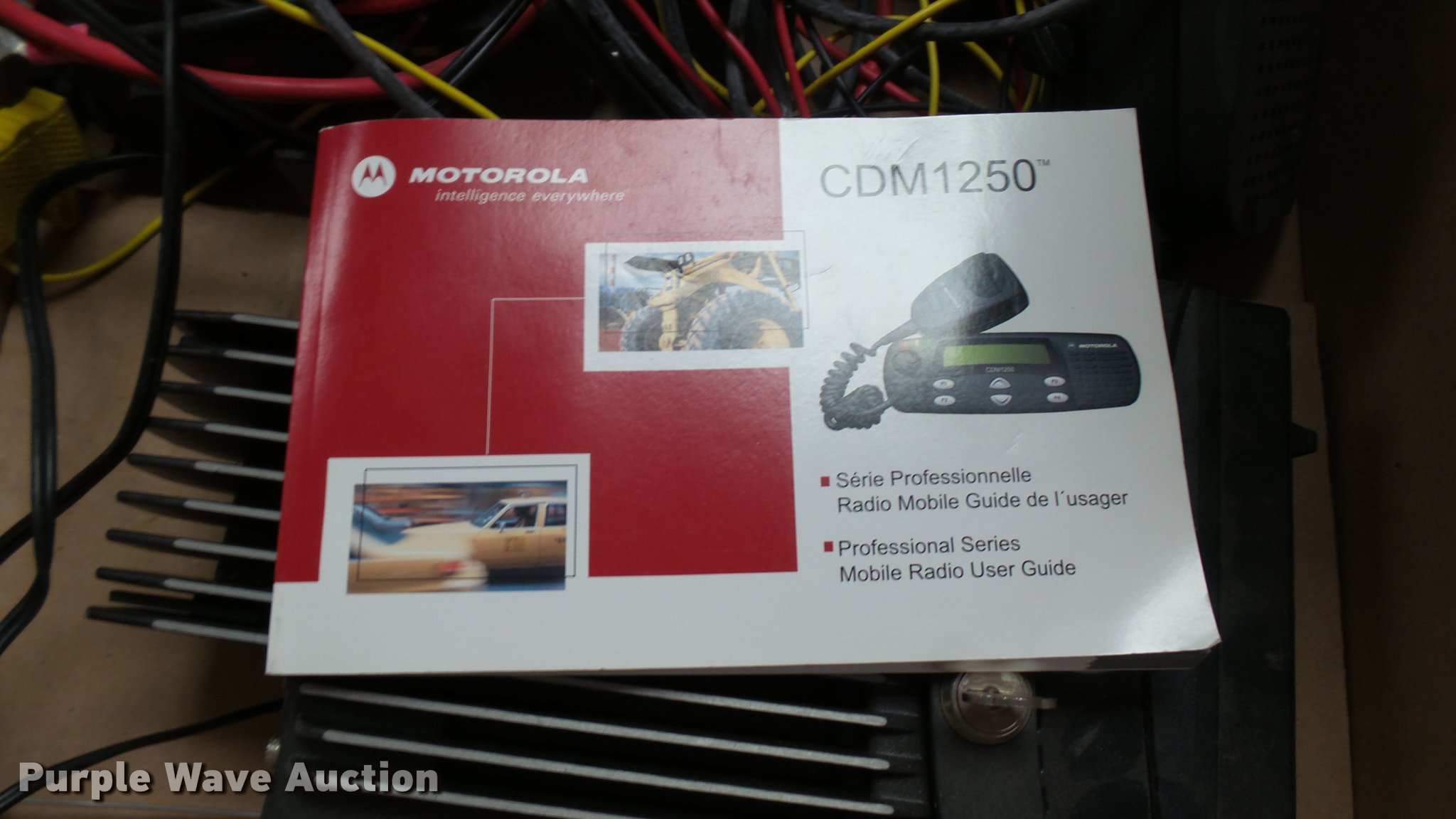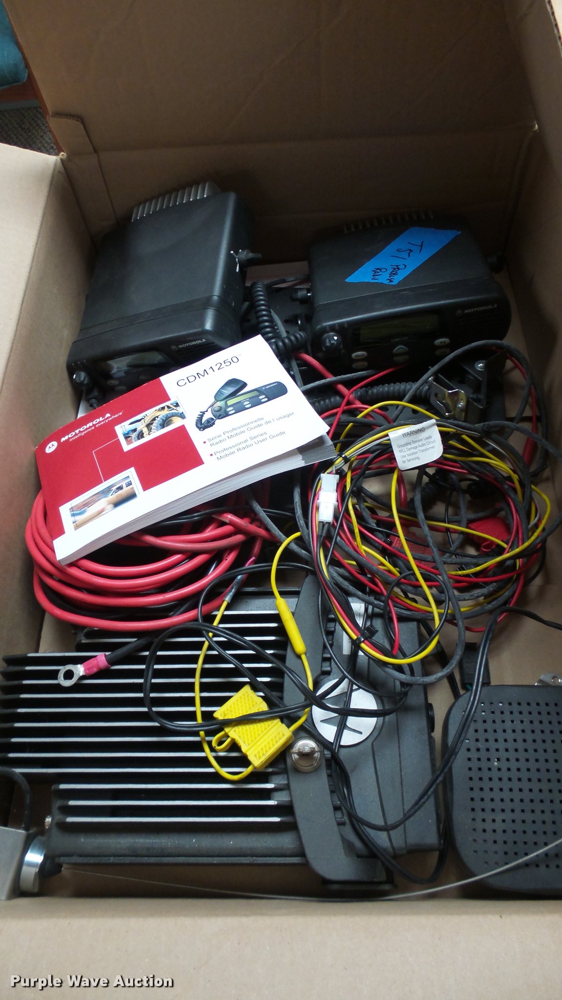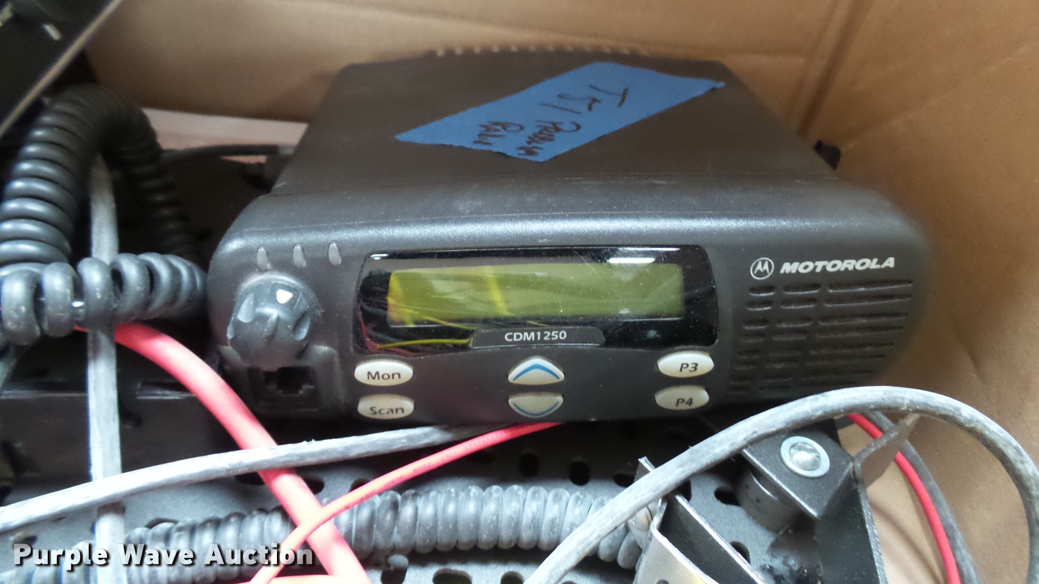 Purple Wave is selling a used Electronics in Kansas. This item is a Radio equipment with the following: (15) Motorola HT-1000 VHF portable radios, Six chargers, (14) Motorola speaker/microphones, Fits HT-1000 radios, Motorola NTN1177C multi gang charger, Fits HT-1000 radios, Motorola HT-750 VHF portable radio, Two chargers, Motorola PM-1500 VHF mobile radio, (2) Motorola CDM-1250 VHF mobile radios, Motorola CDM-1250 VHF base station radio, Assorted radio equipment/electrical parts