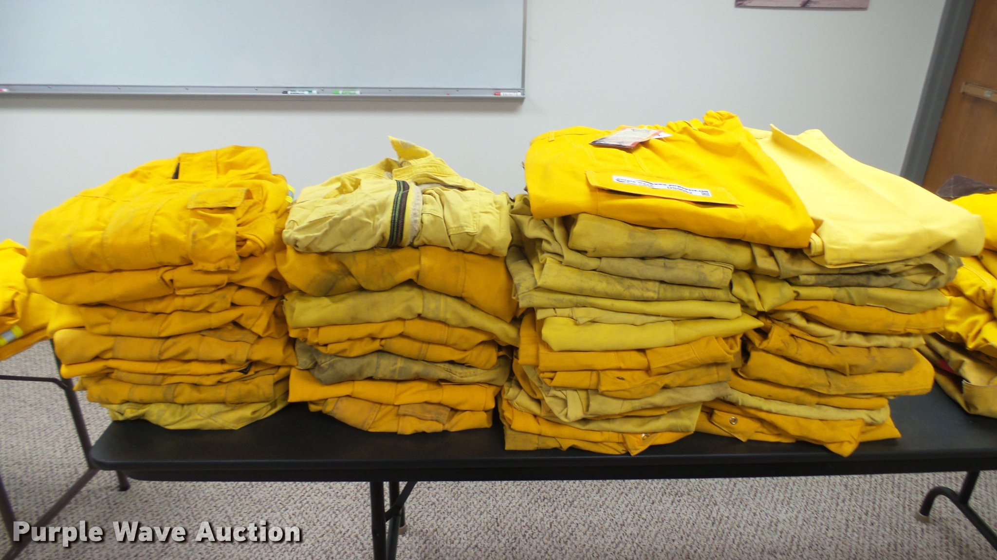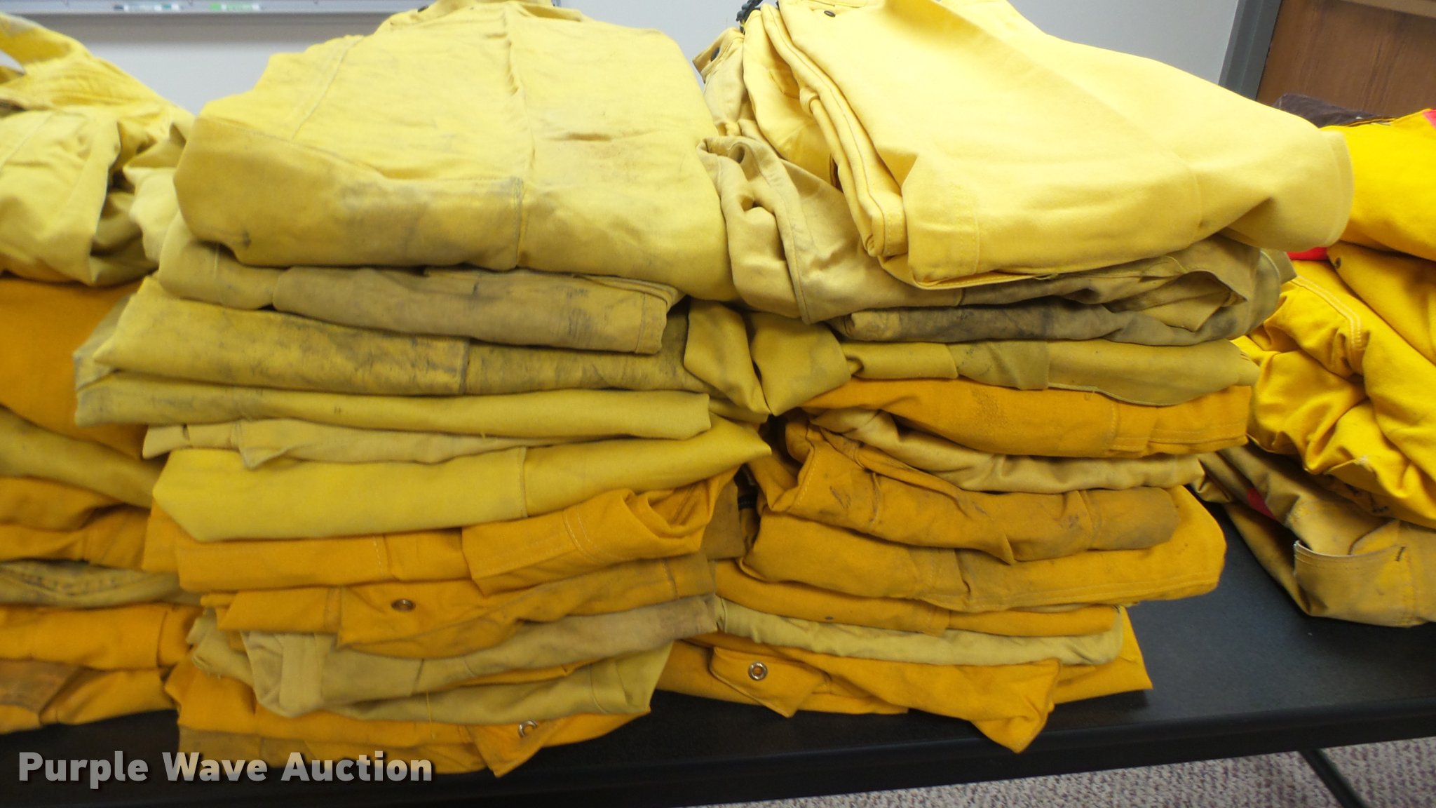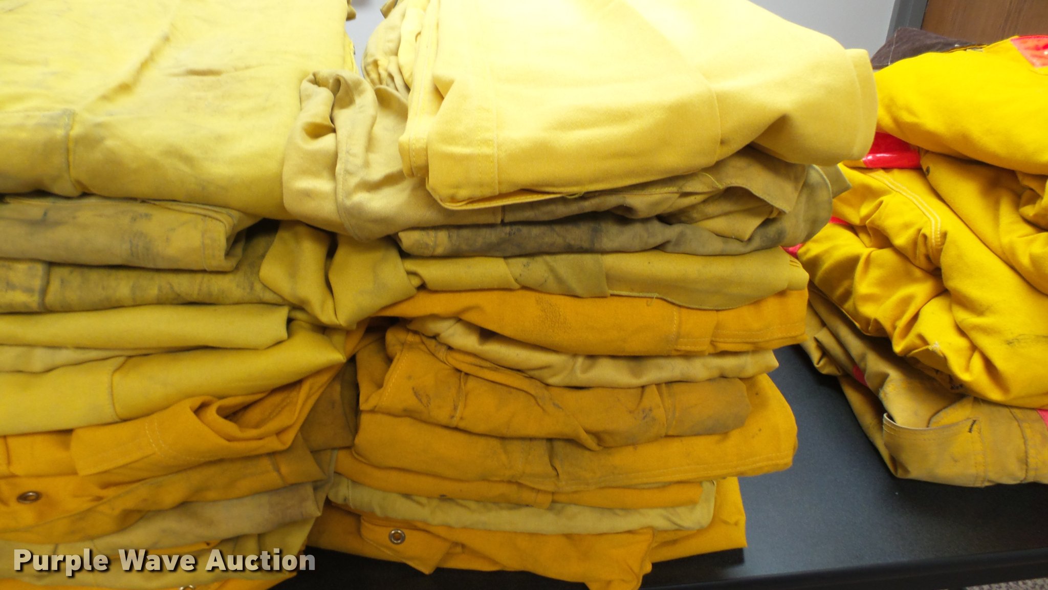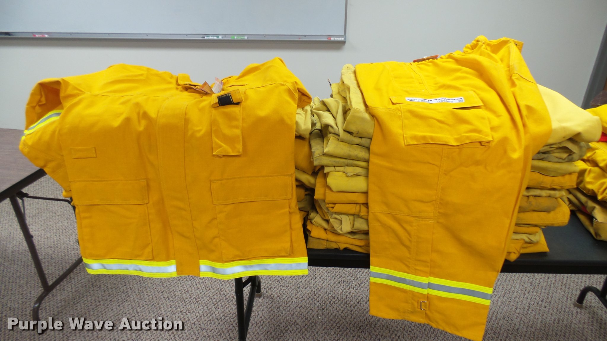Purple Wave is selling a used Tools in Kansas. This item is a Firefighting equipment with the following: (32) Crew Boss - Nomex wildland firefighting pants, (19) Crew Boss - Nomex wildland firefighting coats, Various conditions