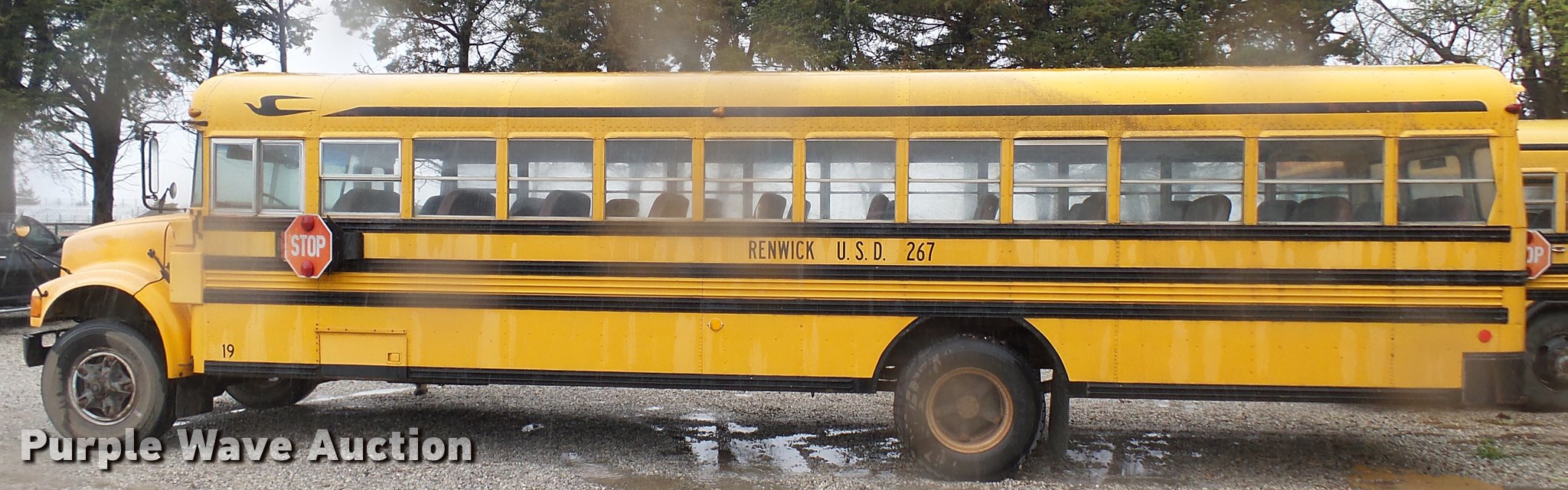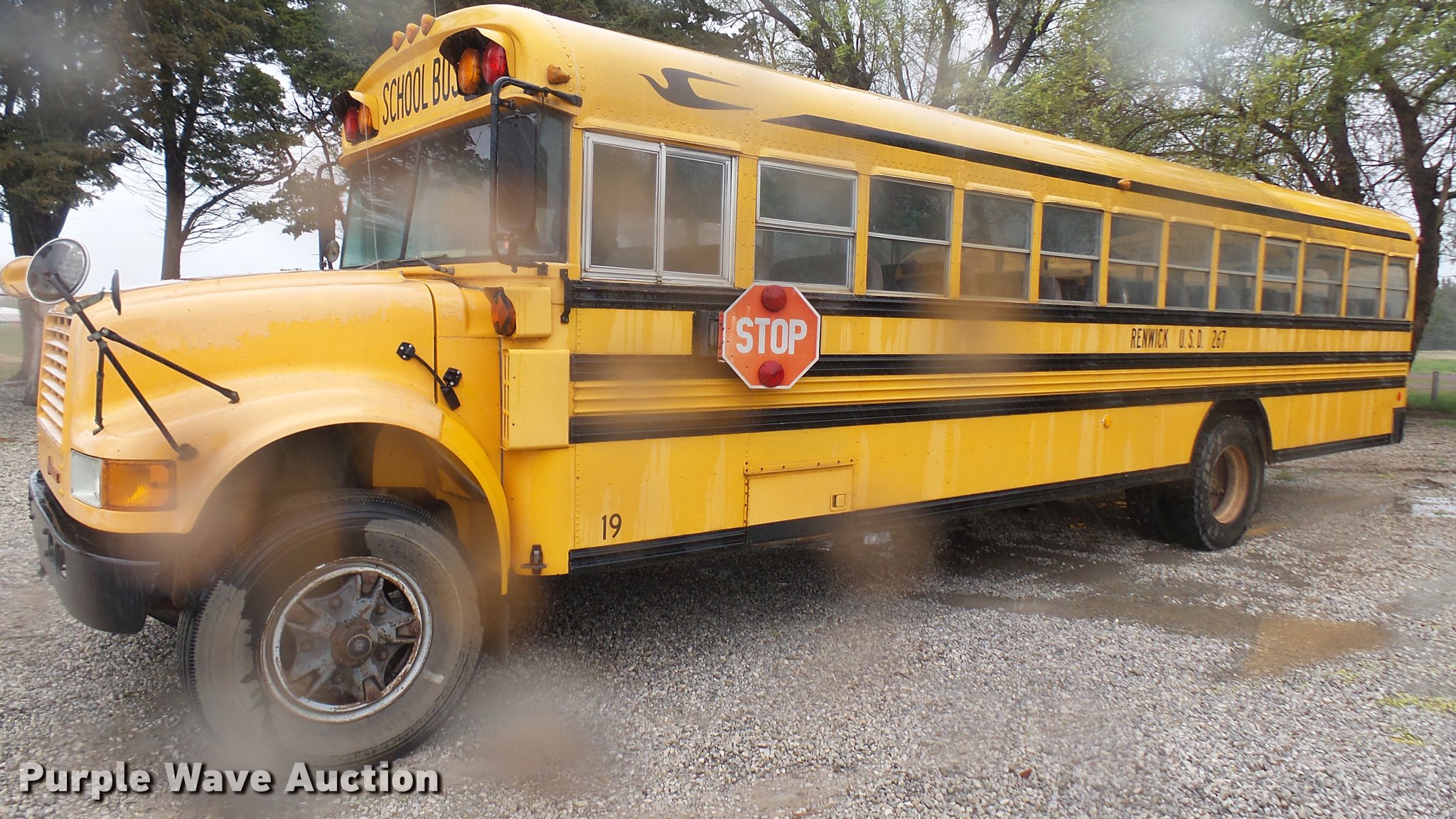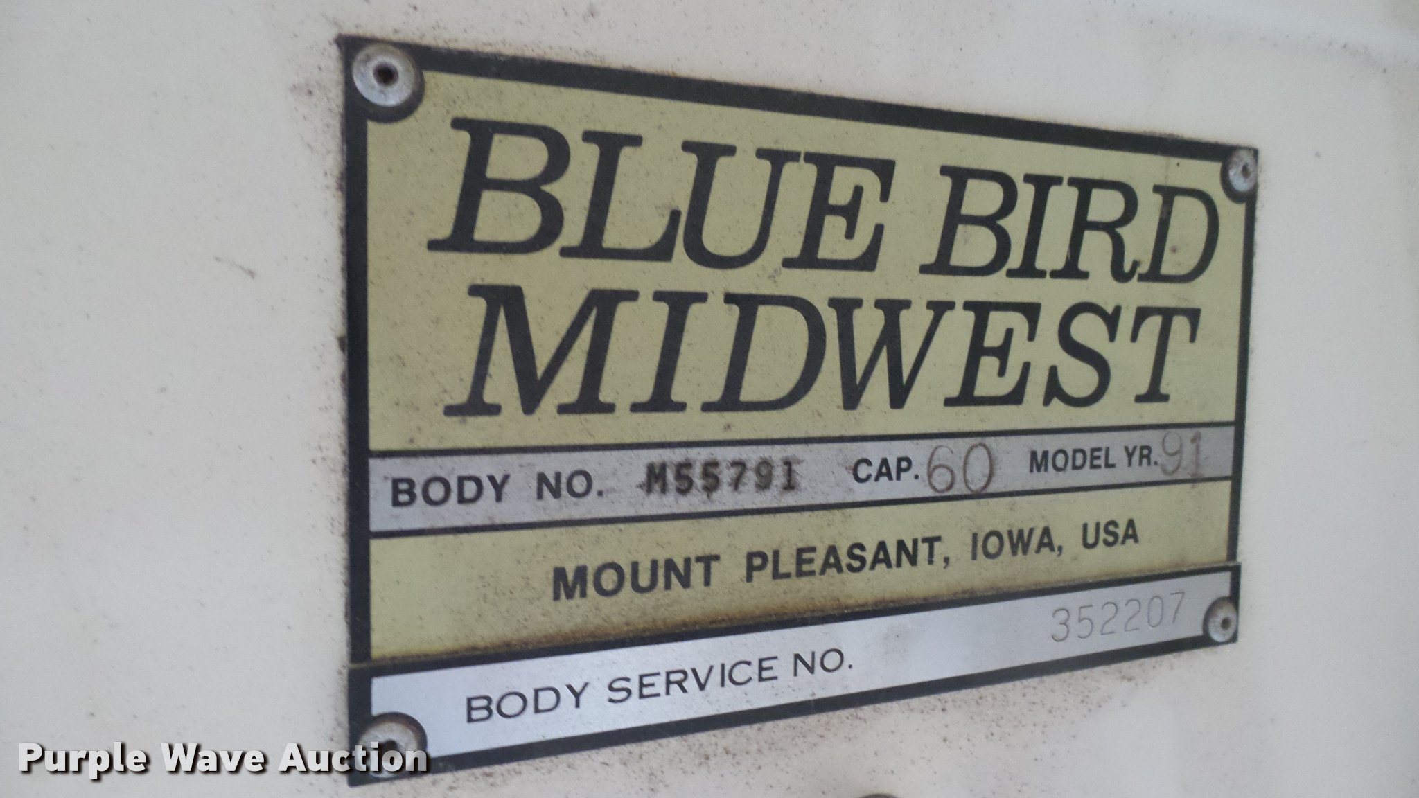 Purple Wave is selling a used Bus in Kansas. This item is a 1991 International 3800 Blue Bird school bus with the following: 79,118 miles on odometer, International DT360 5.9L L6 diesel engine, Automatic transmission, Heat, Vinyl interior, 60 passenger capacity, Light package, 11R22.5 tires, Rust, Weak battery
