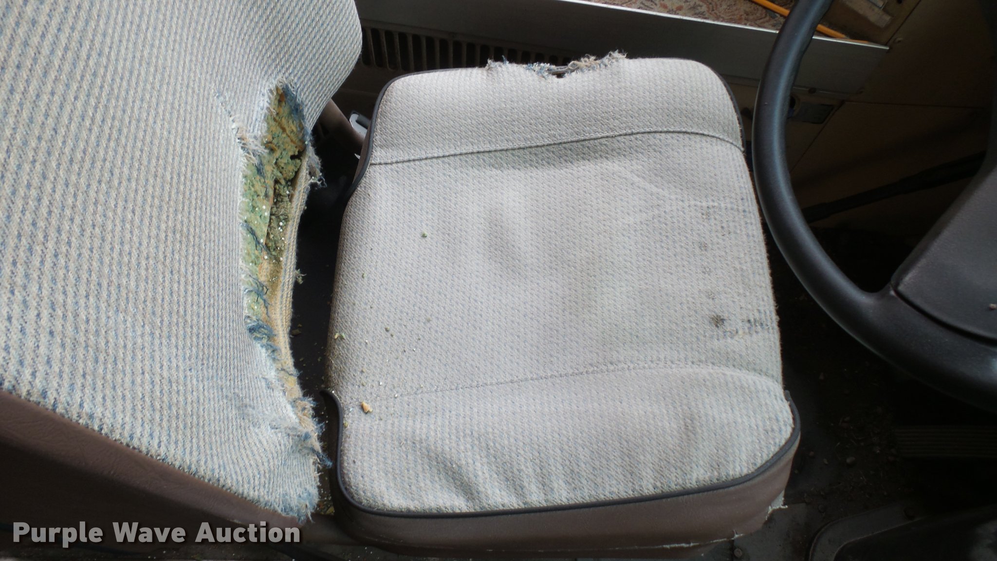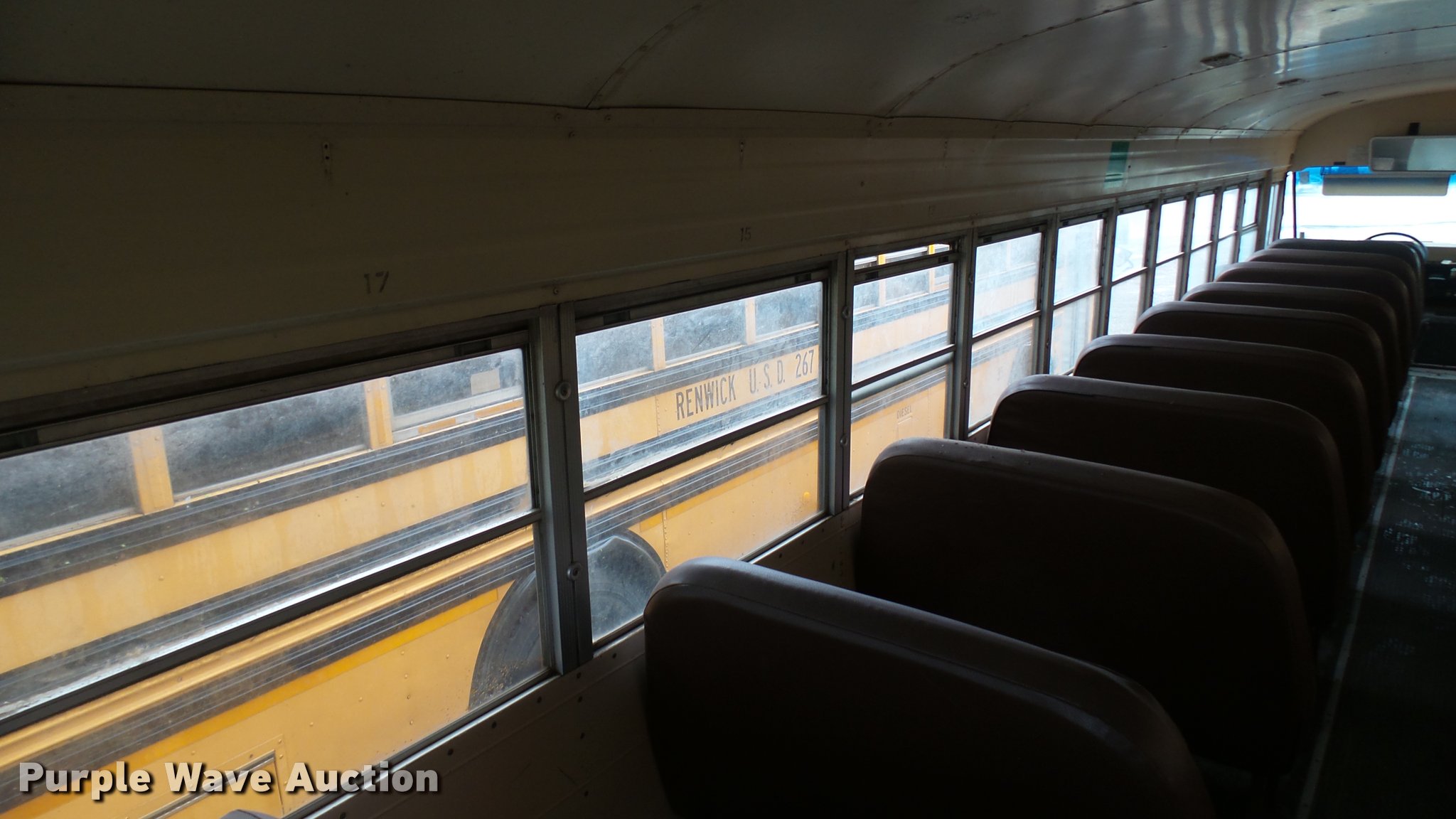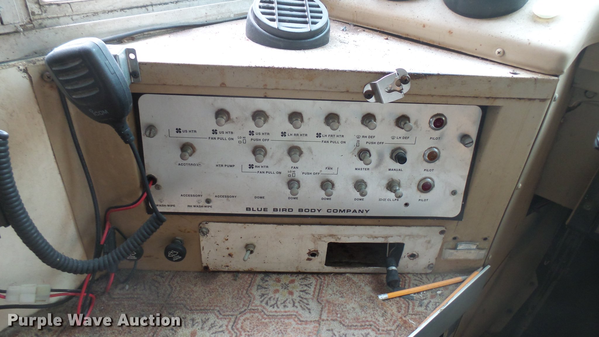 Purple Wave is selling a used Bus in Kansas. This item is a 1991 International 3800 Blue Bird school bus with the following: 79,118 miles on odometer, International DT360 5.9L L6 diesel engine, Automatic transmission, Heat, Vinyl interior, 60 passenger capacity, Light package, 11R22.5 tires, Rust, Weak battery