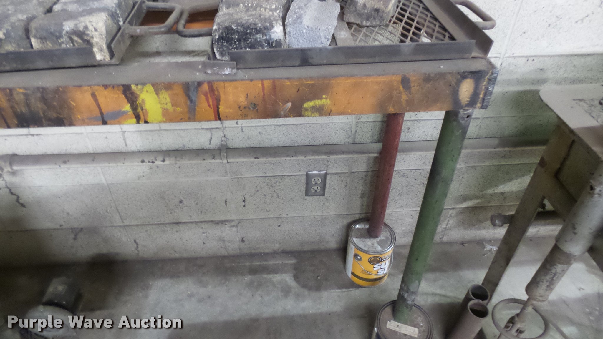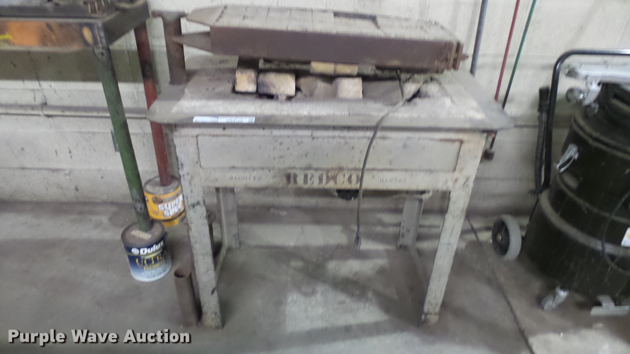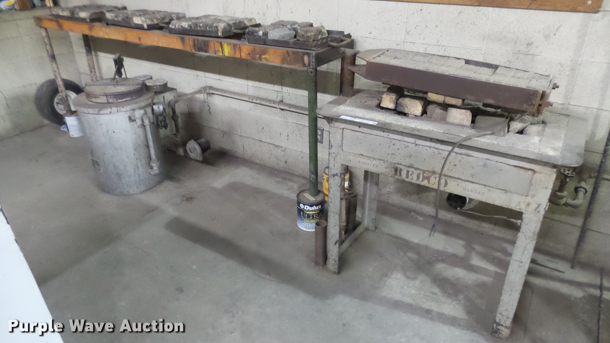Purple Wave is selling a used Tools in Kansas. This item is a Blacksmith equipment with the following: Redco burner/forge, Gas, 22" x 38" x 36"H, Johnson furnance/smelter, Gas, Bricks, Table, 103" x 16" x 32"