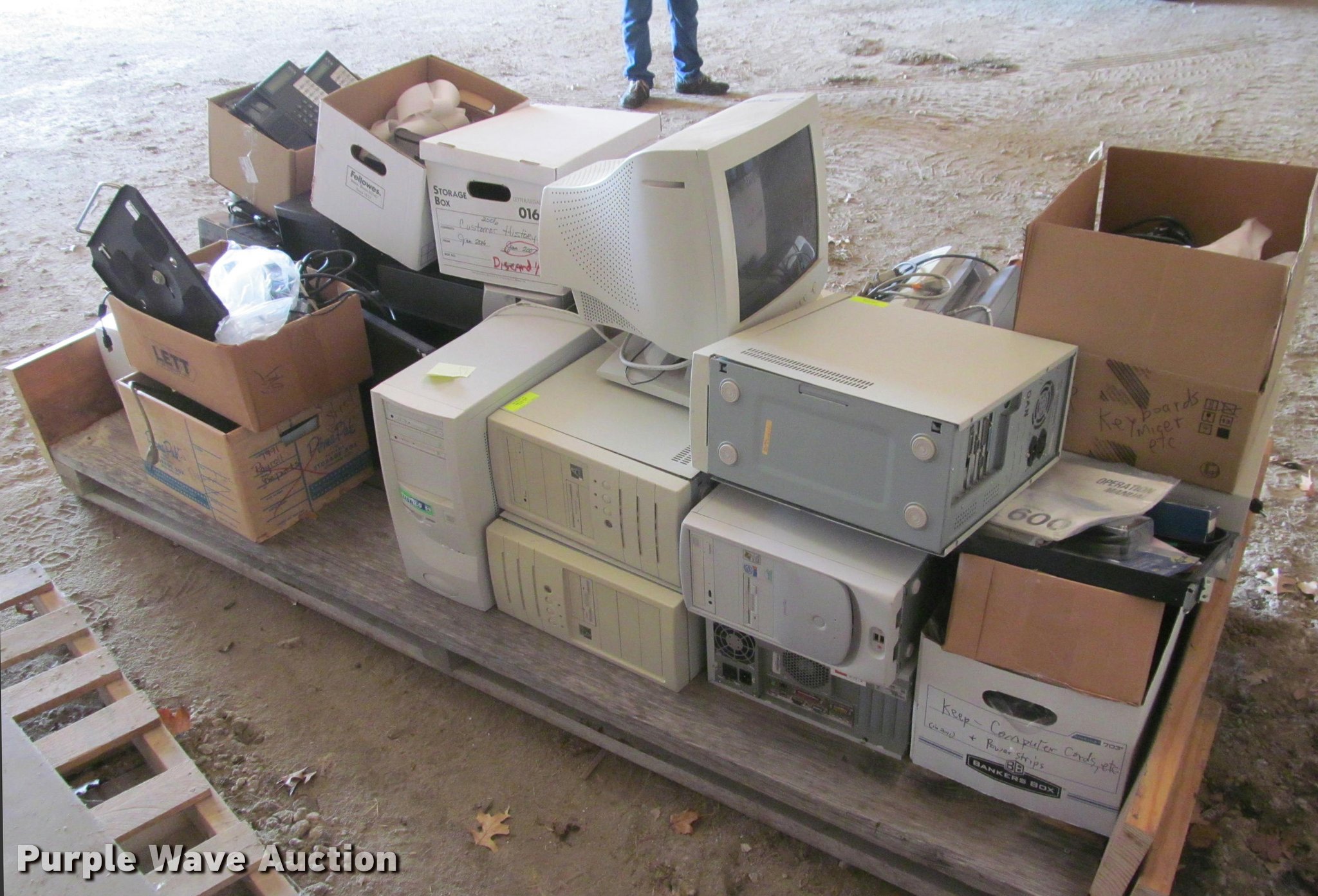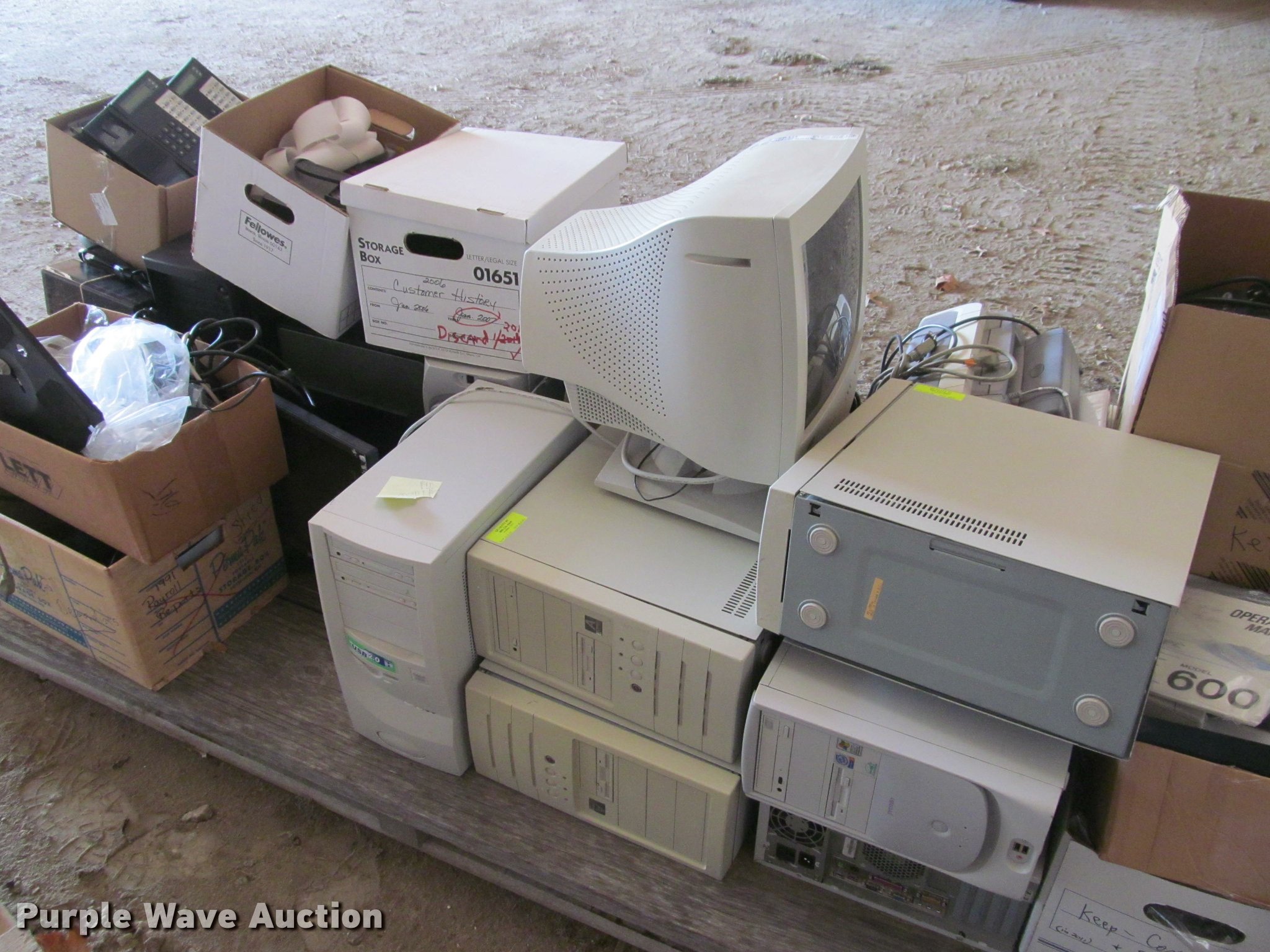 Purple Wave is selling a used Electronics in Kansas. This item is a Electronics with the following: Approximately six phones, Approximately 12 computers, Approximately five monitors, Motorola radio, (2) printers, Typewriter