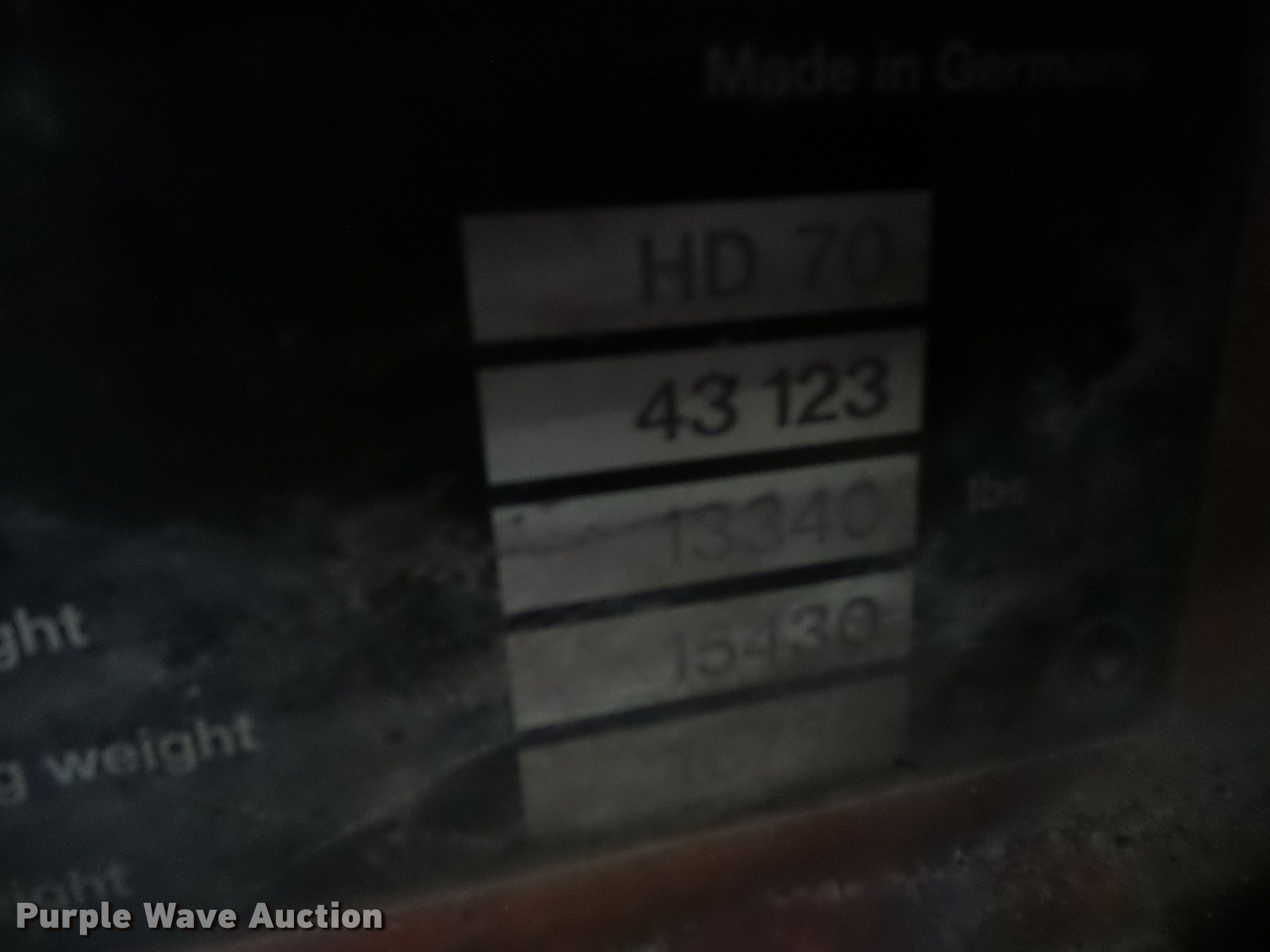 Purple Wave is selling a used Double Drum Roller Compactor in Missouri. This item is a 1999 Hamm HD70 double drum roller with the following: 2,776 hours on meter, Hatz diesel engine, Hydrostatic transmission, Canopy, 48"W drums, Vibratory system, Wiring harness issues, Unit has been partially disassembled, Non-operational unit, Serial 43123