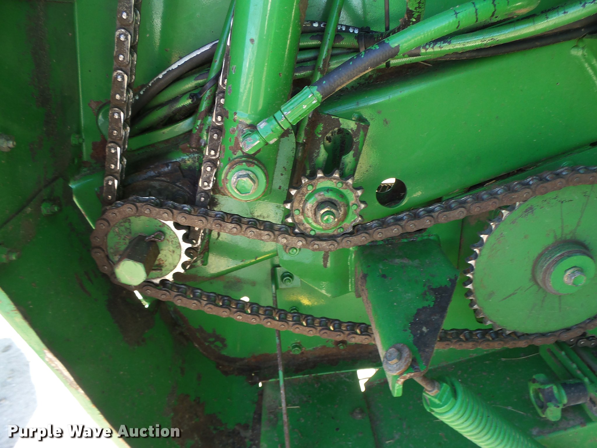 Purple Wave is selling a used Round Baler in Missouri. This item is a 2003 John Deere 567 round baler with the following: Approx 17,000 bales on counter, 5' x 6' bale capacity, 1000 PTO, 87" Mega Wide pickup, Hydraulic pickup lift, Gauge wheels, Twine tie or net-wrap, 31x13.5-15 tires, John Deere Bale Trak Plus monitor, Serial 10701, Pin hitch, Serial E00567X196798