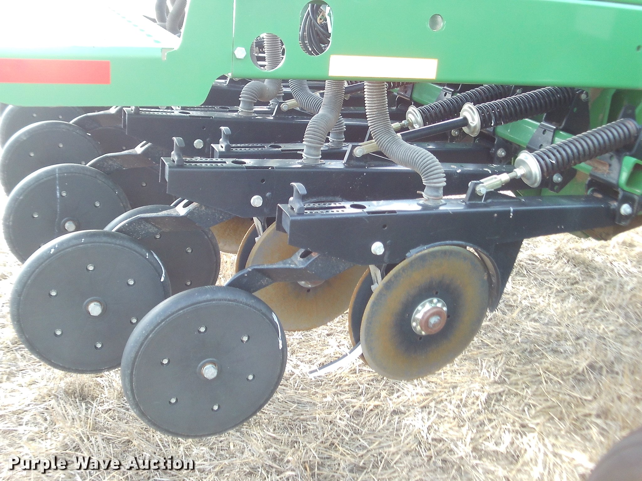 Purple Wave is selling a used Grain Drill or Seeder in Kansas. This item is a 2003 Great Plains 3S-3000361003 grain drill with the following: 30'W, 36 row units, 10" row spacing, Hydraulic wing fold, Bulk fill system, Ground meter drive, HD spring down pressure, Double disk openers, Single rubber closing system, Liquid fertilizer application knives, Pin hitch, (8) 9L-15SL drive/outside tires, Serial S1666