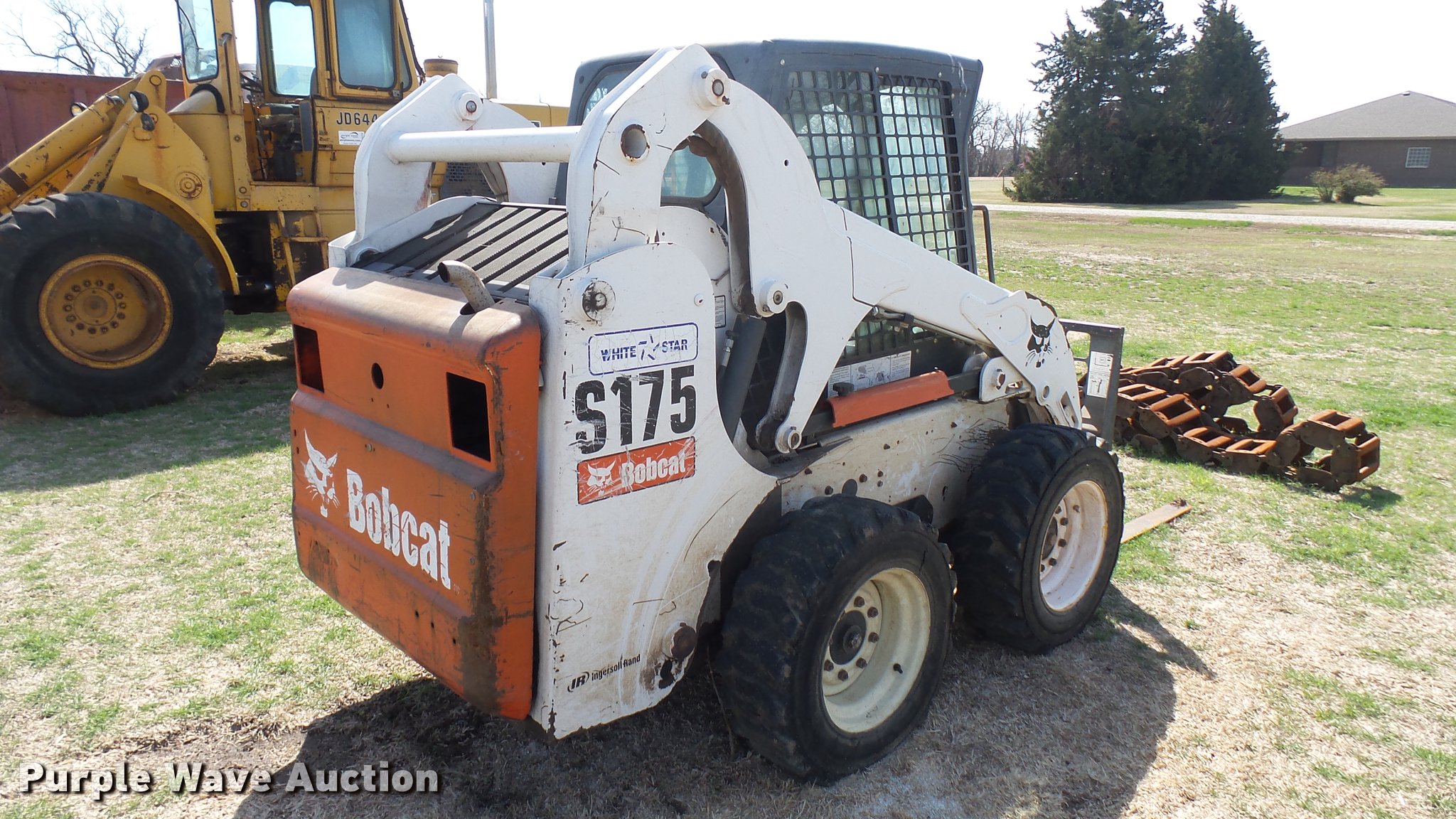 Purple Wave is selling a used Skid Steer Loader in Kansas. This item is a 2005 Bobcat S175 skid steer with the following: 1,863 miles on odometer, Four cylinder diesel engine, Hydrostatic transmission, Enclosed cab, AC and heat, Hand and foot controls, Work lights, High flow auxiliary hydraulics, 42"L forks, 10-16.5 tires, Front window missing, Serial 530111225