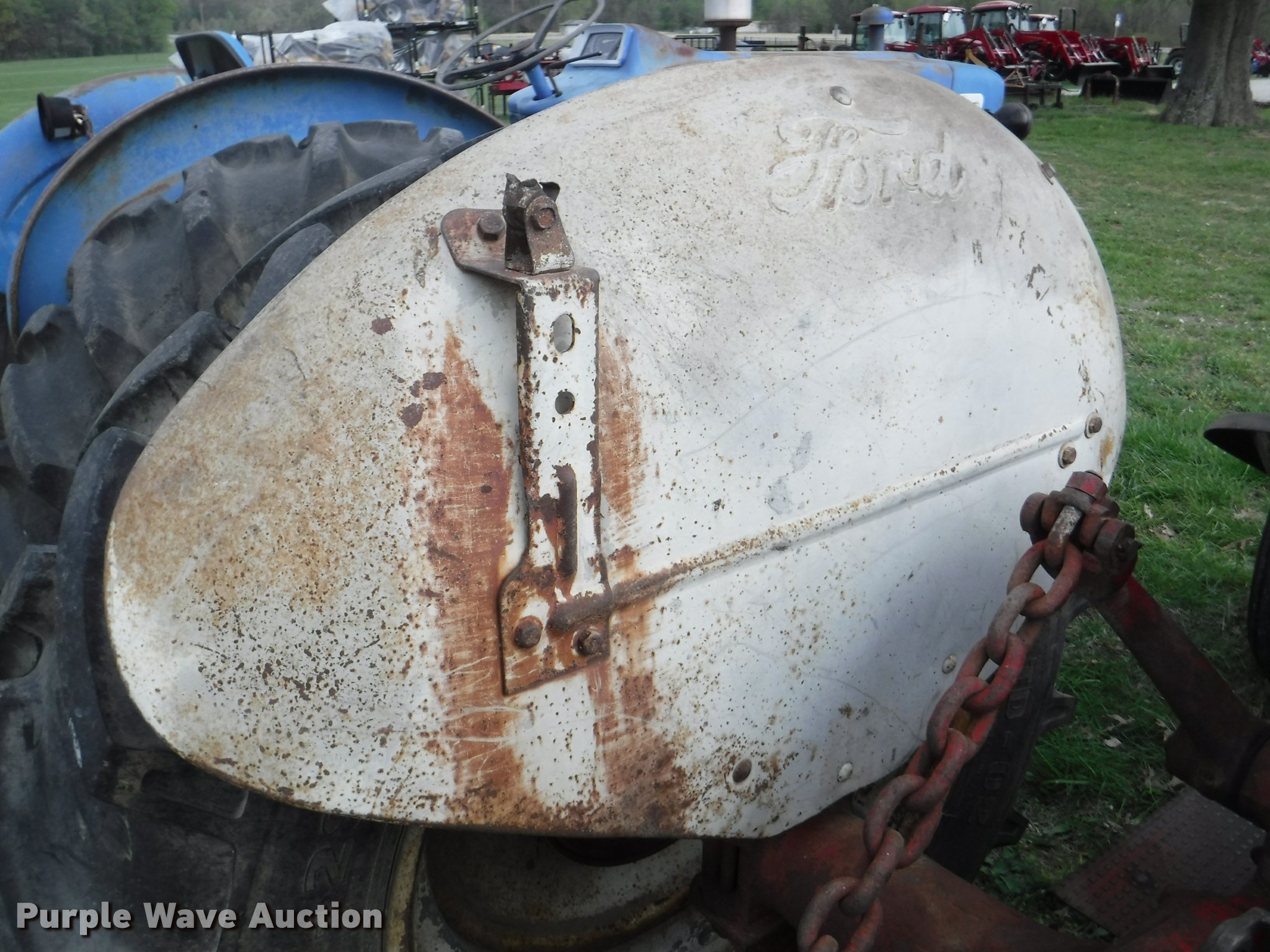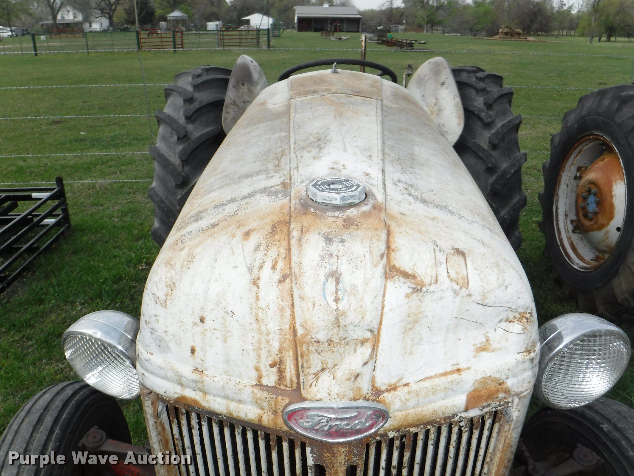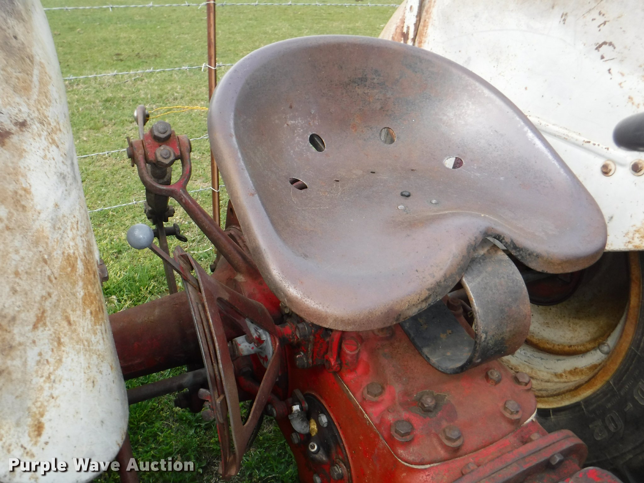 Purple Wave is selling a used Tractor in Kansas. This item is a 1952 Ford 8N tractor with the following: 2,237 hours on meter, Funk 7HNN-1002 six cylinder gas engine, Serial 62704, Unit has been converted, Manual transmission, 4F-1R gears, Front work lights, Three point, 540 PTO, 6.00-16 front tires, 14.9-28 rear tires, Muffler needs replaced