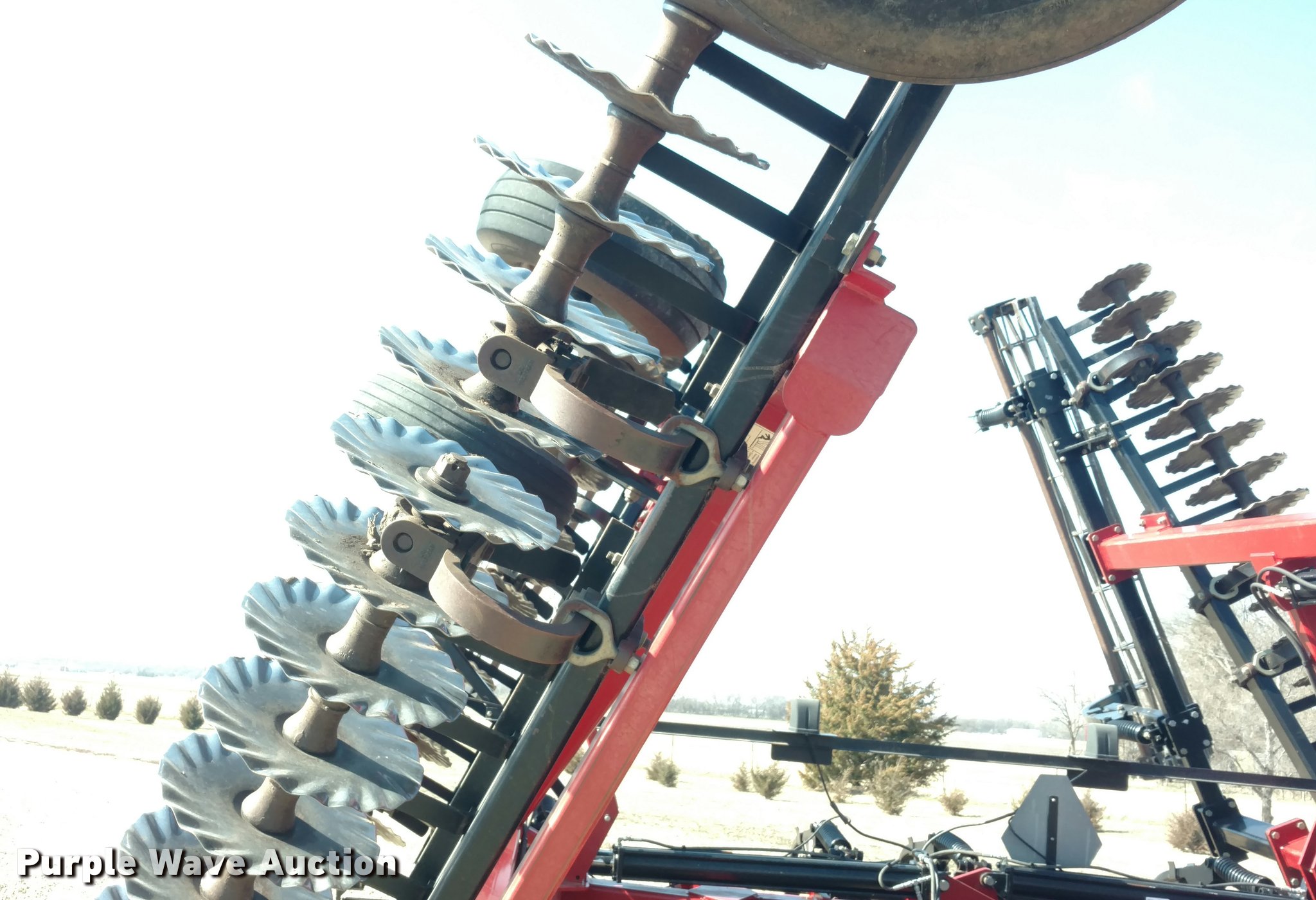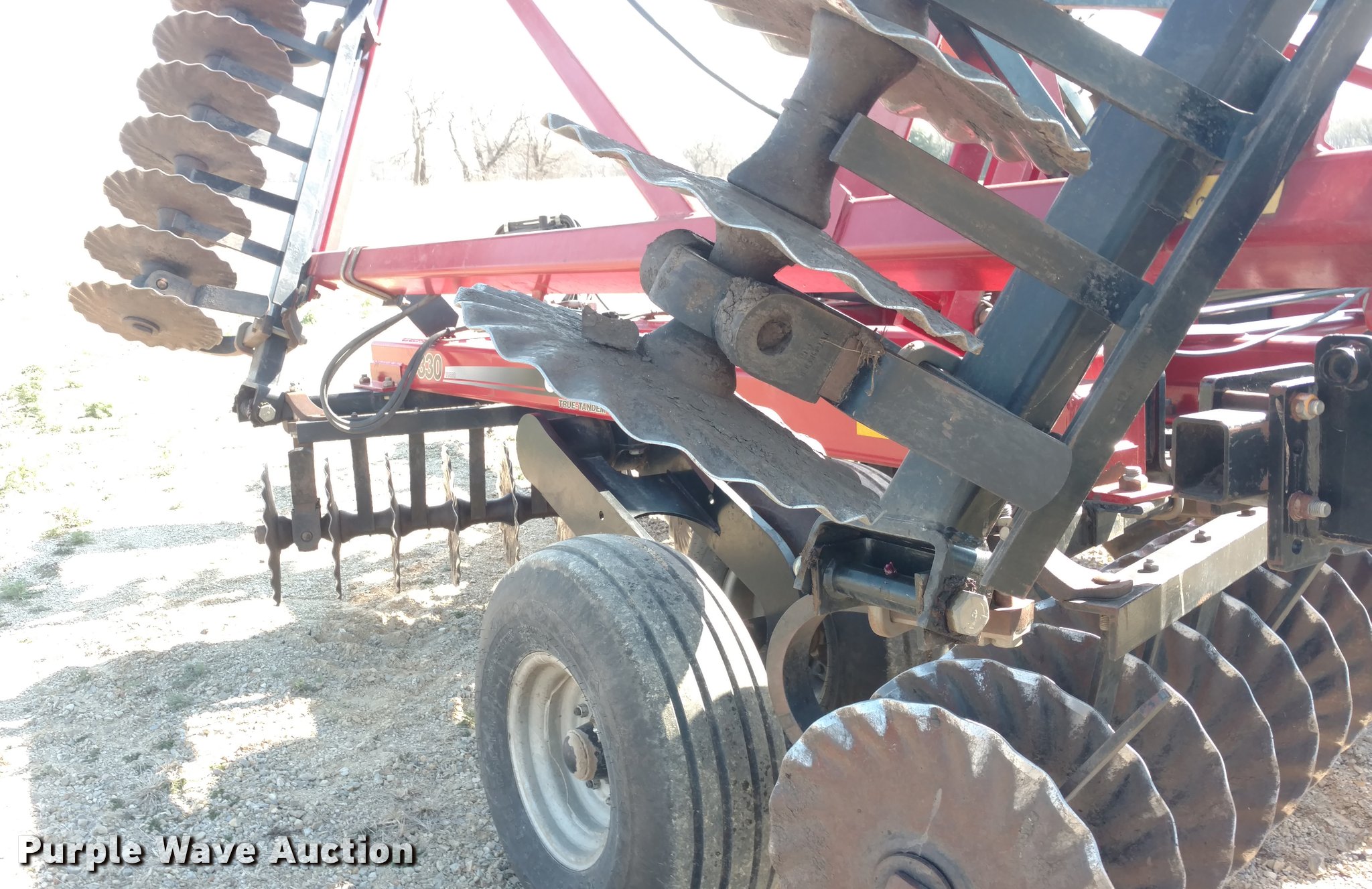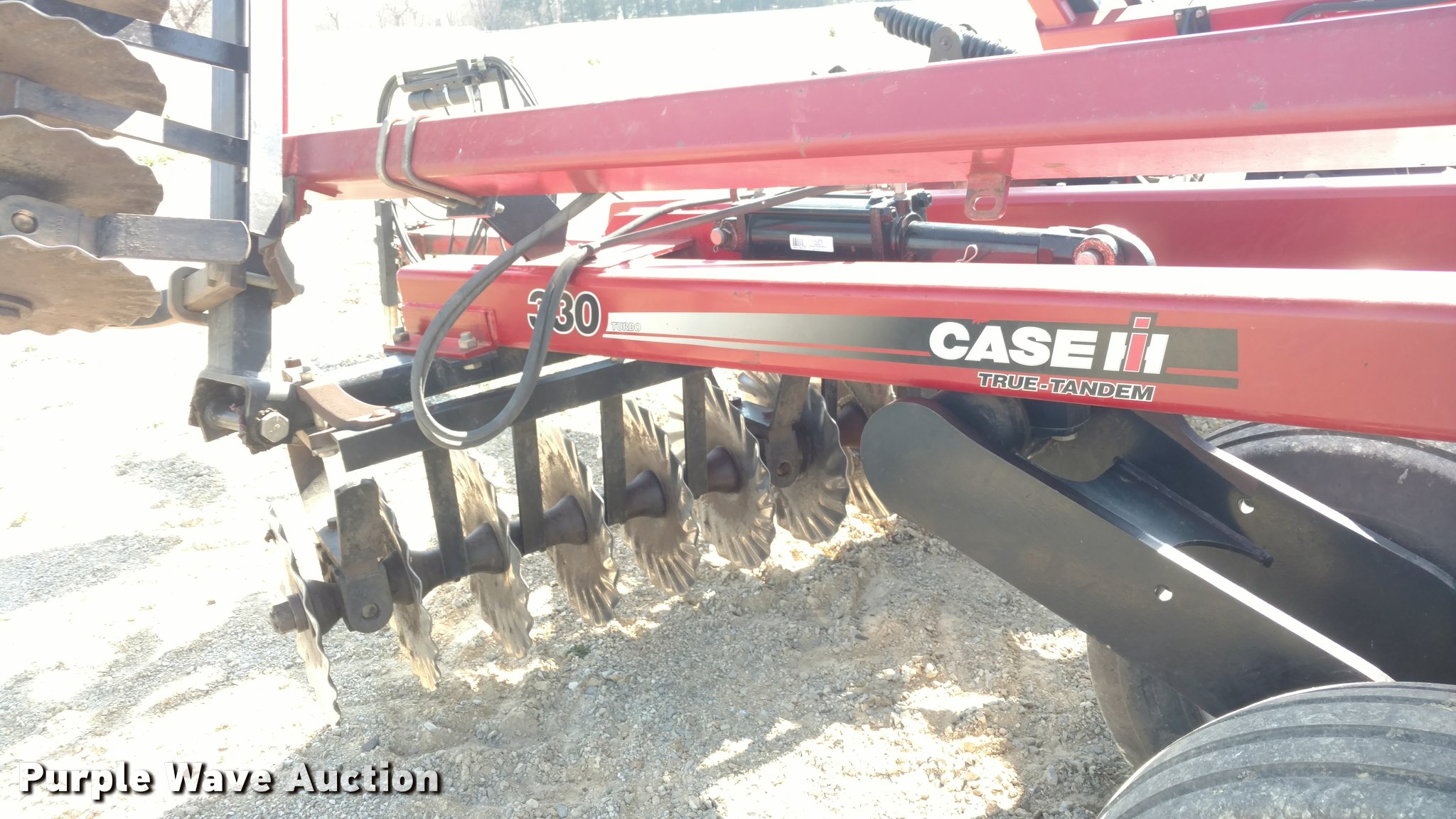 Purple Wave is selling a used Vertical Tillage in Kansas. This item is a 2009 Case IH 330 Turbo Till vertical tillage with the following: 33'W, 18.5" blades, 18 1/4" blades, Reel/rolling baskets, Hydraulic lift and fold, Transport lights, Pin/clevis hitch, True walking tandem axle, 12.5L-15Fi transport tires, Serial JFH0040779, Stock# 28906