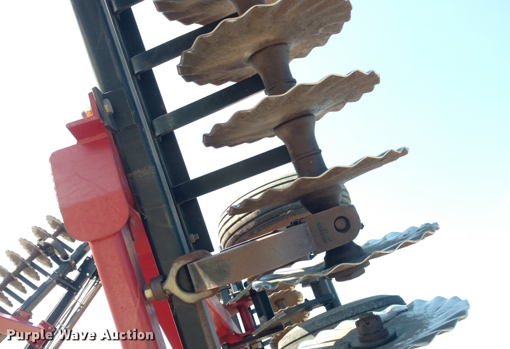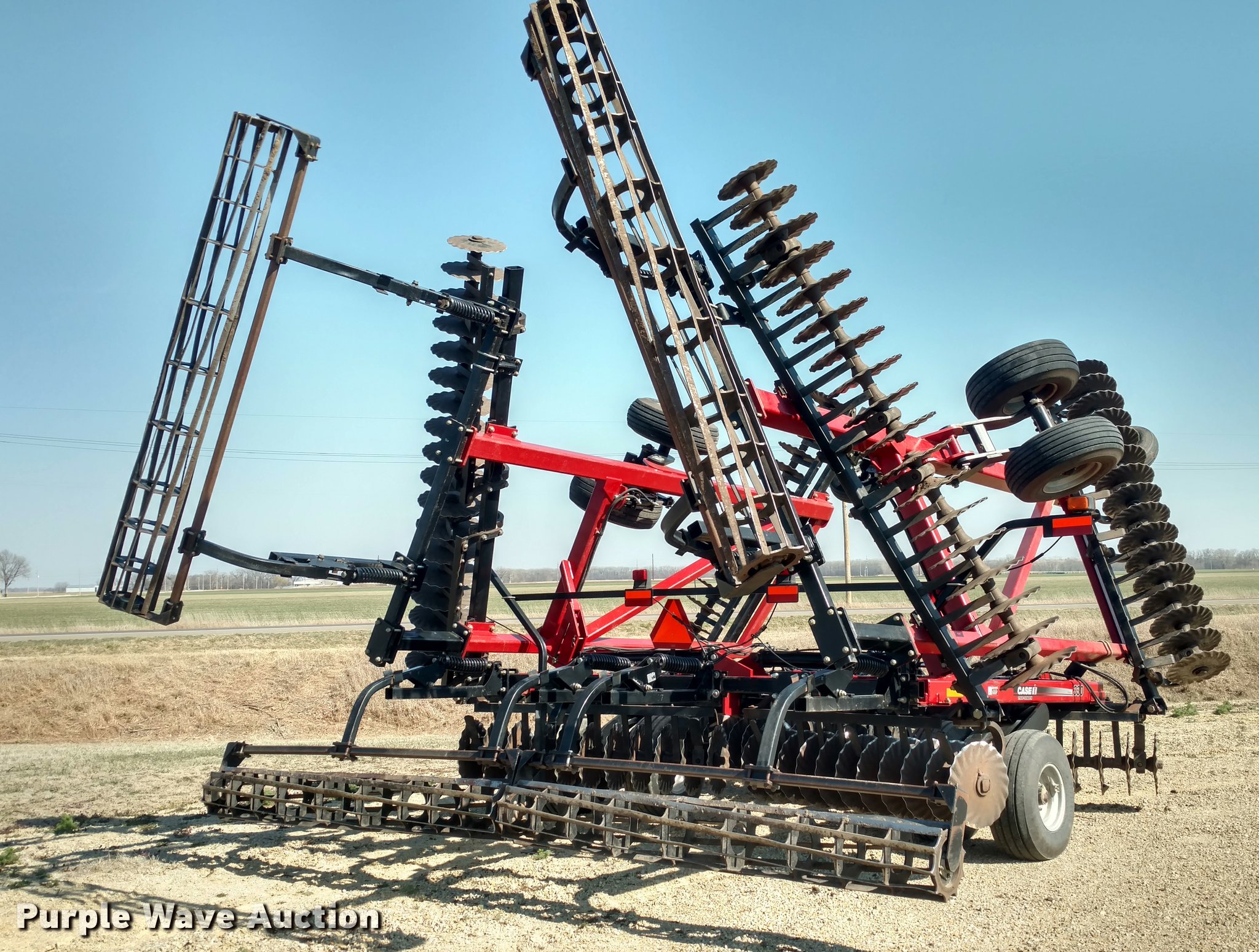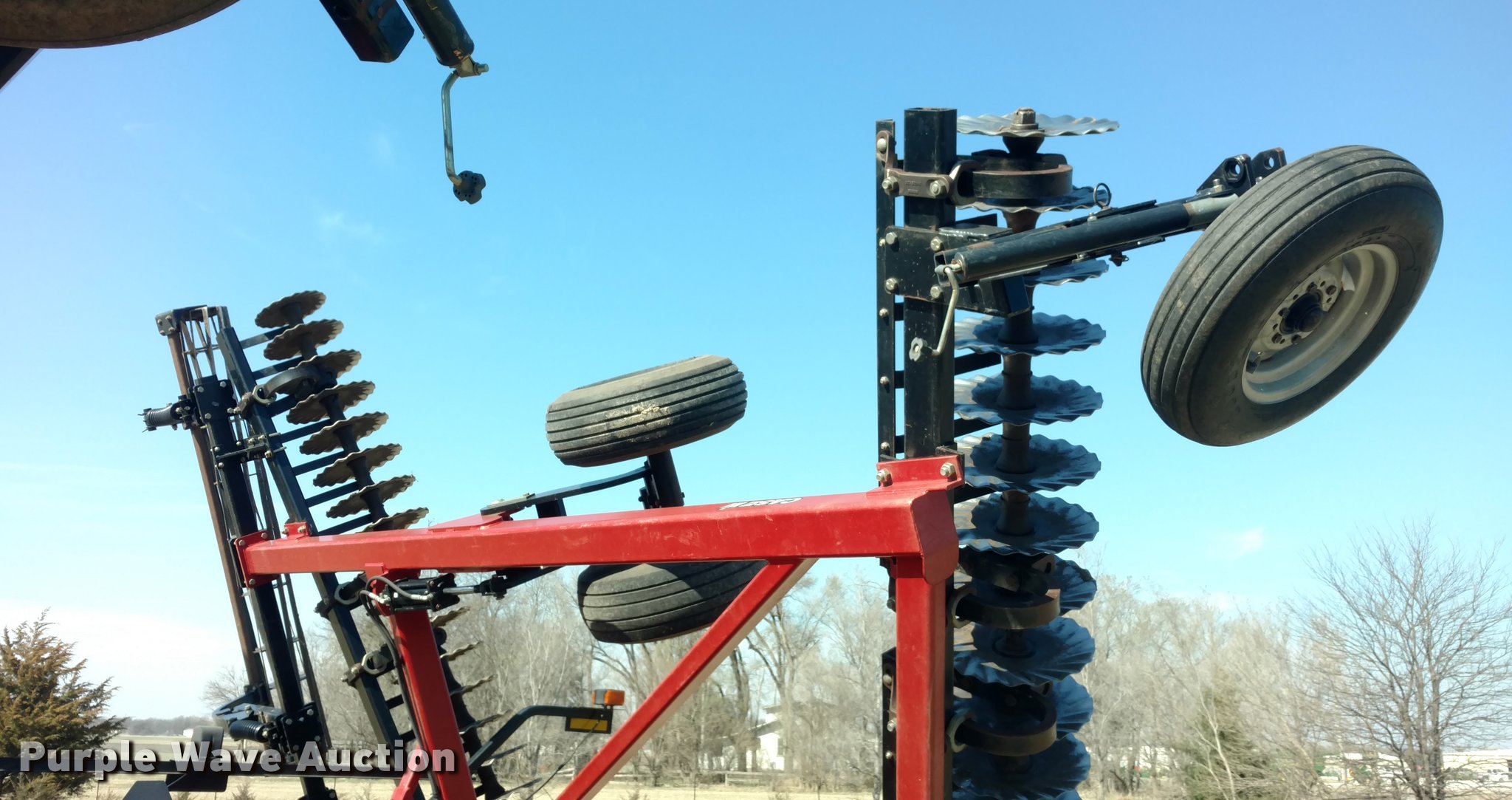 Purple Wave is selling a used Vertical Tillage in Kansas. This item is a 2009 Case IH 330 Turbo Till vertical tillage with the following: 33'W, 18.5" blades, 18 1/4" blades, Reel/rolling baskets, Hydraulic lift and fold, Transport lights, Pin/clevis hitch, True walking tandem axle, 12.5L-15Fi transport tires, Serial JFH0040779, Stock# 28906