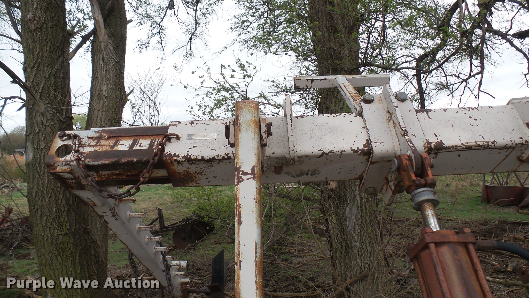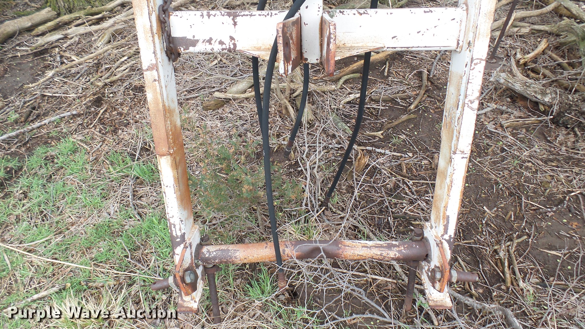 DewEze Bale Hugger 165 unroller. Hydraulic lift, Pin tab and crossbar damage, Serial BH-1322. Brown Family Farm - Open Inspection April 26 and May 2. Cheney, KS 67025
