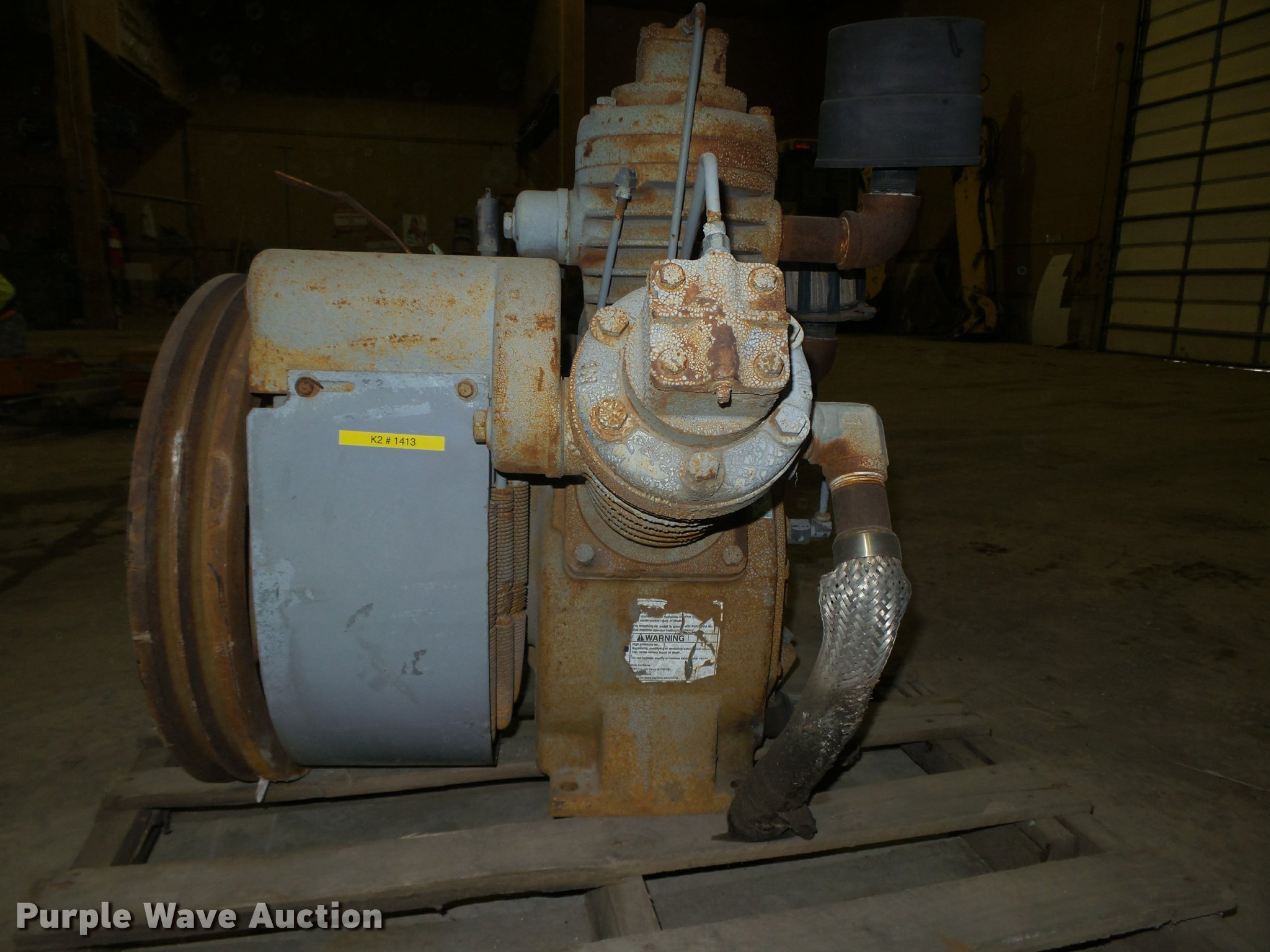Purple Wave is selling a used Air Compressor in Nebraska. This item is a Air compressor with the following: Three stage, 21" diameter pulley, Unknown operating condition, Unit# 1413