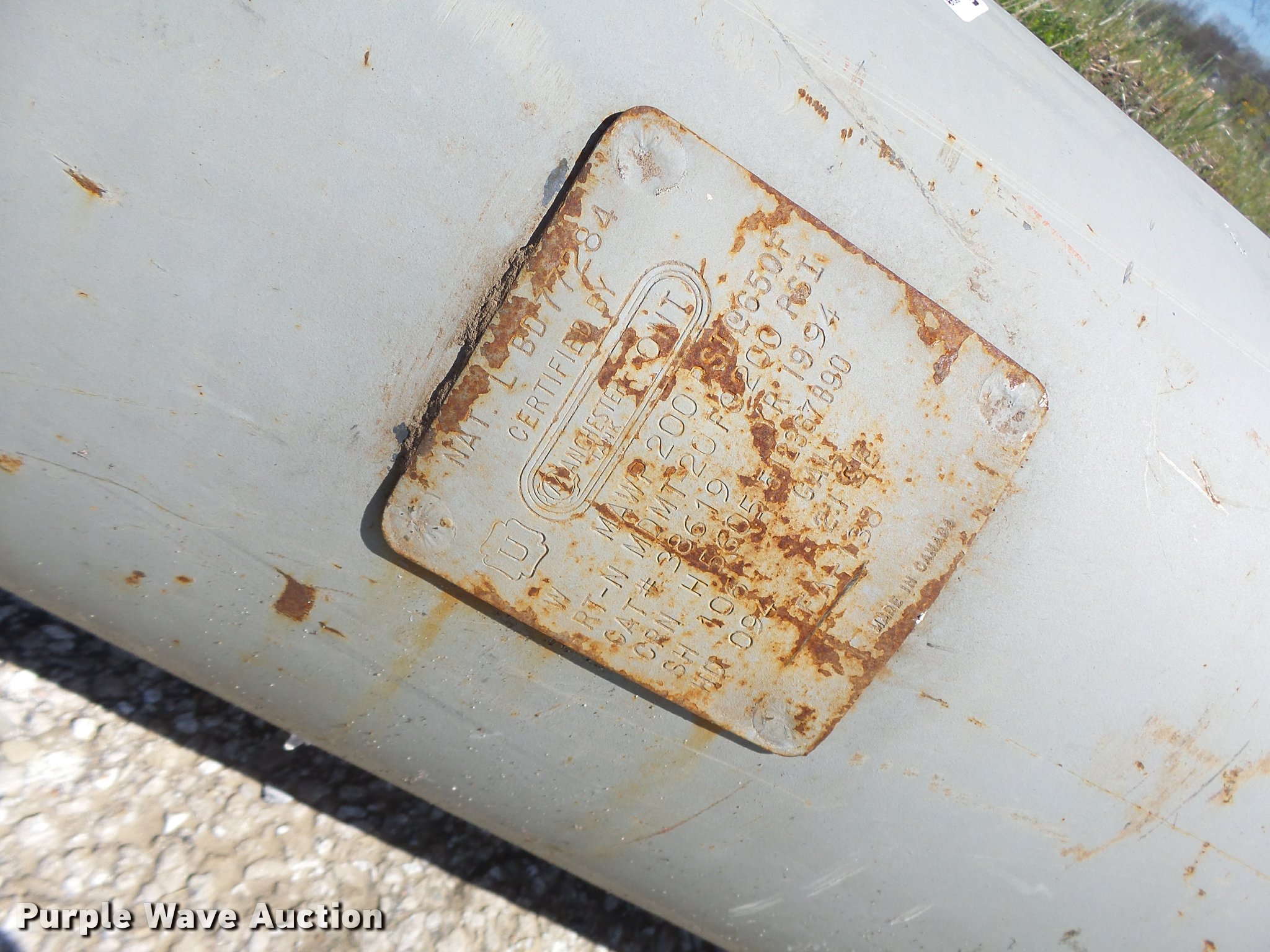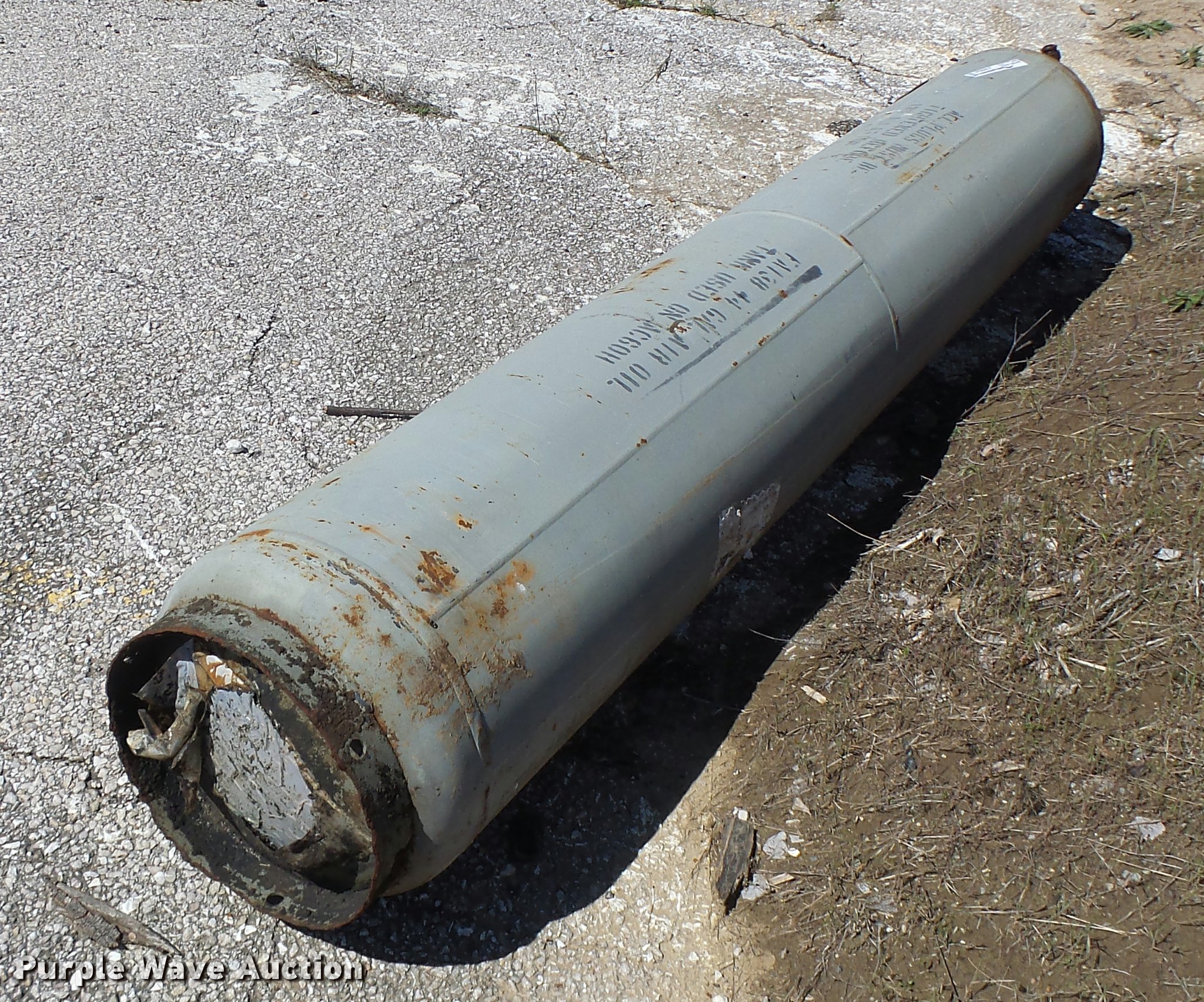 Purple Wave is selling a used Tanks in Missouri. This item is a 1994 Manchester pressure tank with the following: Approximately 7'L, 200 psi capacity