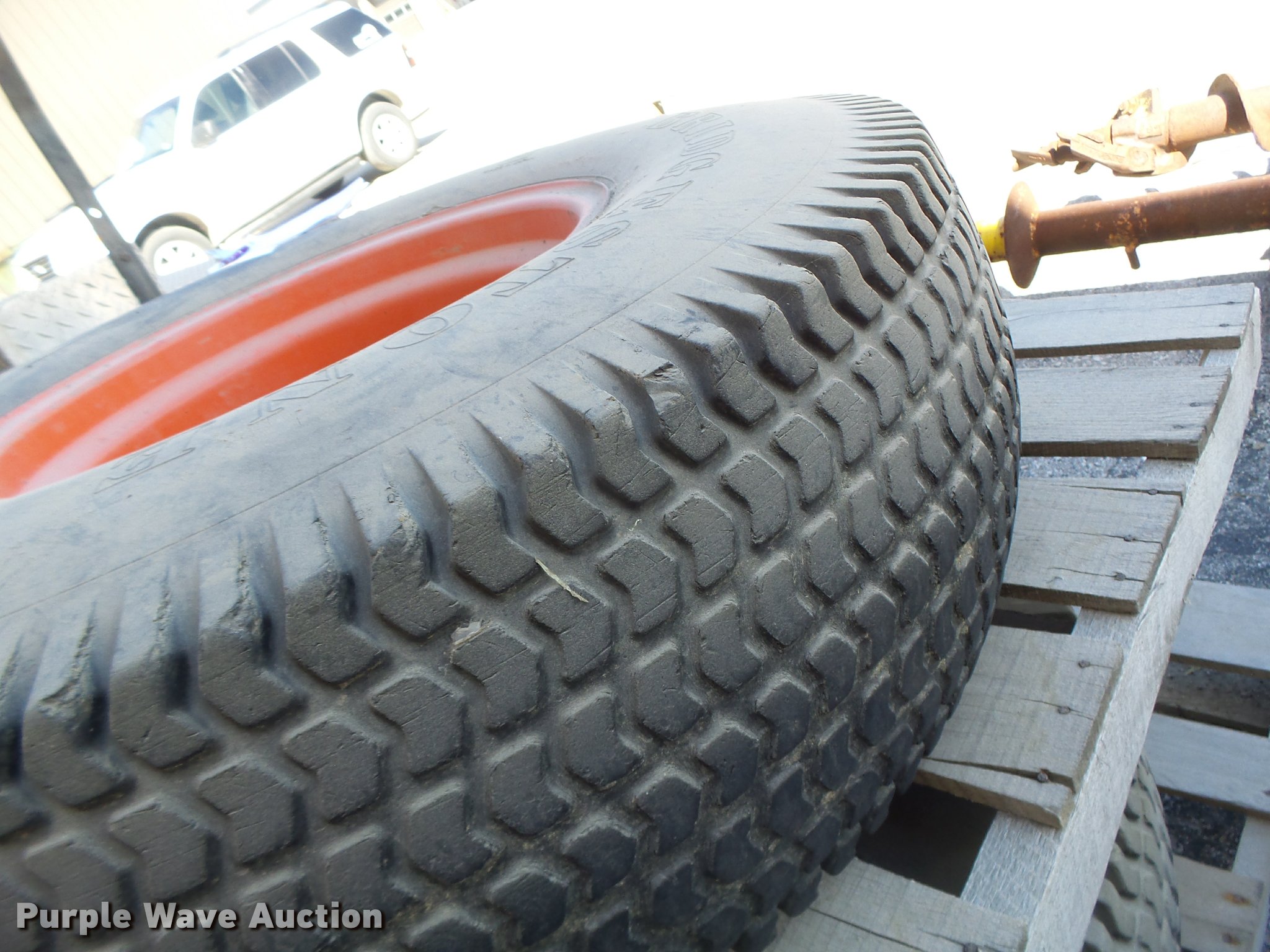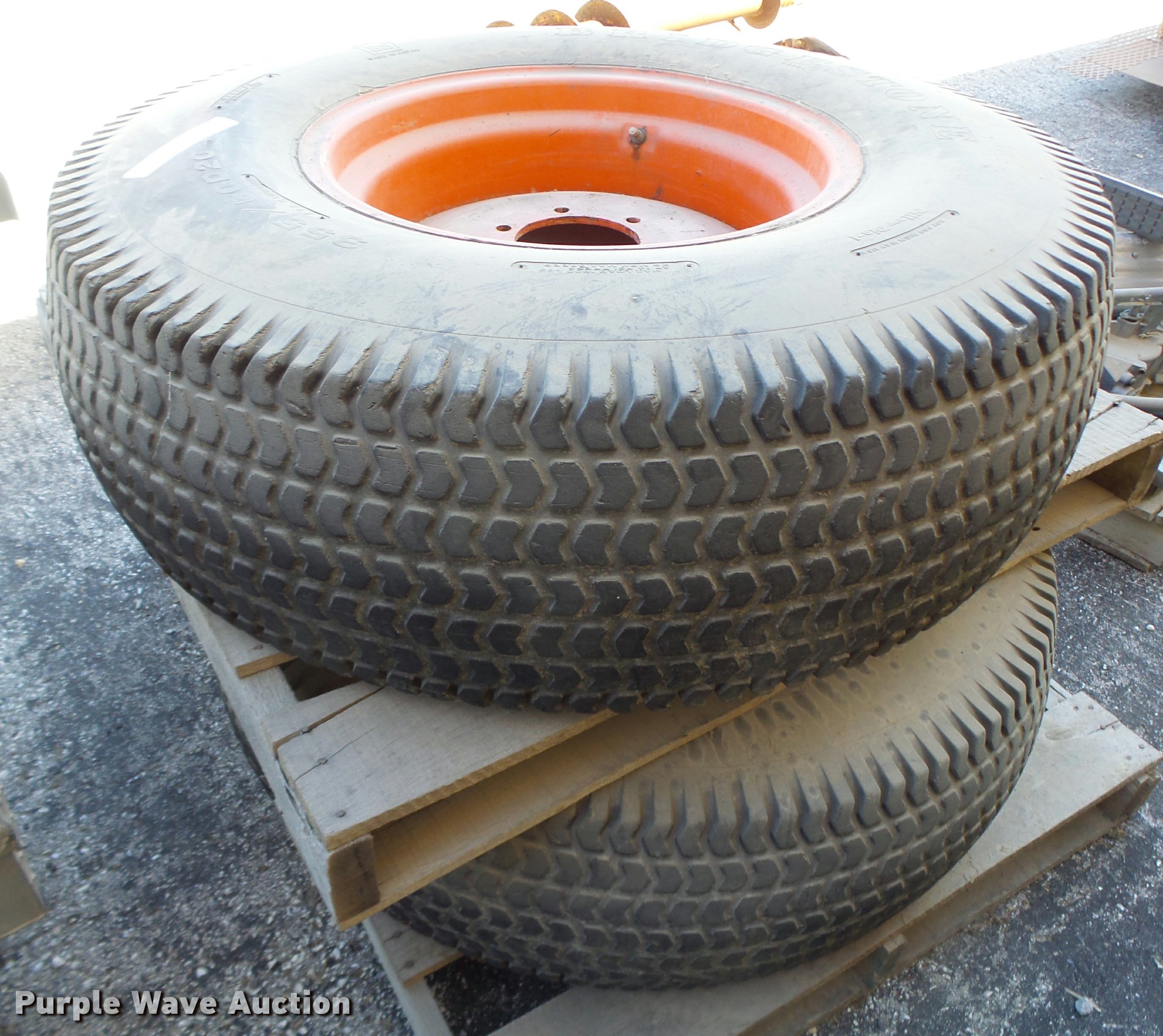 Purple Wave is selling a used Industrial Tires or Tracks in Missouri. This item is a (2) Bridgestone 355/80D20 tires with the following: Six hole wheels, Removed from a Kubota tractor