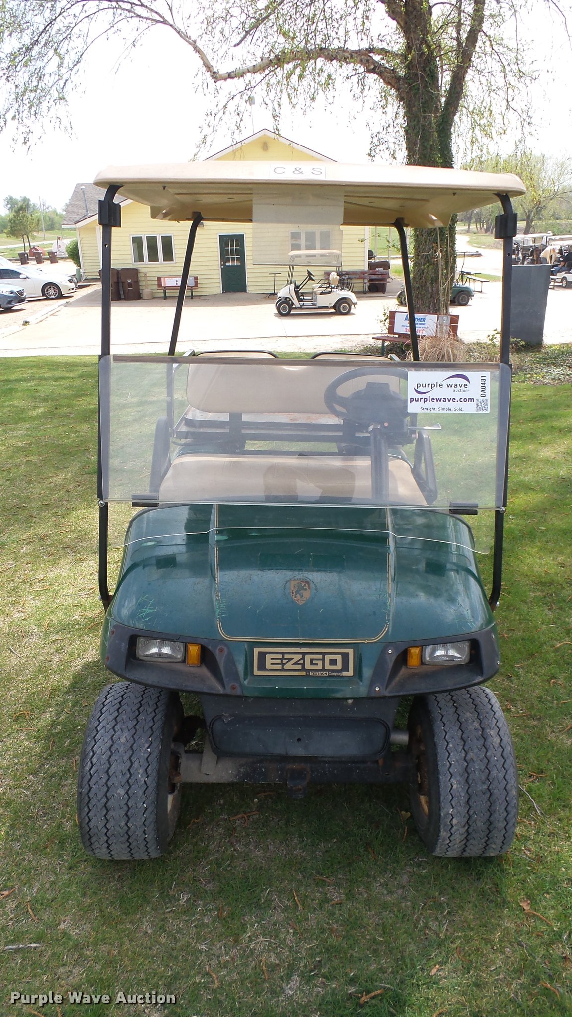 Purple Wave is selling a used Golf Cart in Kansas. This item is a EZ GO golf cart with the following: Forward and reverse, Canopy, Four person capacity, Rear seat cushions removed, Lights, Battery charger, 18 x 8.50-8 tires, Serial 2380230