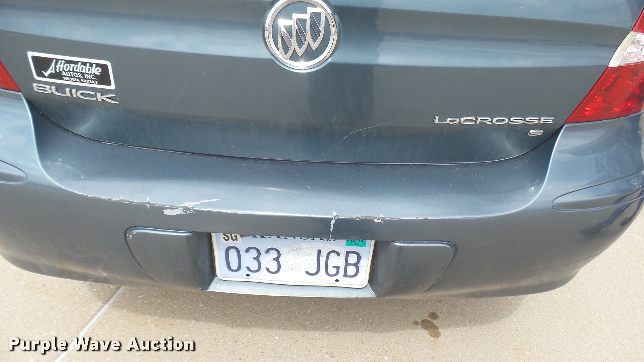 Purple Wave is selling a used Passenger Vehicle in Kansas. This item is a 2006 Buick LaCrosse with the following: 175,941 miles on odometer, 3.6L V6 DOHC 24V gas engine, Automatic transmission, AC and heat, Tilt, Cruise, AM/FM/CD, Power windows, locks, mirrors, and seats, Leather interior, 225/55R17 tires, Engine runs rough, Windows cracked, Check engine light is on, Mirror broken, Headlight cracked, Possible operational issue