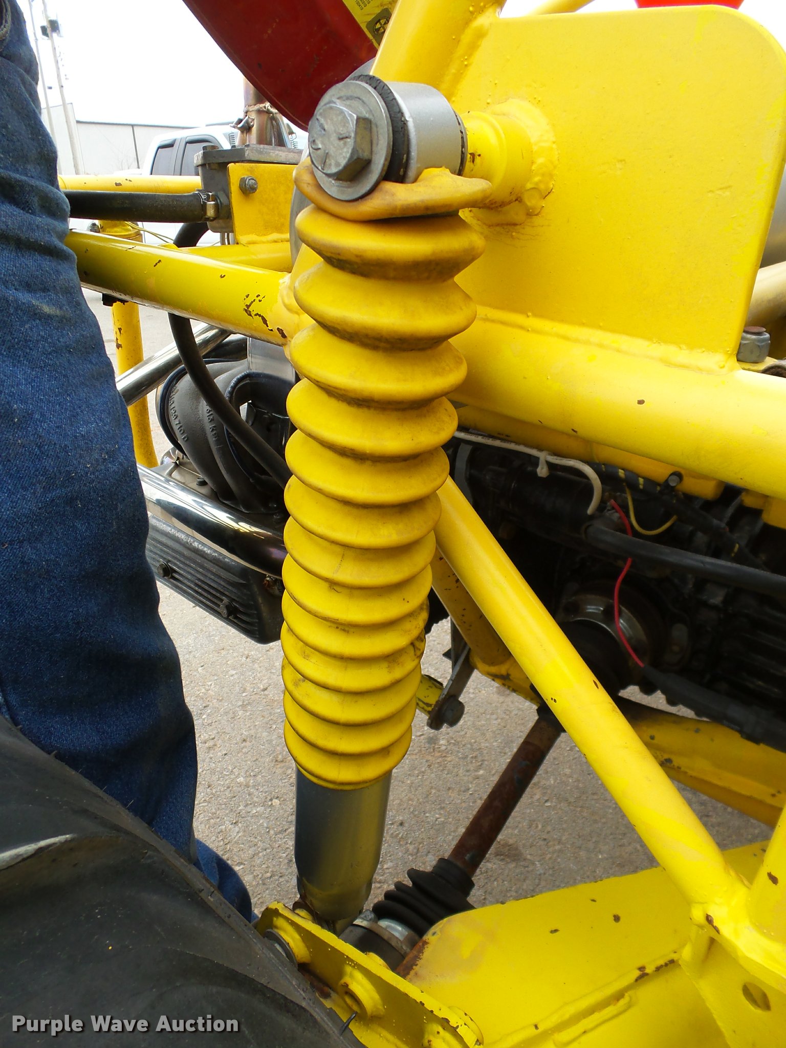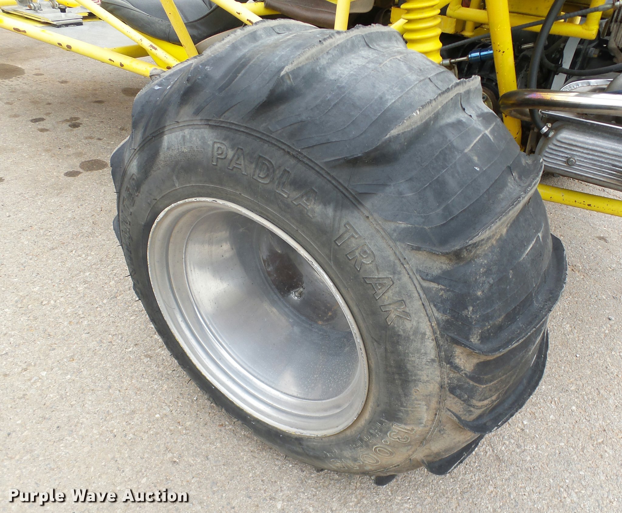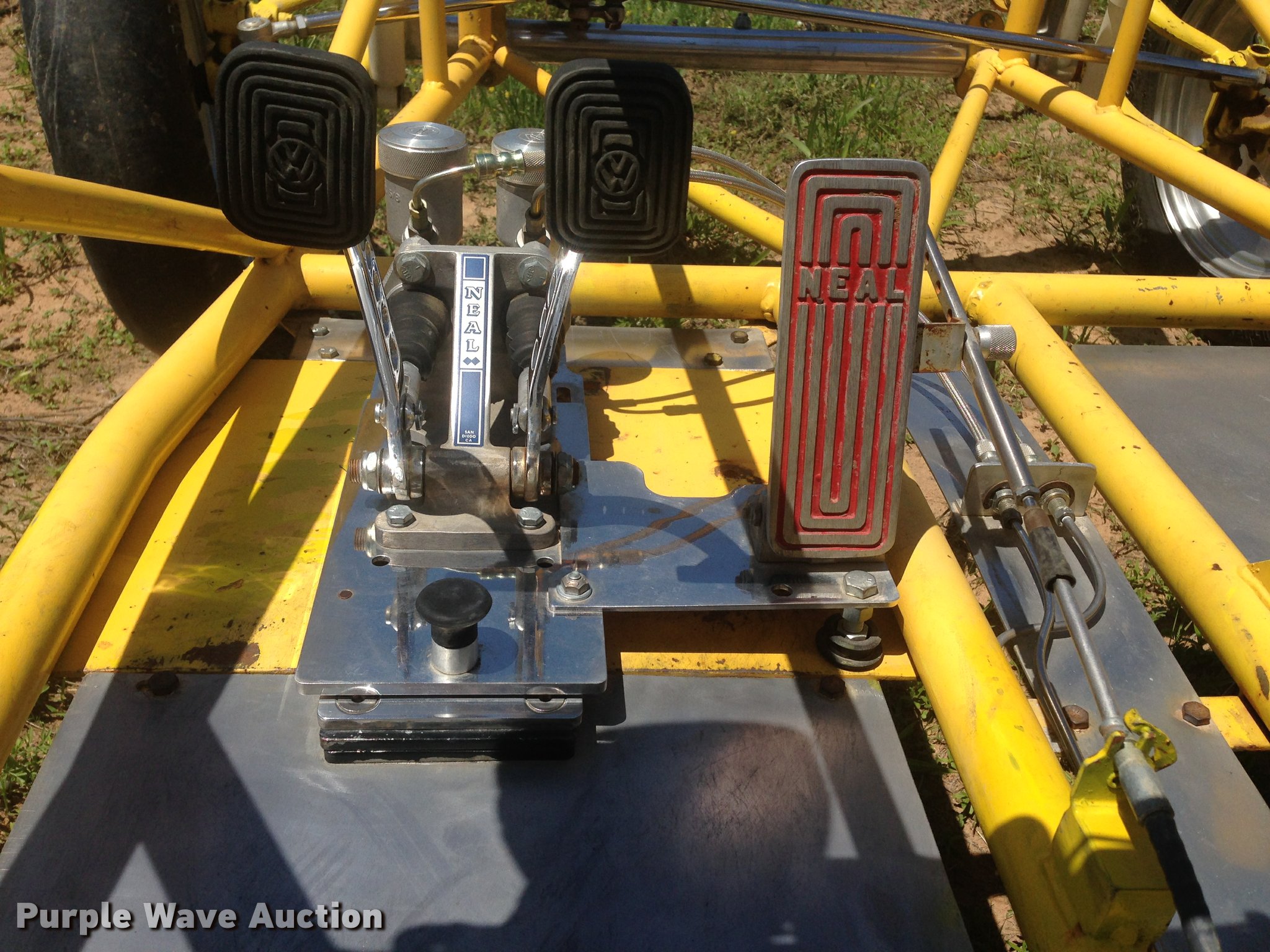 Purple Wave is selling a used Sporting Goods in Oklahoma. This item is a Shop built Volkswagen Sand Rail dune buggy with the following: 1,835 C.I.D. four cylinder gas engine, 110 HP, Volkswagen Rock Crusher four speed manual transmission, Four point harness, Adjustable pedals, 930 CV joints, External oil filter, Extended breather box for crank case, Running and brake lights, Tuned suspension, Turning brakes, Aluminum front axle, Spindle front axle, Aluminum wheels, Smoothie front tires, Sand Paddle rear tires