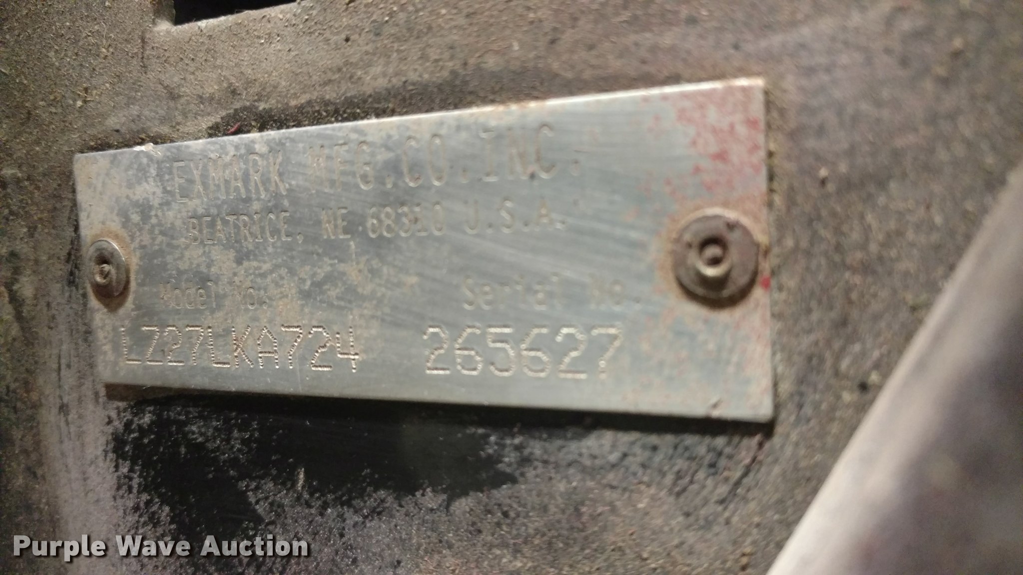Purple Wave is selling a used Commercial Turf Mower in Kansas. This item is a Exmark ZTR lawn mower with the following: Model LZ27LKA724, 3,026 hours on meter, 72" cut, Gas engine, Hydrostatic transmission, 24x12.00-12 NHS tires, Serial 265627