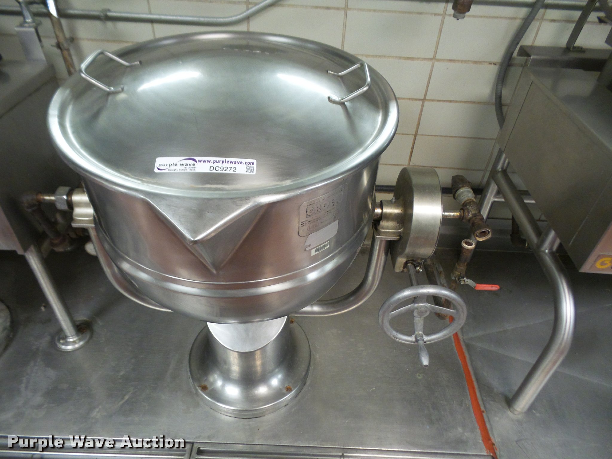 Purple Wave is selling a used Restaurant Equip. in Kansas. This item is a Groen D30 direct steam kettle with the following: 30 gallon capacity, Tilting, Serial 11415