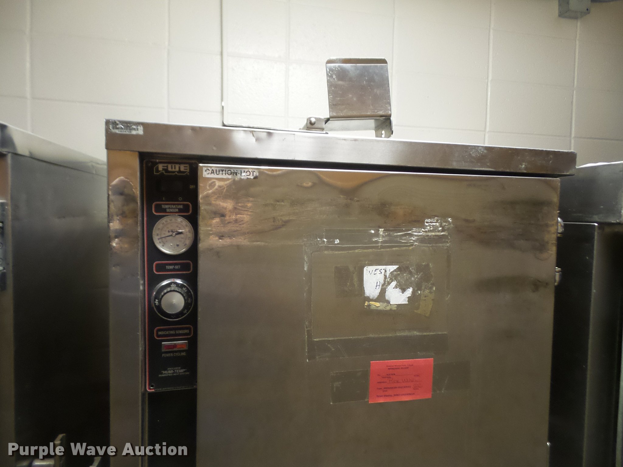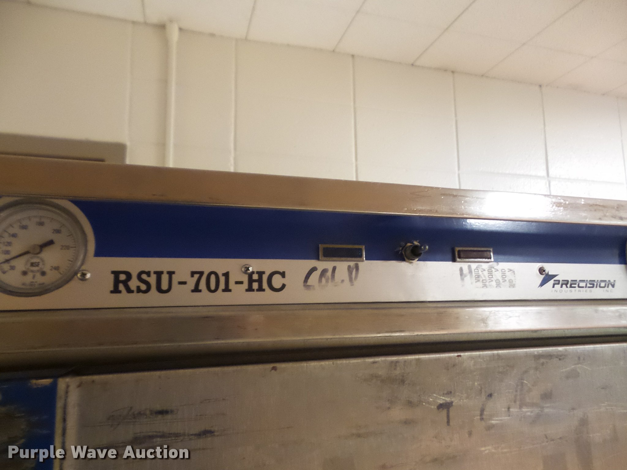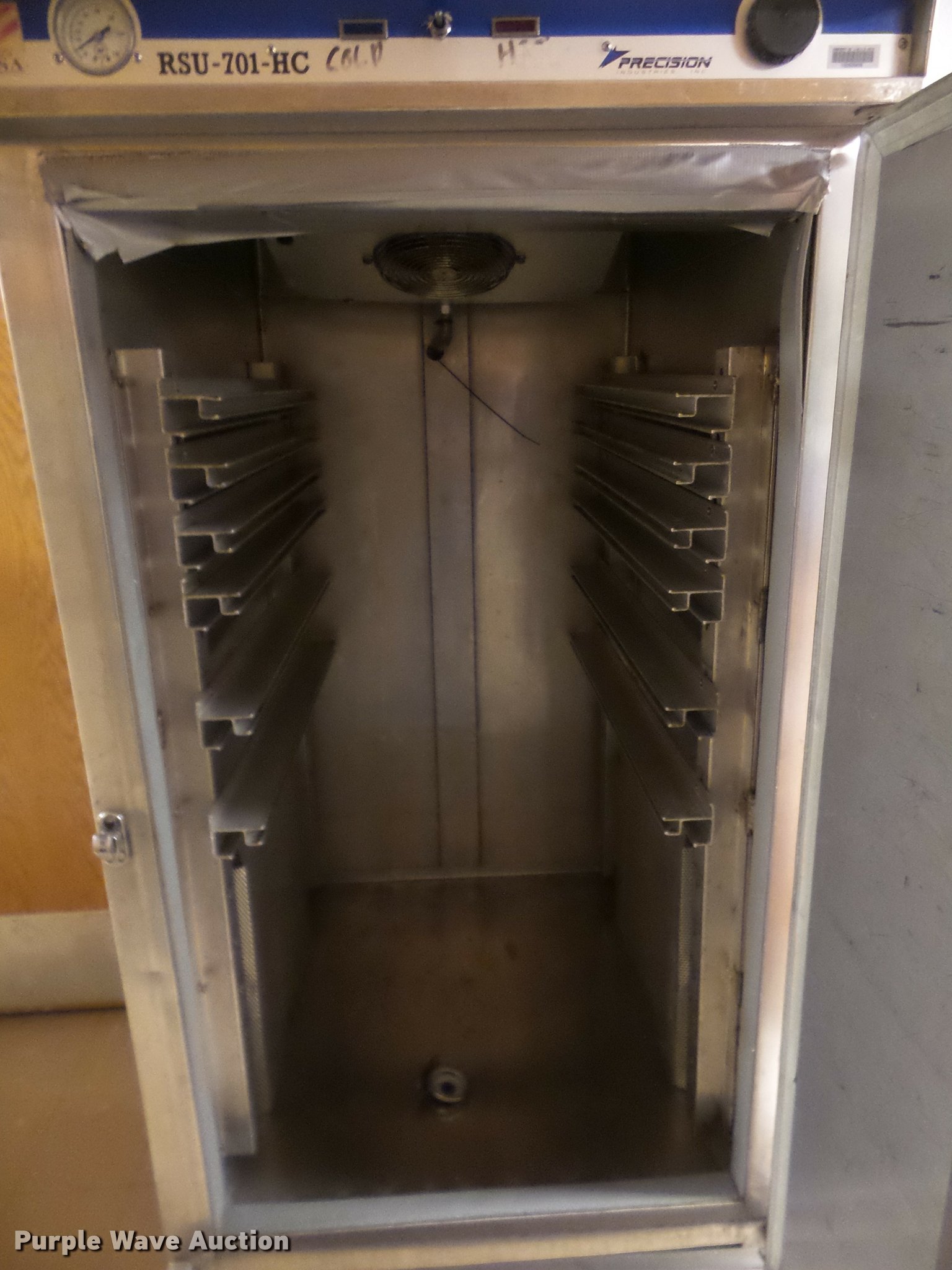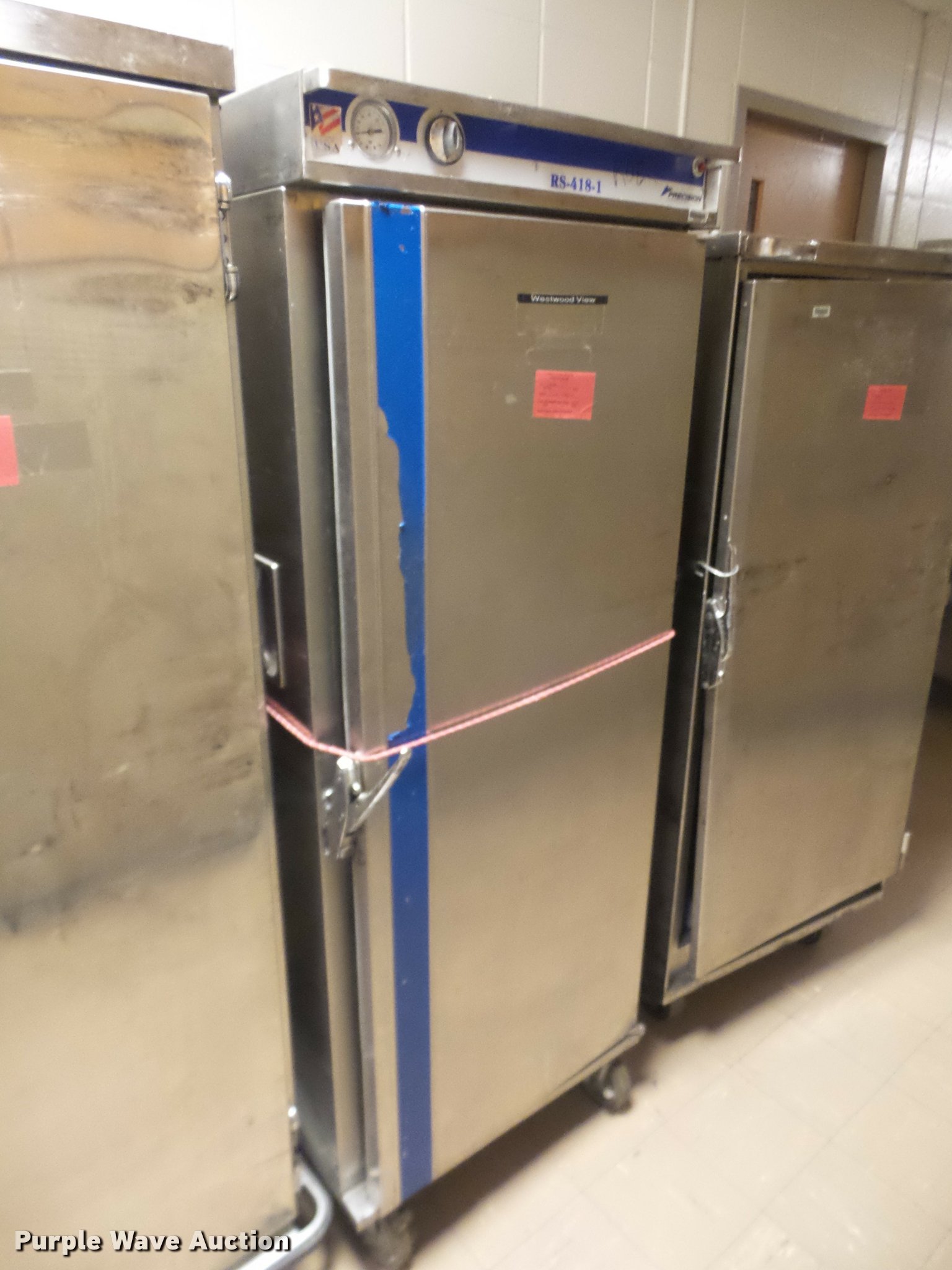 Purple Wave is selling a used Restaurant Equip. in Kansas. This item is a (8) food warming carts with the following: Precision RSV-401, 29"W x 33"D x 65.5"H, Precision RSV-701-HC, Hot or cold, 29"W x 35"D x 71"H, Precision RS-418-1, 29.5"W x 35"D x 68"H, (4) FWE warming carts, 28"W x 31"D x 69"H, Unknown brand, 29"W x 33.5"D x 64.5"H, Some damage, Some door hinges broken, Latches will not latch, Additional racking brackets