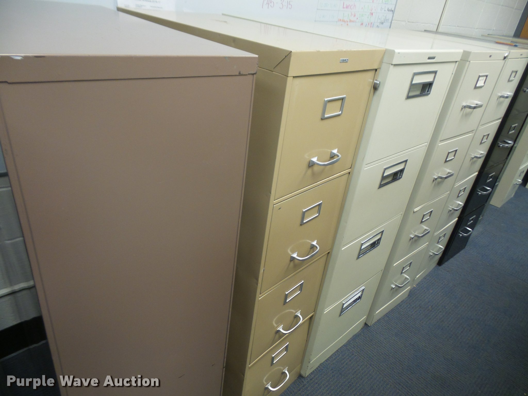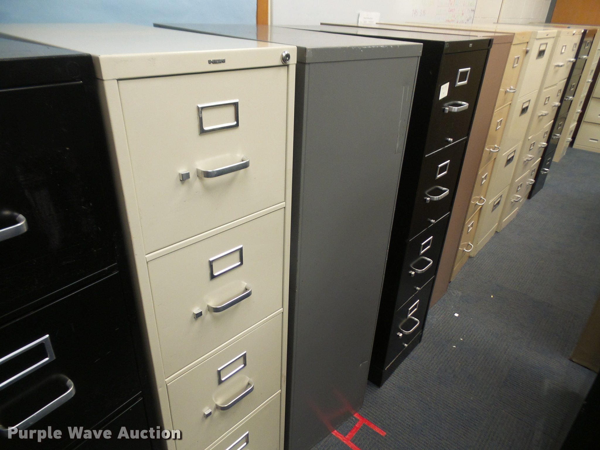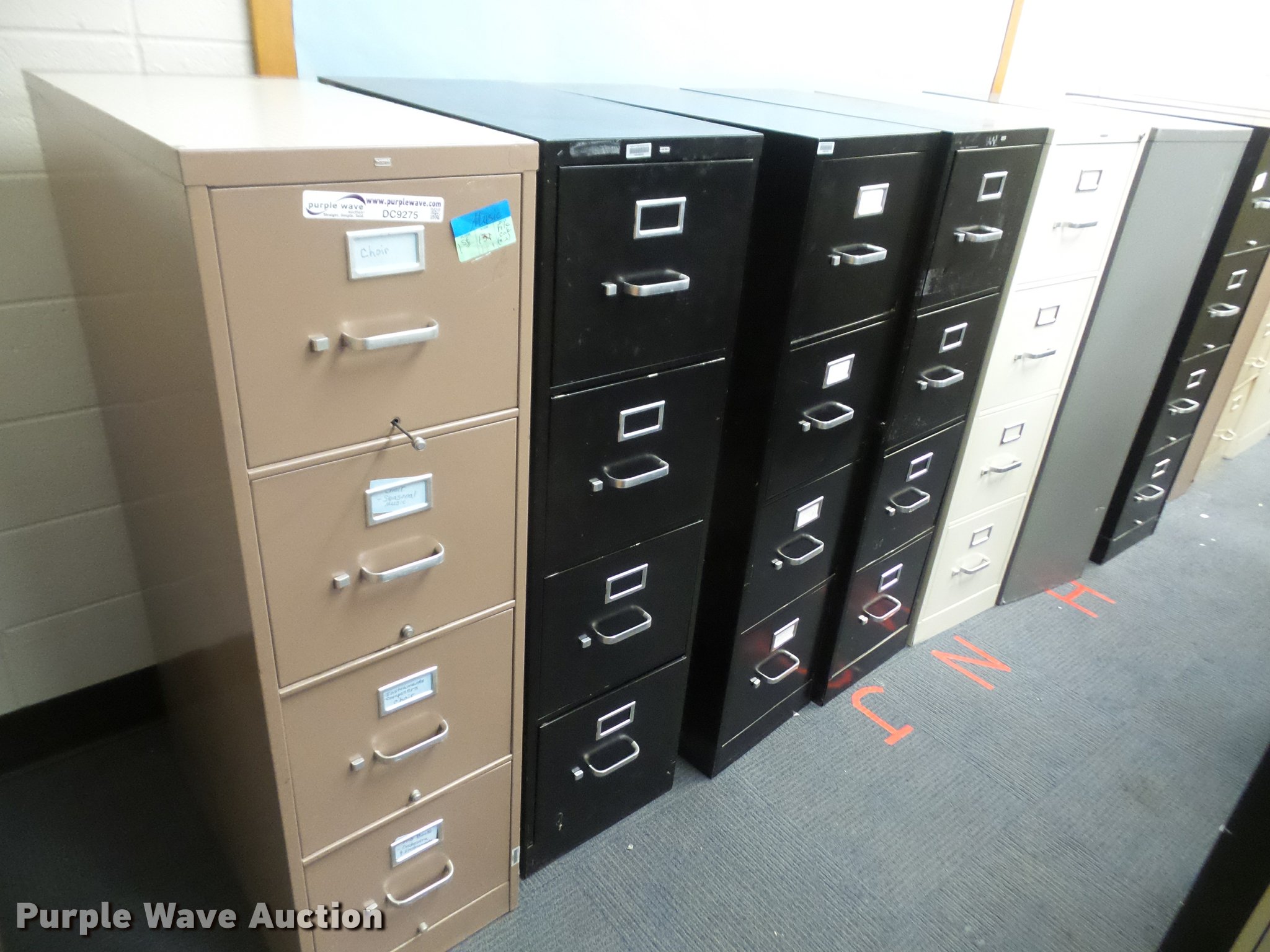 Purple Wave is selling a used Office Supplies and Equip. in Kansas. This item is a (17) four drawer letter filing cabinets with the following: Unit# 120