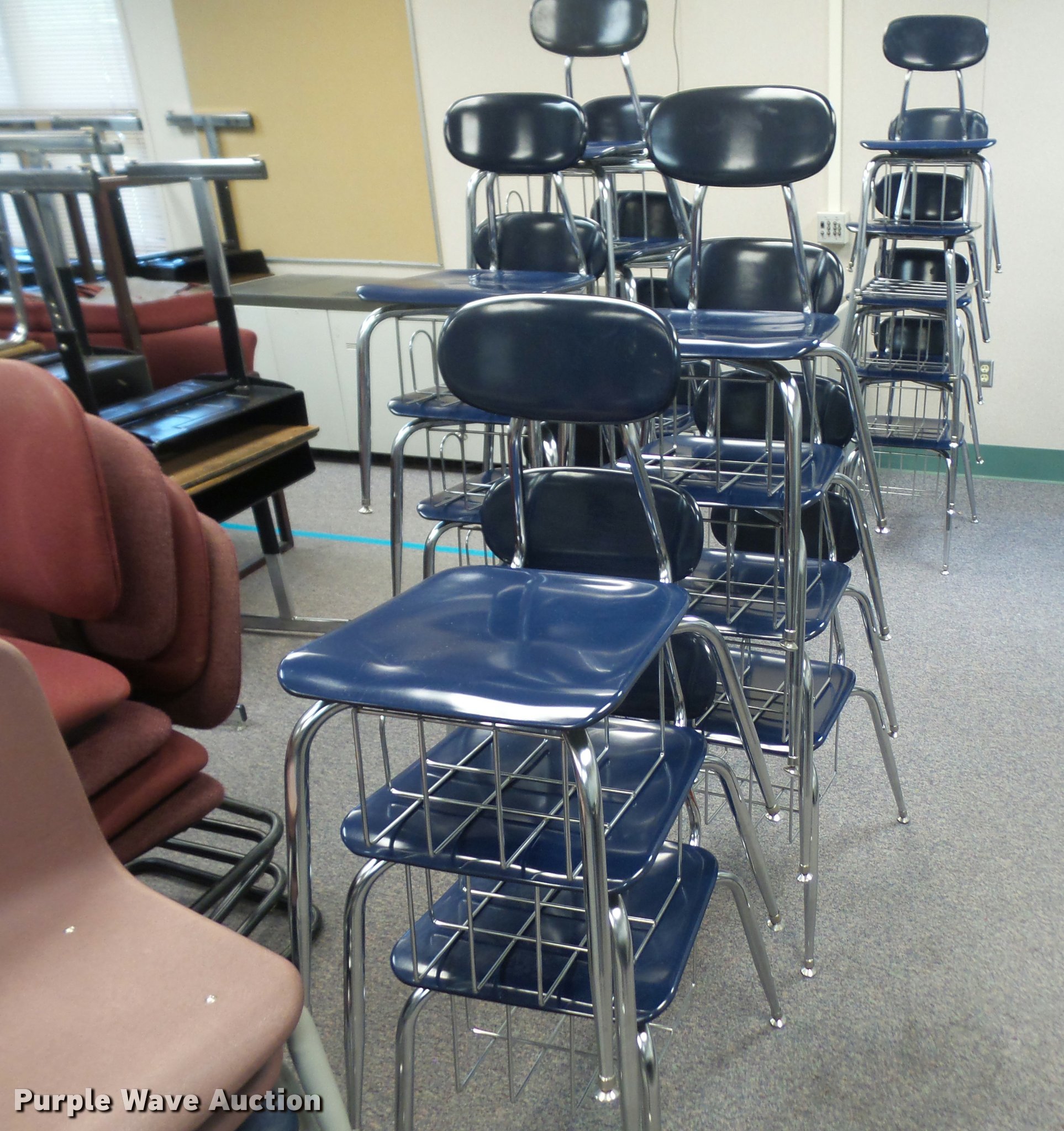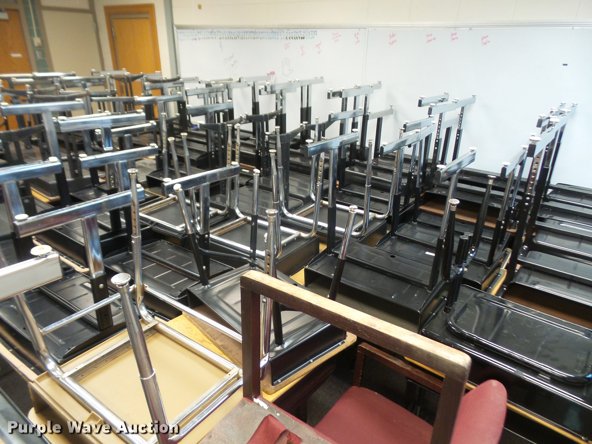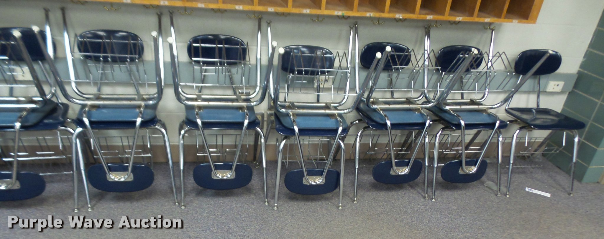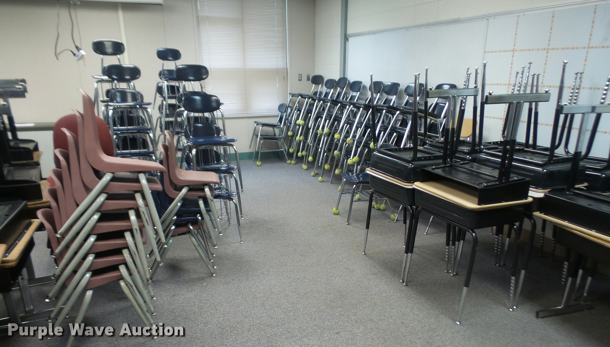 Purple Wave is selling a used Furniture in Kansas. This item is a Furniture with the following: (120) student desks, Wood top, (6) student desks, Plastic top, (70) 18" student chairs, Underneath racks, (4) cushion chairs, (11) stackable chairs, Unit# 124
