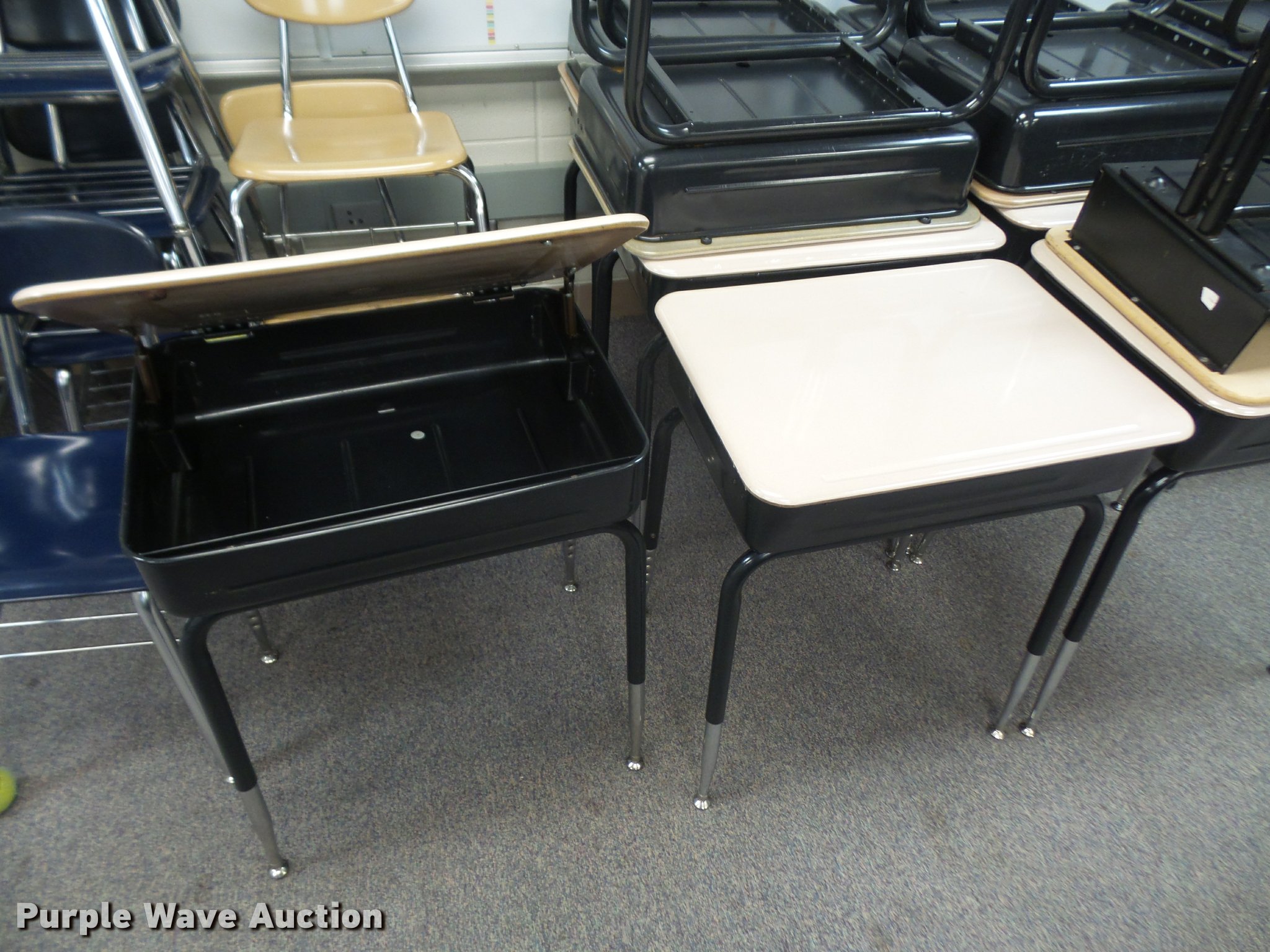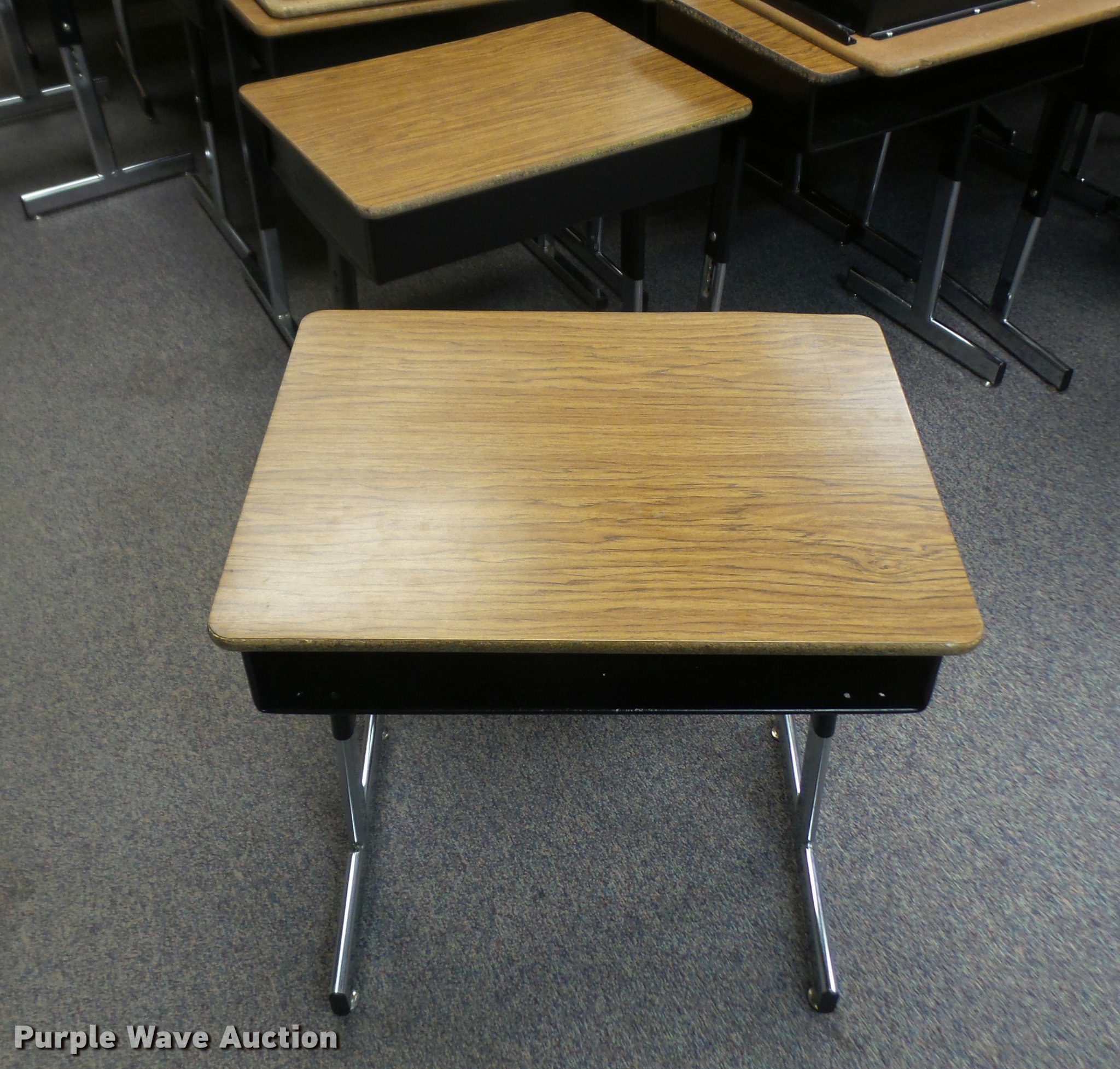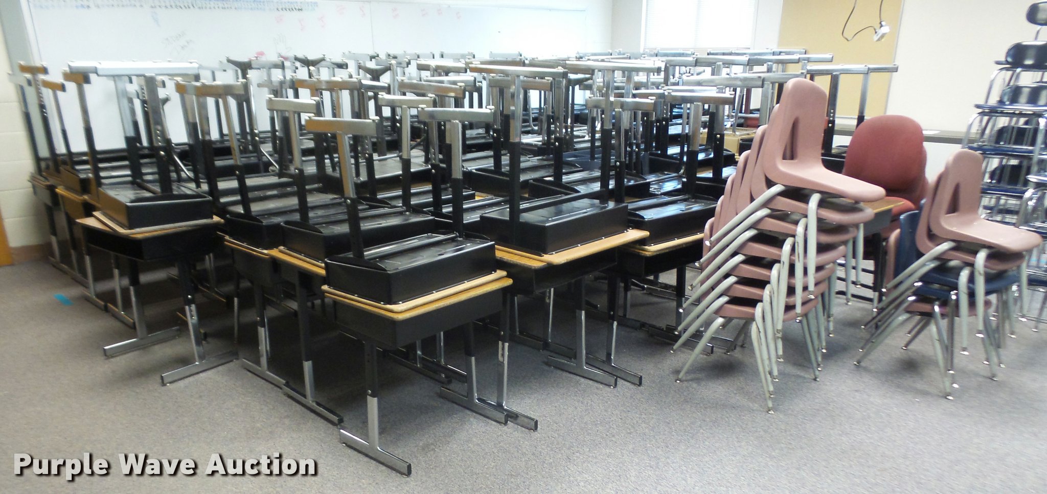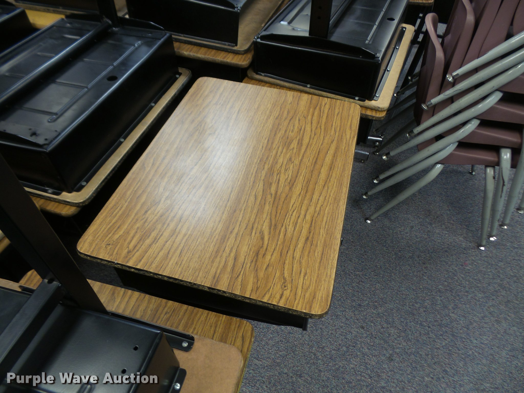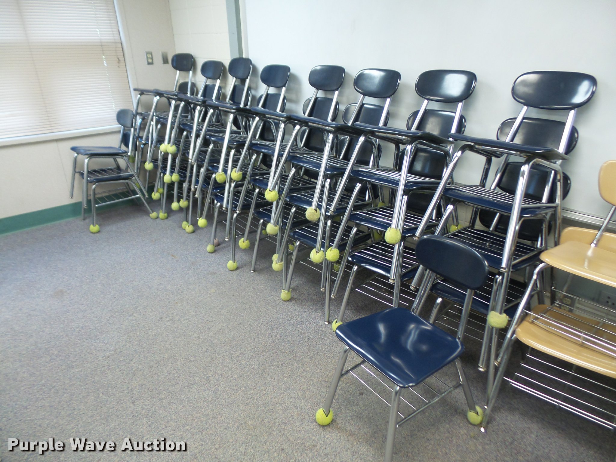 Purple Wave is selling a used Furniture in Kansas. This item is a Furniture with the following: (120) student desks, Wood top, (6) student desks, Plastic top, (70) 18" student chairs, Underneath racks, (4) cushion chairs, (11) stackable chairs, Unit# 124