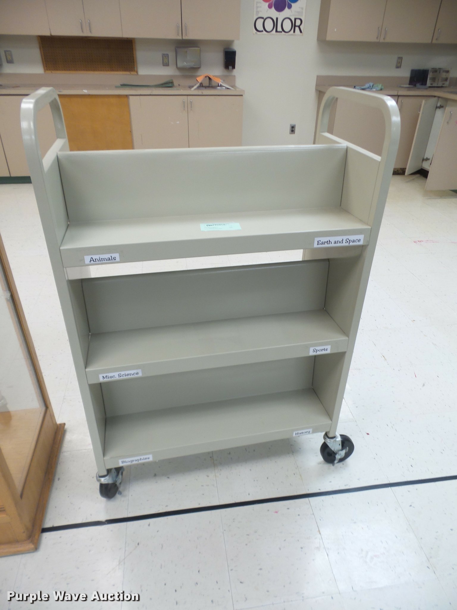 Purple Wave is selling a used Furniture in Kansas. This item is a Furniture with the following: Trophy case with glass doors and shelves, 48"W x 18"D x 77"H, Library cart, 32"W x 17"D x 48"H, Unit# 16