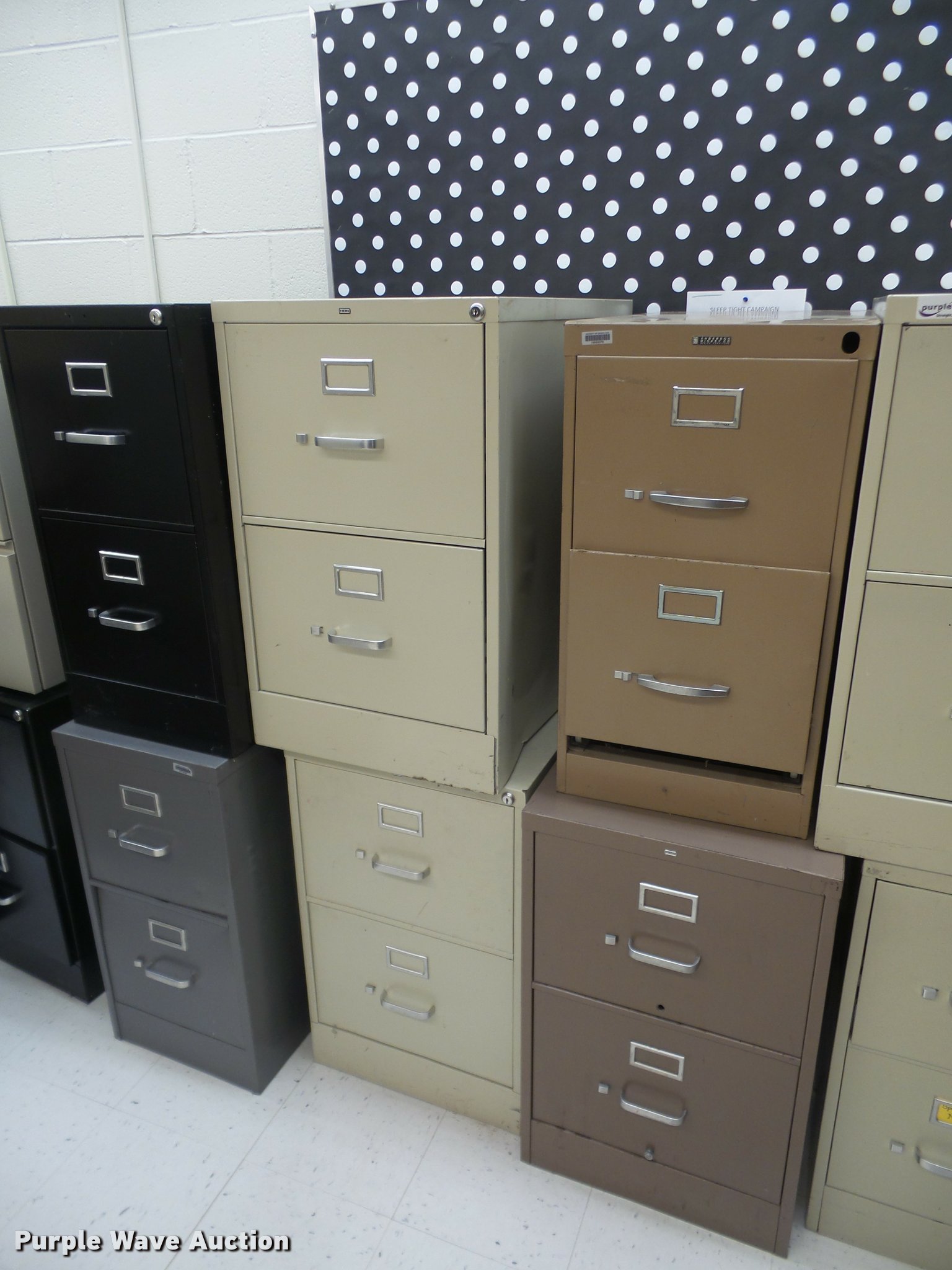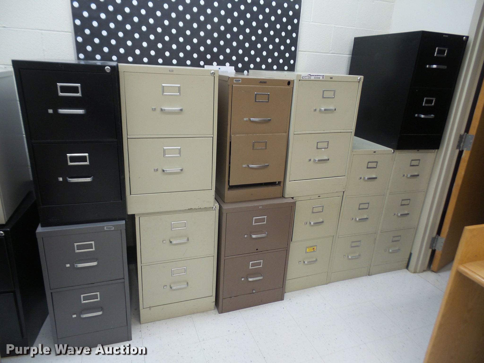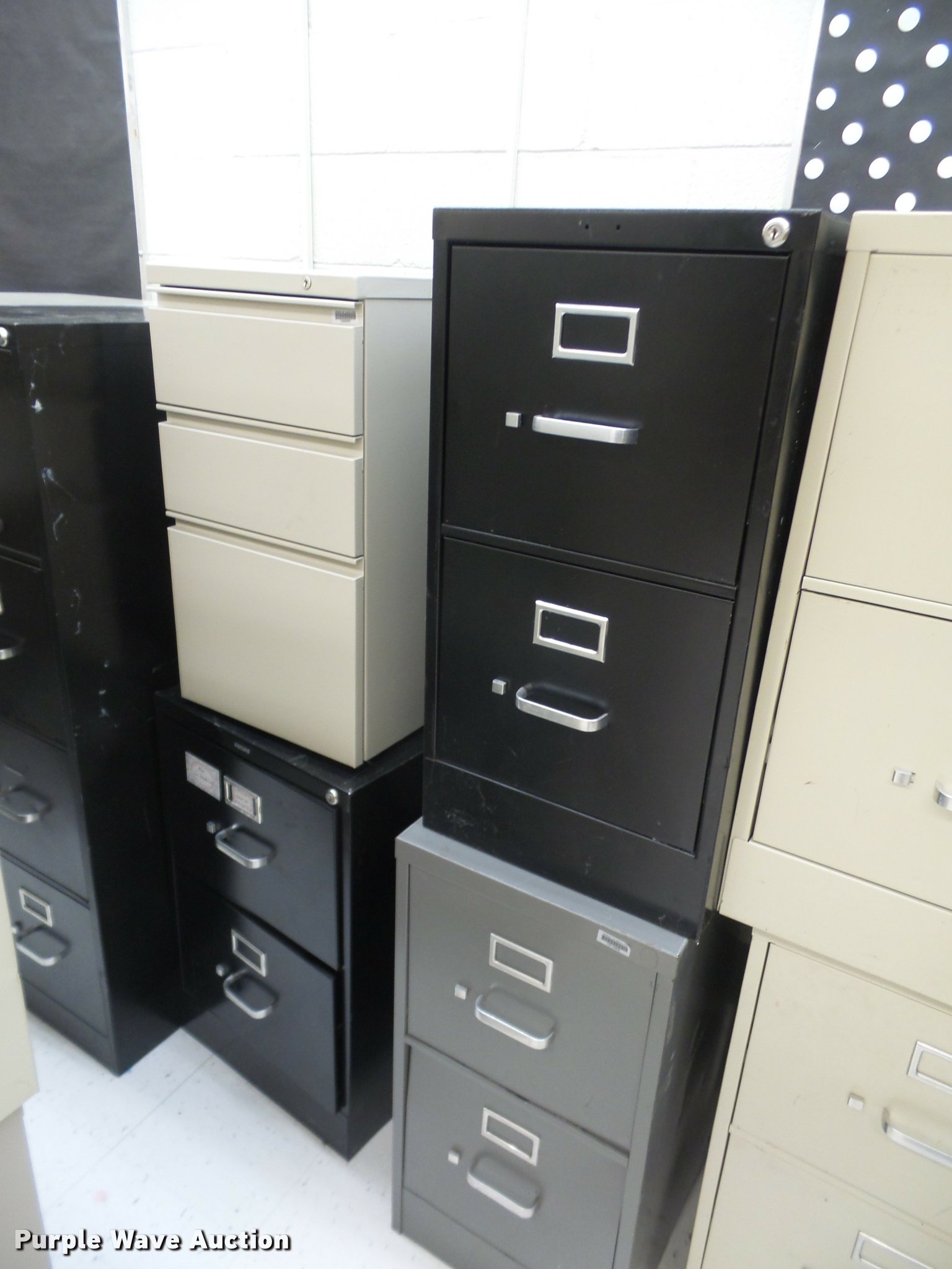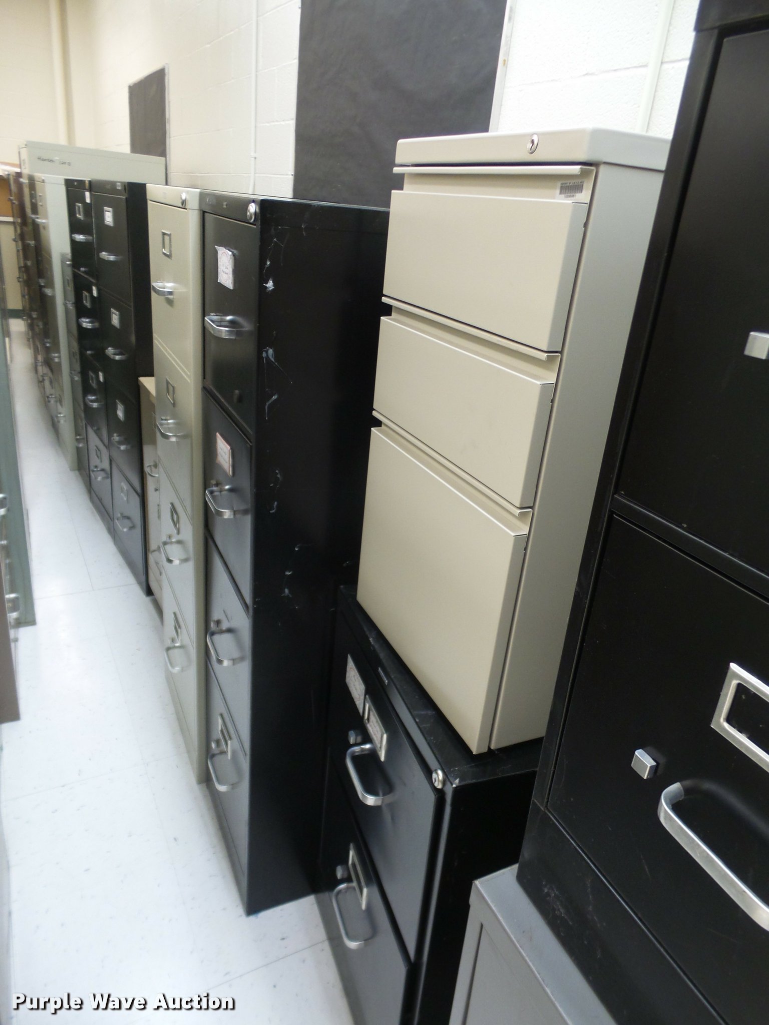 Purple Wave is selling a used Office Supplies and Equip. in Kansas. This item is a (28) filing cabinets with the following: (11) four drawer letter, (5) three drawer letter, (12) two drawer letter, Unit# 135B